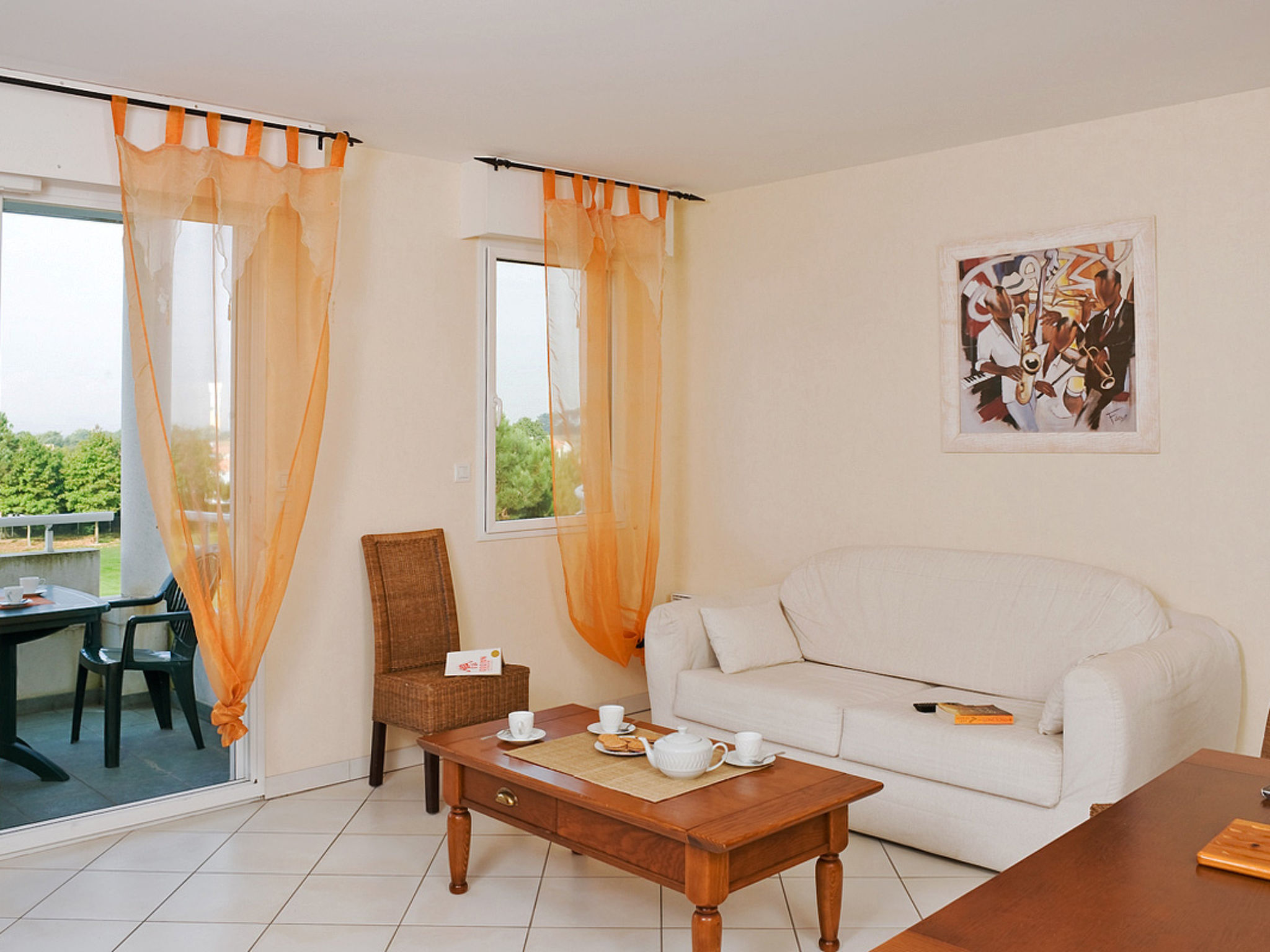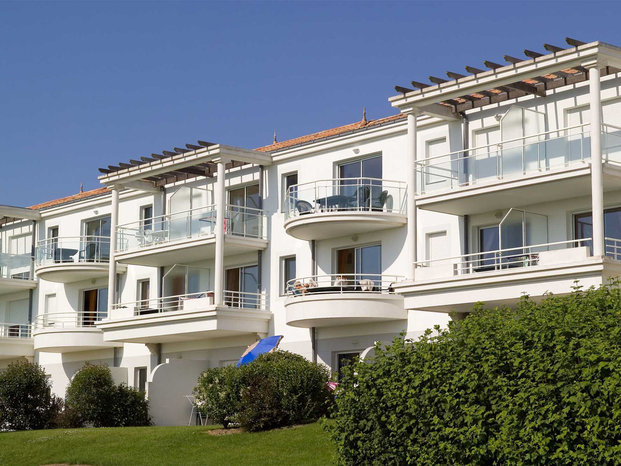 Schöne, gemütliche Ferienanlage "Le Domaine de Fontenelles", auf 4 Stockwerken. 13 km vom Zentrum von St. Gilles-Croix-de-Vie, 3 km vom Zentrum von Coex, ausserhalb des Ortes, 14 km vom Zentrum von Bretignolles-sur-Mer, sonnige Lage, 13 km vom Meer, im Grünen, am Golfplatz. Zur Mitbenutzung: Grundstück mit Pflanzen, Wiese, Schwimmbad (saisonale Verfügbarkeit: 15.Mai.-15.Sep.). Ungleichmässige Schwimmbadform, Kinderbecken, Aussendusche, Boccia, Terrasse. In der Anlage: Empfang, Wireless LAN, Fahrstuhl, Waschmaschine, Wäschetrockner (zur Mitbenutzung, extra). Brötchenservice. Parkplatz (beschränkte Anzahl). Einkaufsgeschäft 5 km, Sandstrand 13 km. Golfplatz (18 Loch) 100 m. Bitte beachten: Be- und Entladen am Ferienhaus möglich. Das Foto ist nur ein Wohnungsbeispiel. Die Mietobjekte können sich in Wohnfläche, Raumaufteilung, Ausstattung und Einrichtung unterscheiden. WLAN nur an der Rezeption.