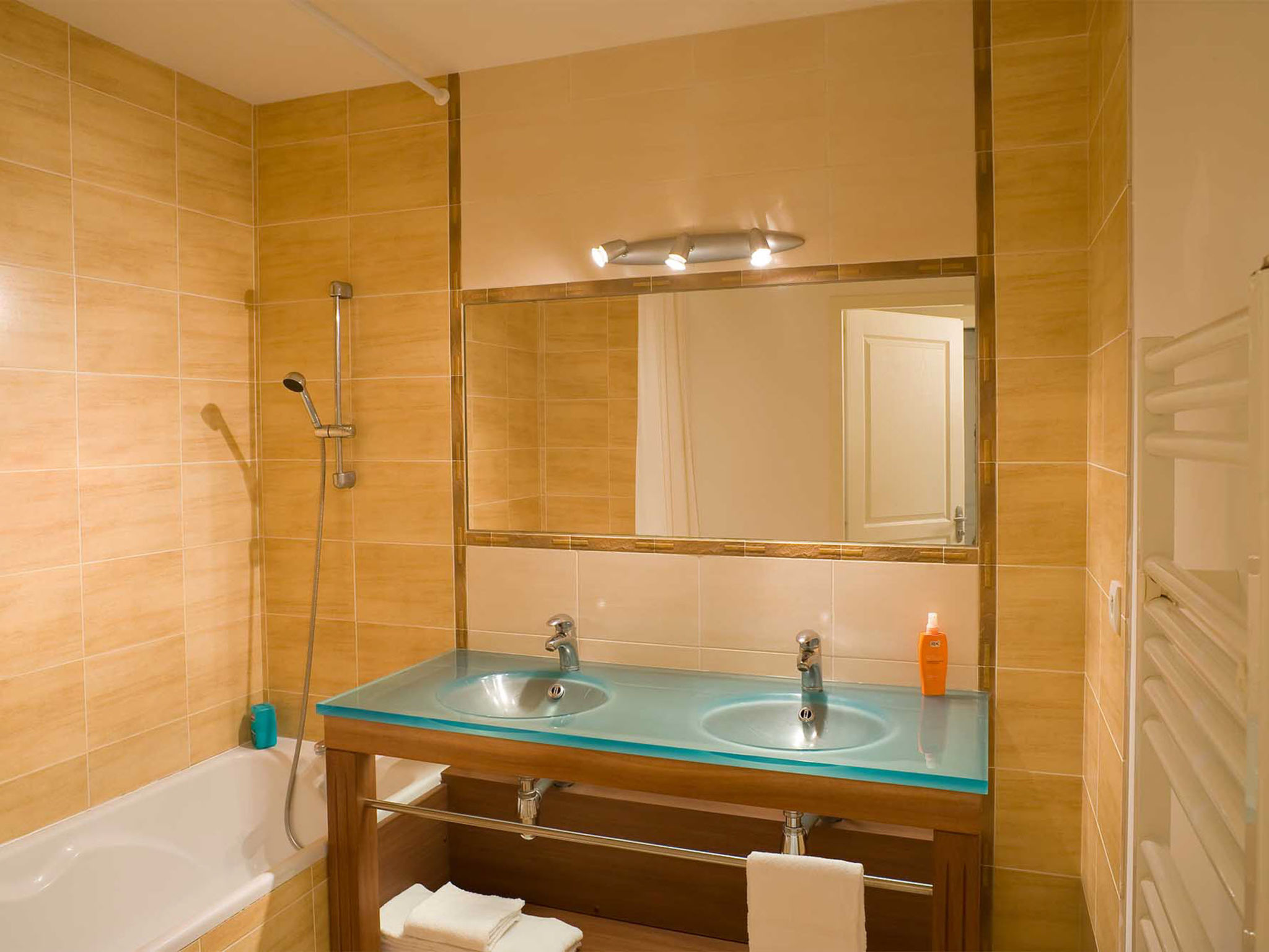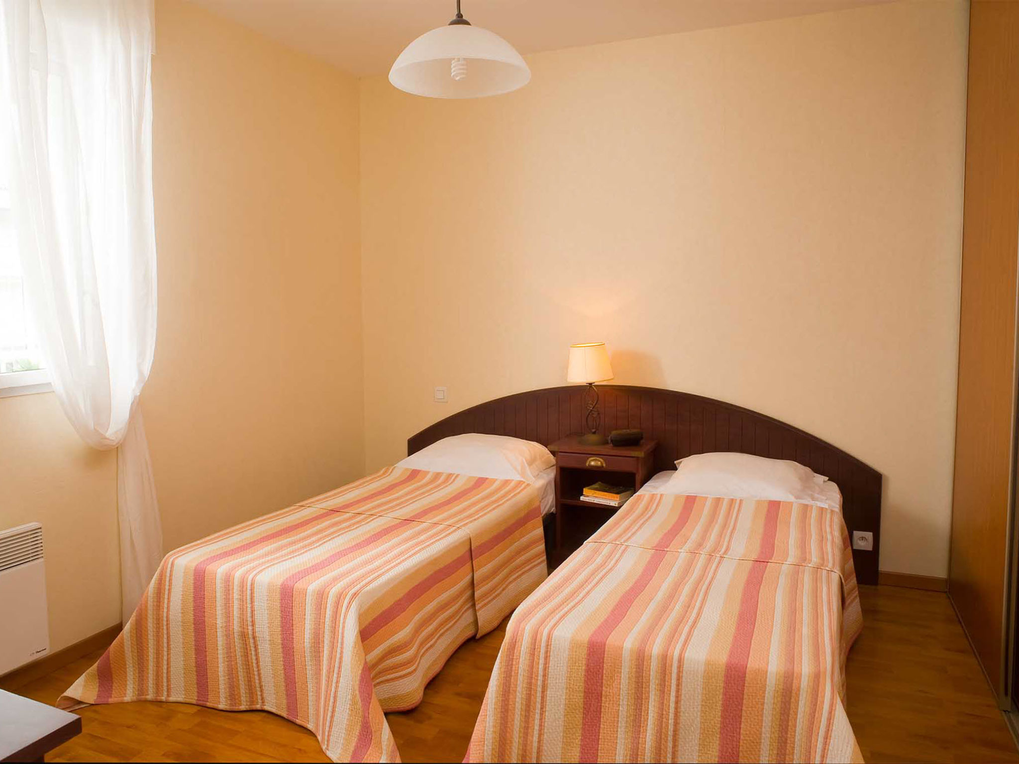 "Le Domaine de Fontenelles (SGC201)", 3-Zimmer-Wohnung 60 m2. Hell, zweckmässig und schön eingerichtet: Wohn-/Schlafzimmer mit 1 Doppeldiwanbett, Esstisch und TV mietbar. Ausgang zum Balkon. 2 Zimmer, jedes Zimmer mit 2 Schlafmöglichkeiten. Kochnische (4 Kochplatten, Backofen, Geschirrspüler, Toaster, Wasserkocher, elektrische Kaffeemaschine). Bad, sep. WC. E-Heizung. Balkon oder Terrasse. Terrassenmöbel, Balkonmöbel. Bitte beachten: Nichtraucher-Unterkunft. Maximal 2 Haustiere/Hunde erlaubt. Rauchmelder, Feuerlöscher.