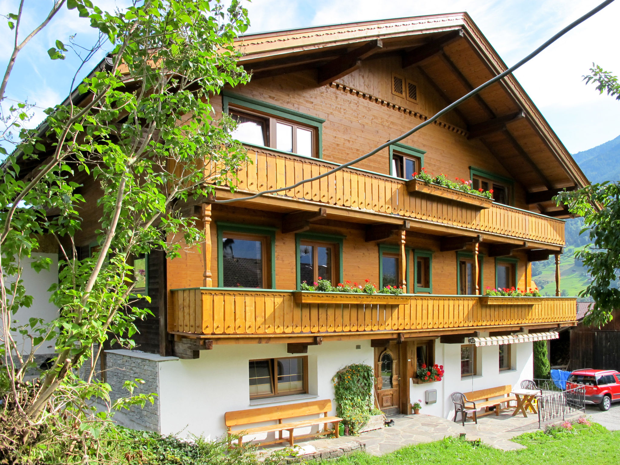 Der RIEPLERHOF, ein ca. 150 Jahre alter Bauernhof mit 2 separaten Einheiten, steht im Ortsteil Burgstall. Ortsmitte Mayrhofen 2 km, nächste Einkaufsmöglichkeit 1,5 km. Penkenbahn und Freibad 2 km, Gasthof ca. 500 m. Gemeinschaftsgrundstück mit Trampolin und Tischtennis. 2 Balkone und Grill stehen unseren Feriengästen zur alleinigen Nutzung zur Verfügung. Der Vermieter bewohnt das Erdgeschoss und bietet Brötchenservice. Parkplatz für 5 Pkw auf dem Grundstück. Das Haus ist gemütlich und rustikal eingerichtet. Laminat-, Linoleum- und Fliesenböden. 2x Sat-TV. Internetzugang (WLAN, inklusive). Heizung. Hinweis: Rauchen ist im Haus nicht gestattet. Winter-Infos: Skibushaltestelle ca. 50 m. Horbergbahn 1,1 km, Penkenbahn 2 km. Langlaufloipe ca. 100 m. Ski- und Skischuhabstellmöglichkeit mit Skischuhtrockner.