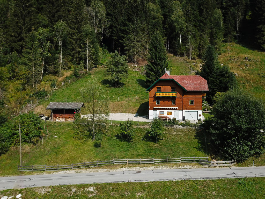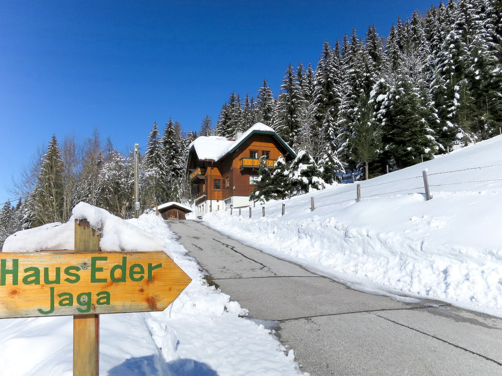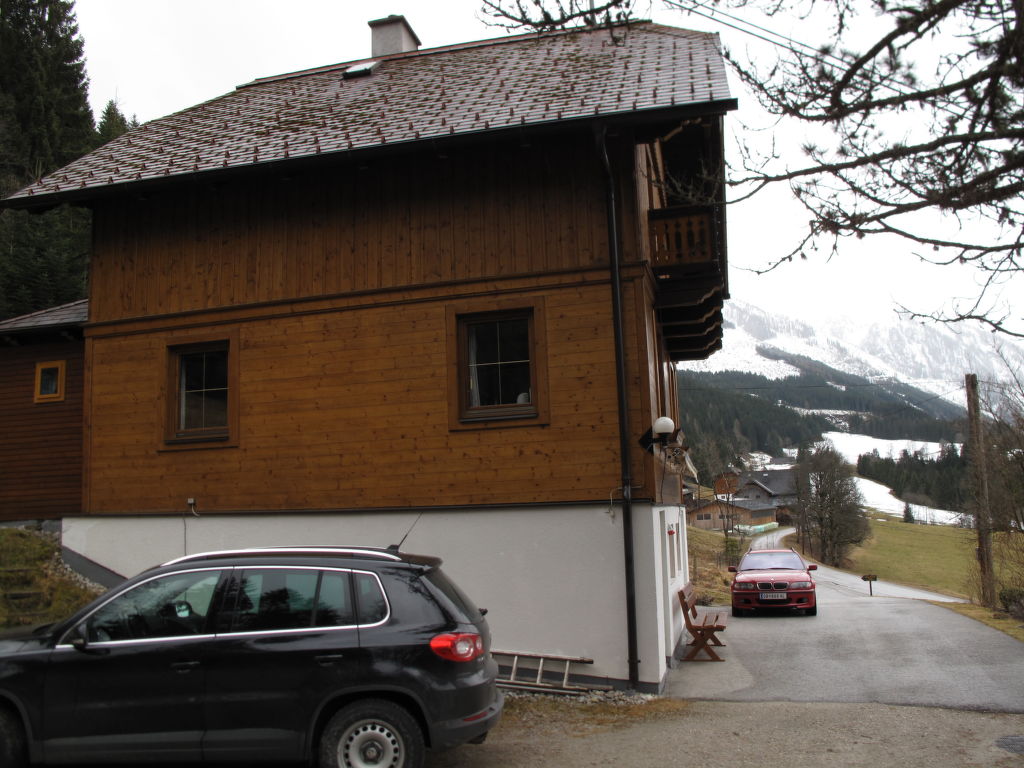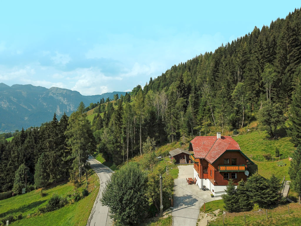 Das ehemalige Jagdhaus EDER JAGA steht in idyllischer Hanglage mit schönem Bergblick auf 1098 m Höhe im Ortsteil Gössenberg, ca. 8 km von Haus im Ennstal und 9,5 km von der Tauern Seilbahn entfernt. Nächste Einkaufsmöglichkeit 4 km. Zum Steirischen Bodensee mit schönen Spazier- und Wandermöglichkeiten 2,5 km. Badesee in Aich, 5 km. Zufahrt zum Haus über kurvenreiche, teilweise steile Straße. Offenes, gepflegtes Hanggrundstück. Terrasse mit Markise und 2 Balkone mit Gartenmobiliar, Sonnenliegen, Sonnenschirm und Gasgrill. Parkplätze auf dem Grundstück. Das Untergeschoss mit Garage wird vom Besitzer als Abstellraum genutzt und bleibt verschlossen. Auf dem Nachbargrundstück weiden Schafe. Das Haus ist feriengerecht mit viel Holz und teilweise rustikal eingerichtet. Parkett- und Linoleumböden, in einem Schlafzimmer Teppichboden. Sat-TV. Internetzugang (WLAN, € 24 pro Aufenthalt). Waschmaschine. Öl-Zentralheizung. Winter-Infos: Bergbahn Hauser Kaibling 8 km. Loipeneinstieg in Aich (4 km). Schneeketten können erforderlich sein. Im Haus Skiabstellmöglichkeit und Skischuhtrockner.