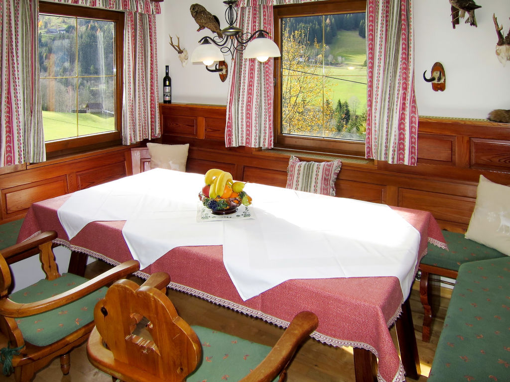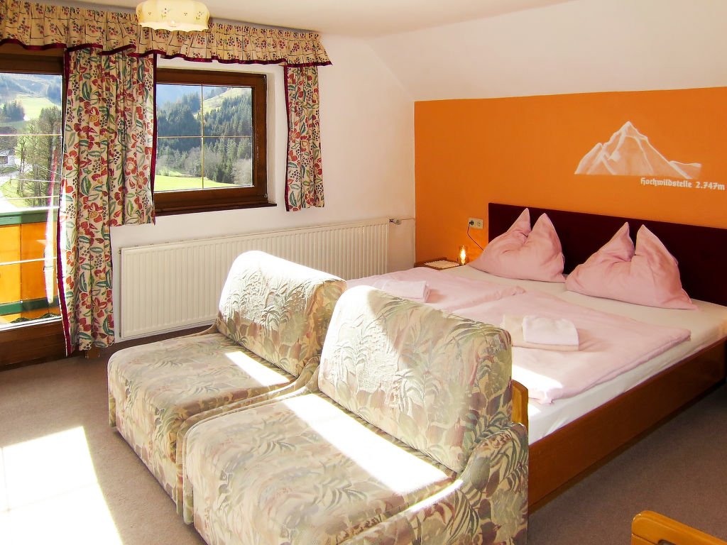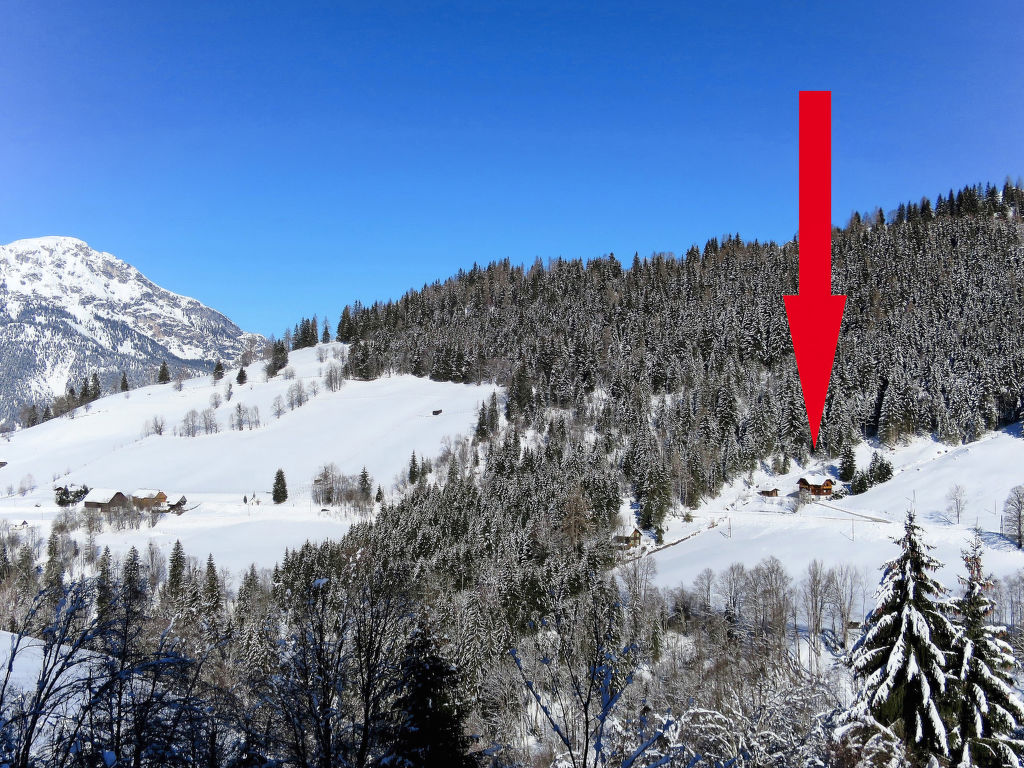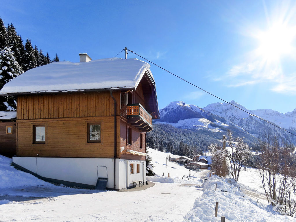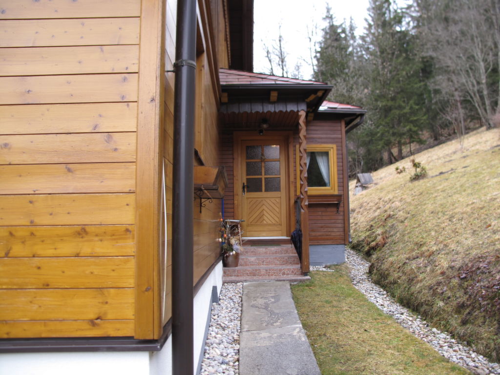 Das ehemalige Jagdhaus EDER JAGA steht in idyllischer Hanglage mit schönem Bergblick auf 1098 m Höhe im Ortsteil Gössenberg, ca. 8 km von Haus im Ennstal und 9,5 km von der Tauern Seilbahn entfernt. Nächste Einkaufsmöglichkeit 4 km. Zum Steirischen Bodensee mit schönen Spazier- und Wandermöglichkeiten 2,5 km. Badesee in Aich, 5 km. Zufahrt zum Haus über kurvenreiche, teilweise steile Straße. Offenes, gepflegtes Hanggrundstück. Terrasse mit Markise und 2 Balkone mit Gartenmobiliar, Sonnenliegen, Sonnenschirm und Gasgrill. Parkplätze auf dem Grundstück. Das Untergeschoss mit Garage wird vom Besitzer als Abstellraum genutzt und bleibt verschlossen. Auf dem Nachbargrundstück weiden Schafe. Das Haus ist feriengerecht mit viel Holz und teilweise rustikal eingerichtet. Parkett- und Linoleumböden, in einem Schlafzimmer Teppichboden. Sat-TV. Internetzugang (WLAN, € 24 pro Aufenthalt). Waschmaschine. Öl-Zentralheizung. Winter-Infos: Bergbahn Hauser Kaibling 8 km. Loipeneinstieg in Aich (4 km). Schneeketten können erforderlich sein. Im Haus Skiabstellmöglichkeit und Skischuhtrockner.