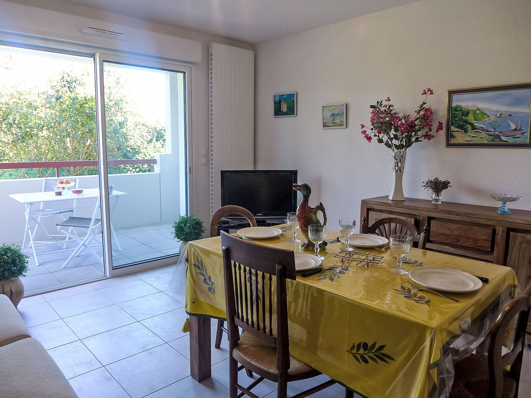 2-Zimmer-Wohnung 40 m2 im 1. Stock. Komfortabel eingerichtet: Wohn-/Esszimmer mit TV. Ausgang zur Terrasse. 1 Zimmer mit 1 franz. Bett (140 cm, Länge 190 cm). Offene Küche (4 Glaskeramikherd Platten, Mikrowelle, elektrische Kaffeemaschine). Dusche/WC. Terrassenmöbel. Zur Verfügung: Waschmaschine, Bügeleisen. Internet (Wireless LAN, extra). Parkplatz Nr. 31 (überdacht). Bitte beachten: Nichtraucher-Unterkunft. Rauchmelder. Inserat einer Privatperson nach Artikel 155, IV, CGI. 40209000012LM