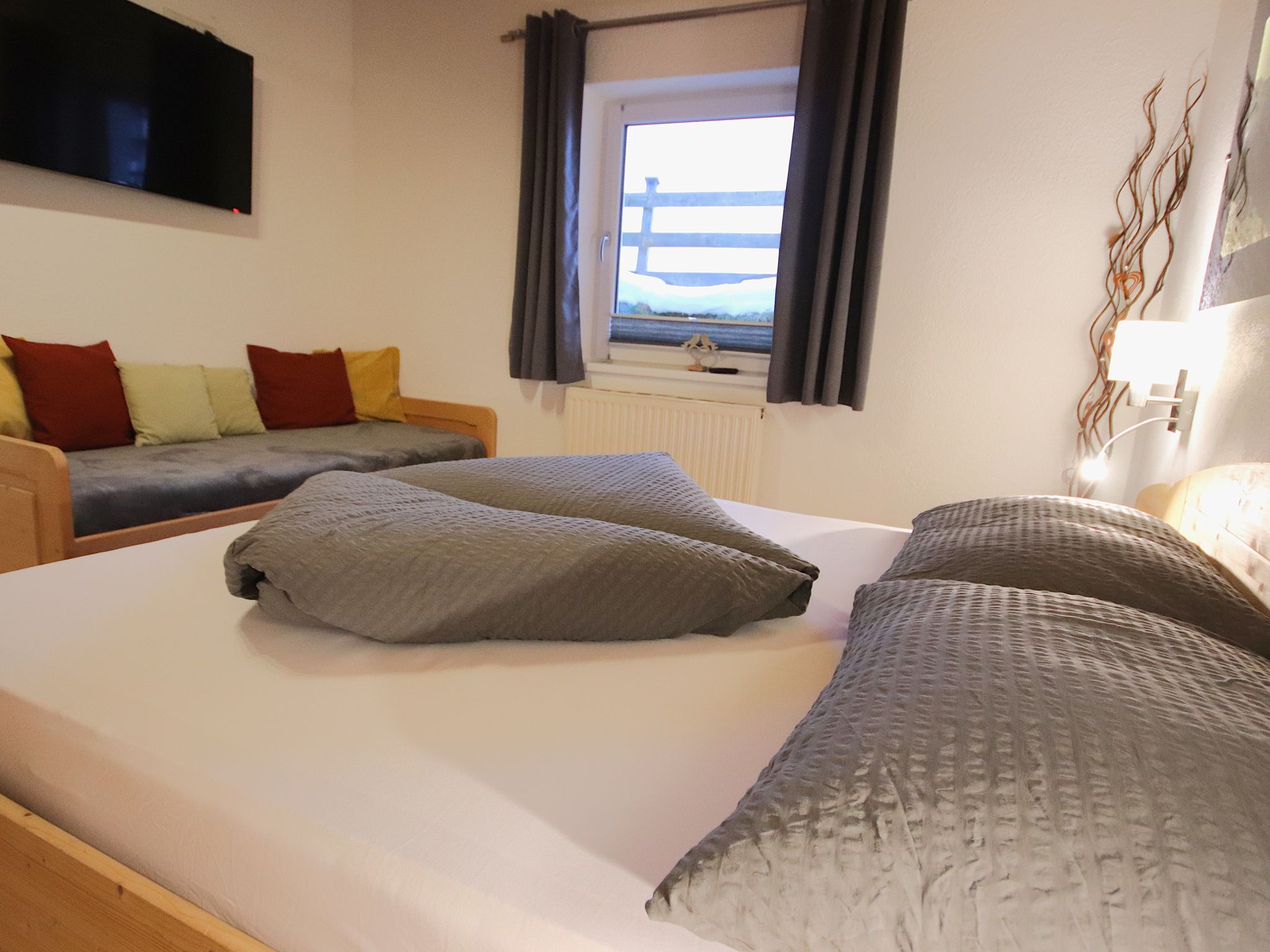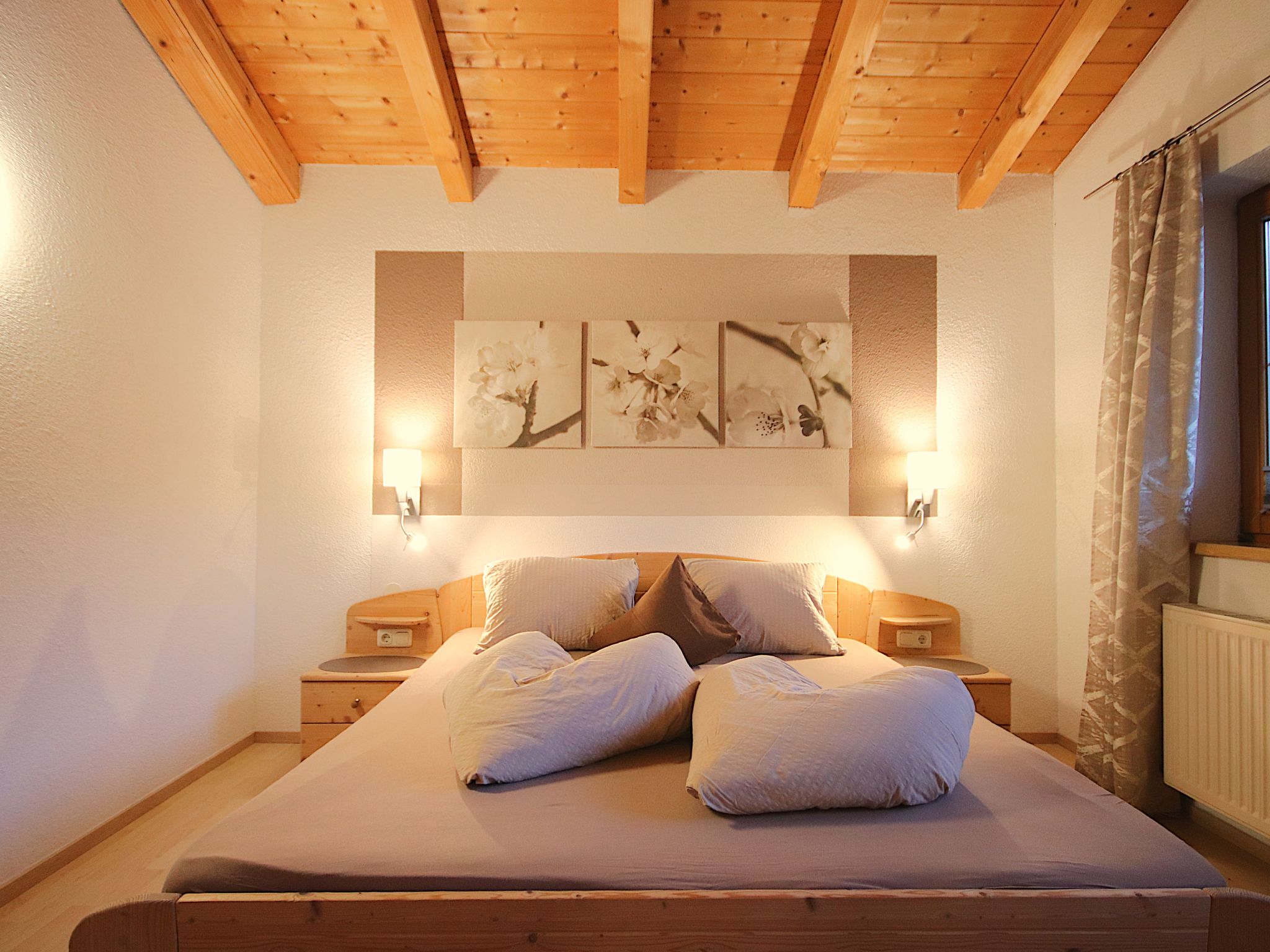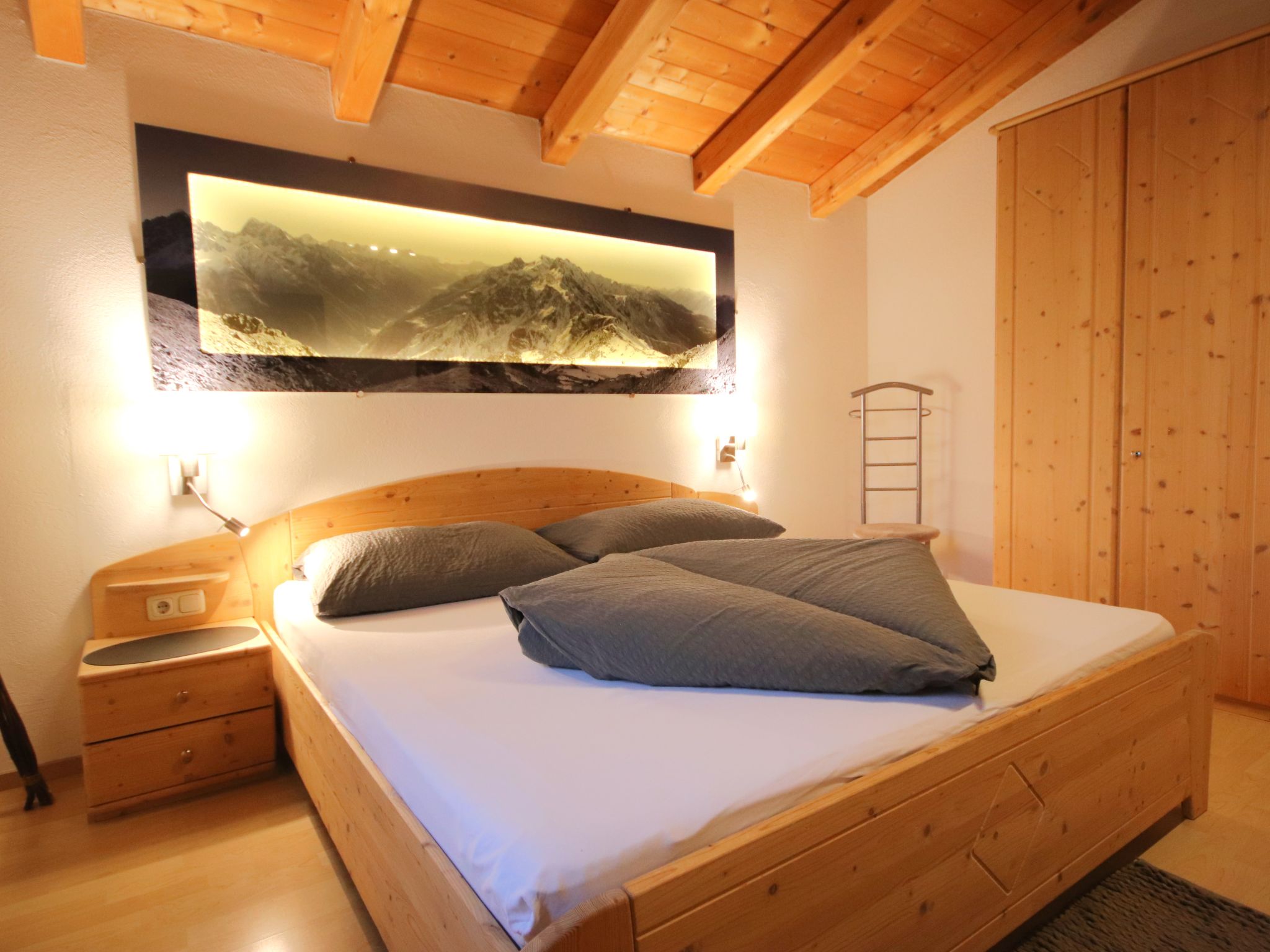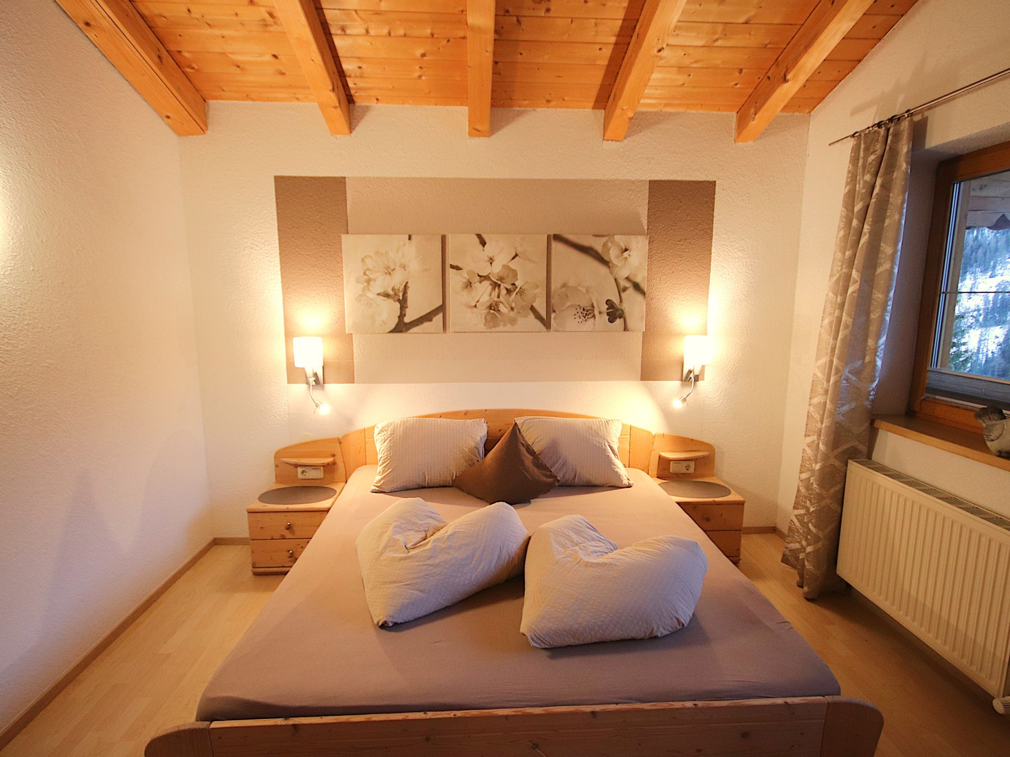 3-Zimmer-Wohnung 'Piz Mundin', 2. Etage (teils leichte Dachschräge), ca. 67 m². Diele. Wohn-/Schlafraum mit Doppelbettcouch, Essplatz (Eckbank), Balkonausgang, offene Küche (4 Ceranfelder, Backofen, Mikrowelle, Geschirrspüler, Kühlschrank, Kaffeevollautomat, Wasserkocher, Toaster). Doppelzimmer. Schlafzimmer mit Doppelbett und Einzelbett (als Zusatzbett, siehe Nebenkosten). Bad/Dusche/WC. Bei Belegung mit weniger Personen als der maximalen Personenzahl stehen nicht alle Wohneinheiten zur Verfügung.
