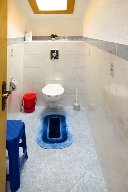 4-Zimmer-Wohnung, 2. Etage (Dachschräge, nicht störend), ca. 90 m². Wohnküche (4 Ceranfelder, Backofen, Mikrowelle, Geschirrspüler, Kühlschrank, Kaffeemaschine, Wasserkocher, Toaster) mit Sitzcouch und Essplatz. Schlafzimmer mit Doppelbett, Waschbecken und Balkonausgang. Schlafzimmer mit Doppelbett, Einzelbett, Waschbecken und Balkonausgang. Schlafzimmer mit Doppelbett, Einzelbett und Waschbecken. Dusche. Sep.WC. Bei Belegung mit weniger Personen als der maximalen Personenzahl stehen nicht alle Schlafzimmer zur Verfügung.