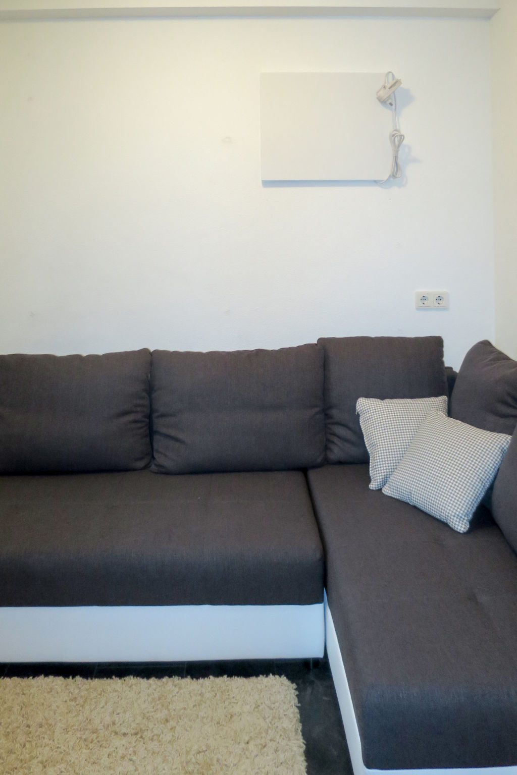 4-Zimmer-Wohnung, Hochparterre, ca. 80 m². Zugang über 5 Stufen. Diele. Kleiner Wohnraum mit Sitzcouch. Küche (4 Ceranfelder, Backofen, Mikrowelle, Geschirrspüler, Kühlschrank, Kaffeemaschine, Wasserkocher, Toaster) mit Essplatz (Eckbank) und Balkonausgang. 3 Doppelzimmer. Dusche. Sep.WC. Bei Belegung mit weniger Personen als der maximalen Personenzahl stehen nicht alle Wohneinheiten zur Verfügung.