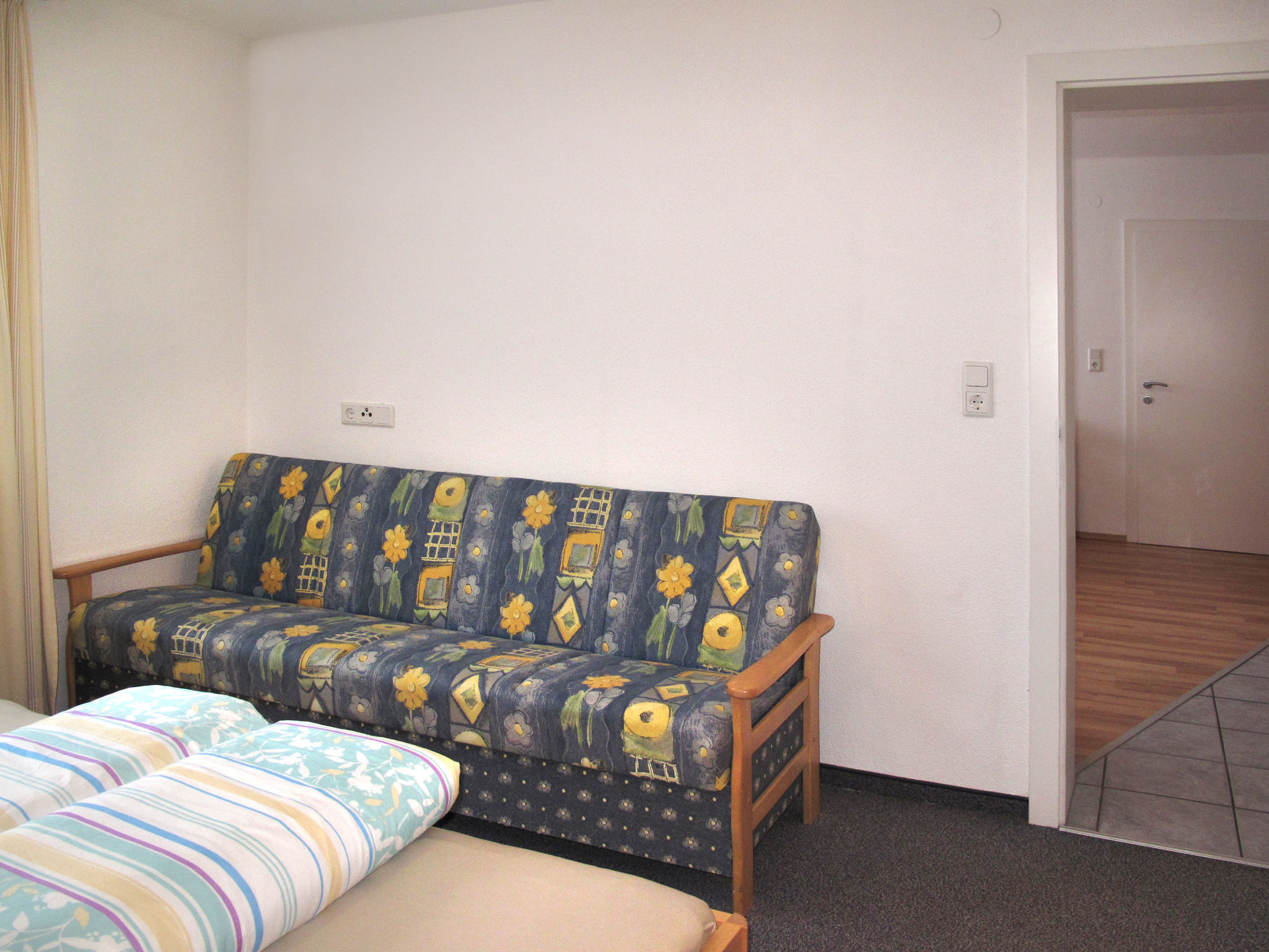 "Kristall (PTZ400)", 2-Zimmer-Wohnung 45 m2, im Erdgeschoss, Südwestlage. Objekt geeignet für 2 Erwachsene + 2 Kinder. Hell, schön eingerichtet: Wohn-/Schlafzimmer mit 1 Doppeldiwanbett, Esstisch, Sat-TV und Radio. 1 Doppelzimmer mit Dusche/WC. Offene Küche (4 Kochplatten, Backofen, Geschirrspüler, Toaster, Wasserkocher, Mikrowelle, elektrische Kaffeemaschine). G-Heizung. Zur Verfügung: Internet (Wireless LAN, gratis). Maximal 1 kleines Haustier/Hund erlaubt.