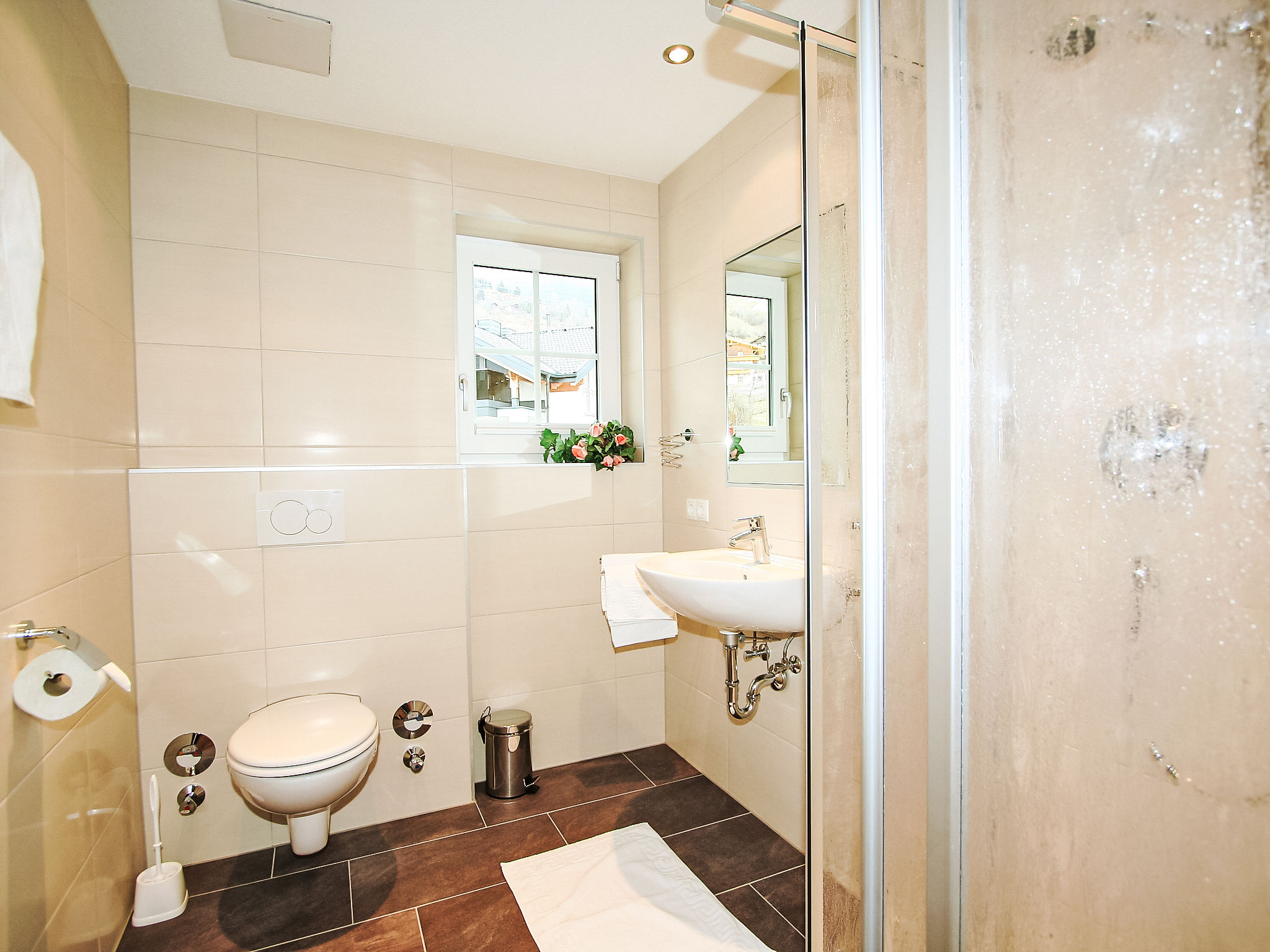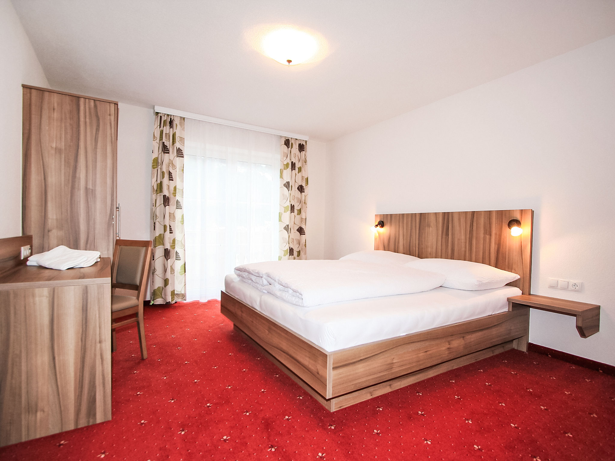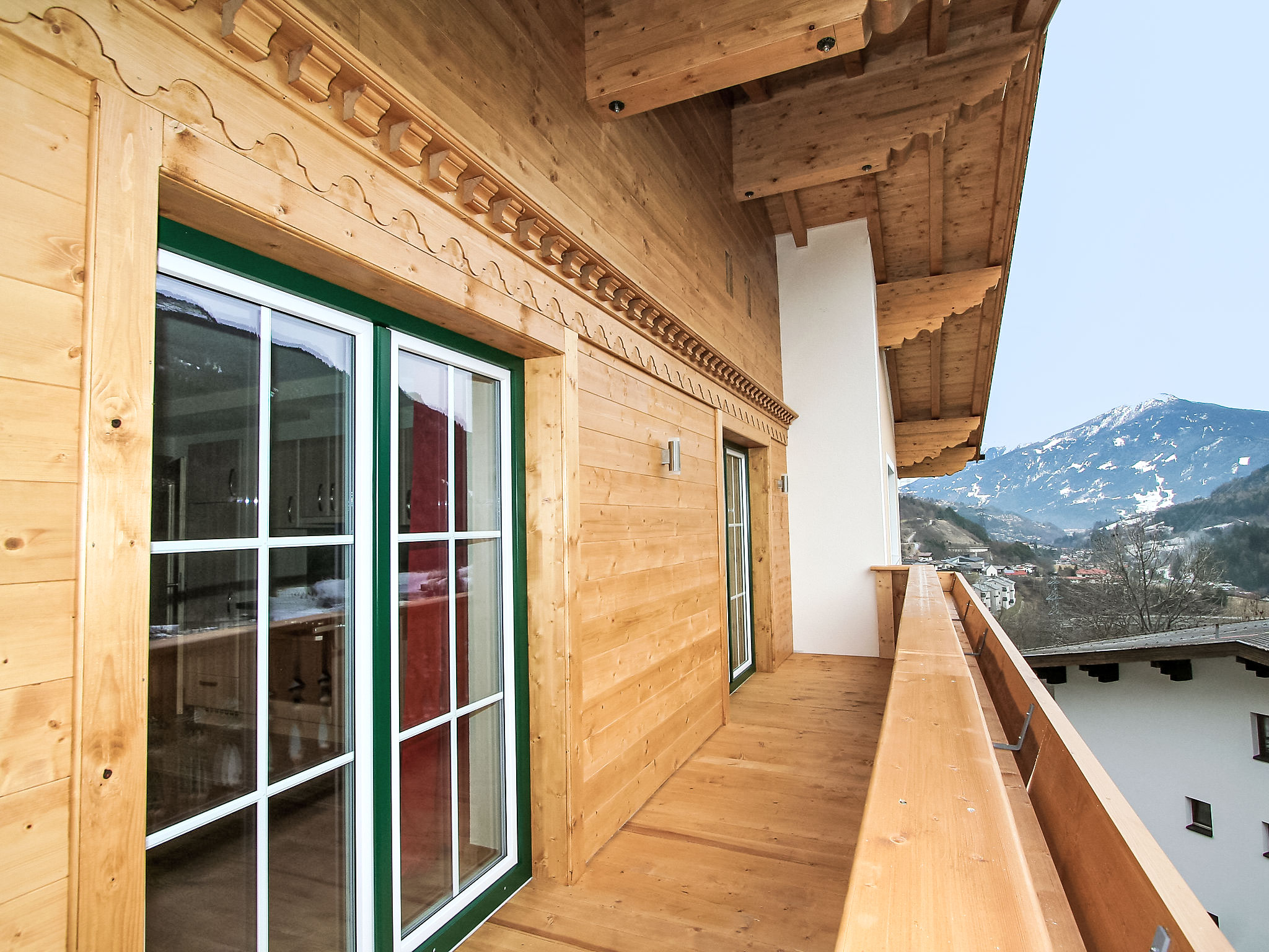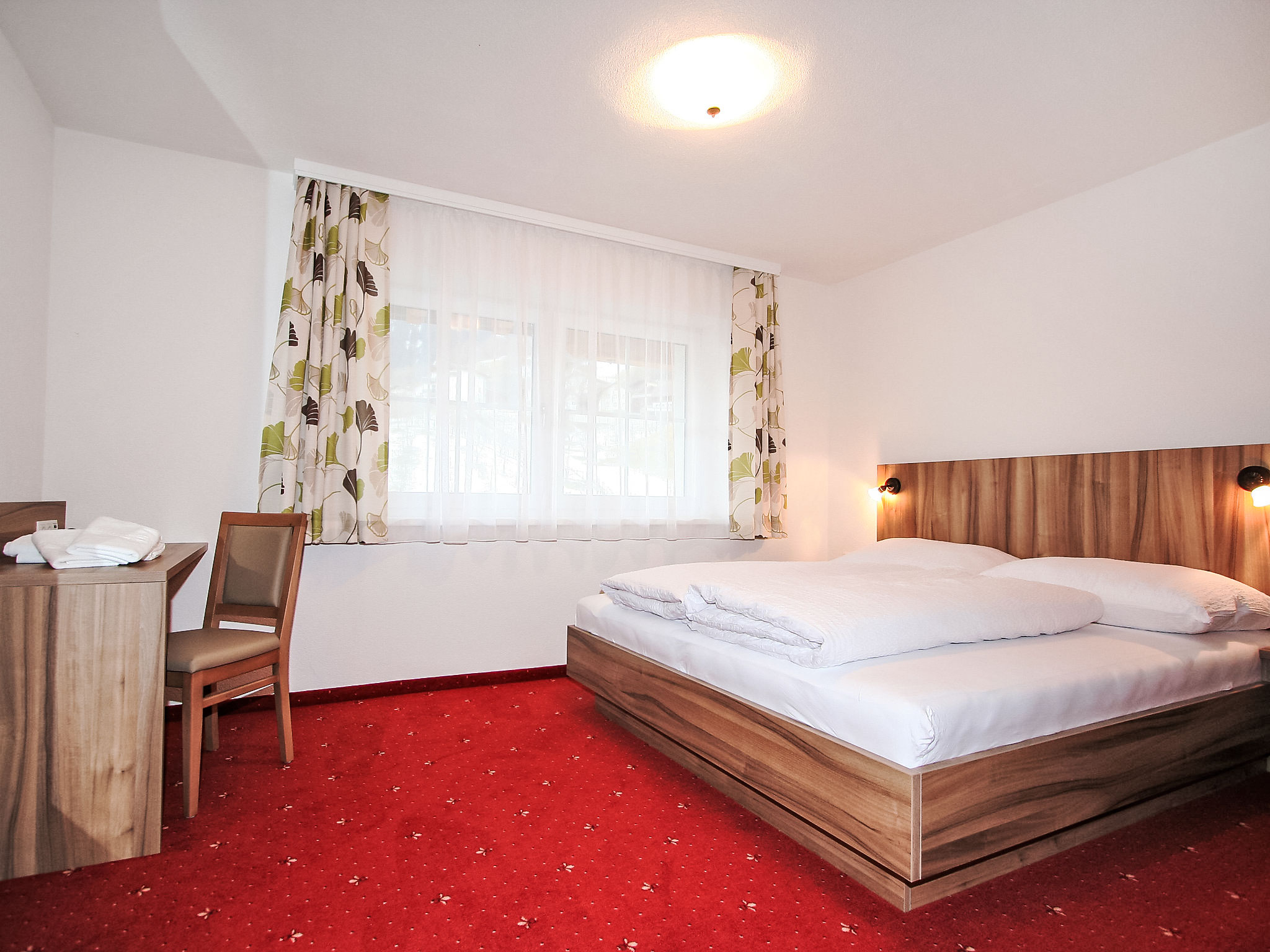 5-Zimmer-Wohnung 95 m2 im 1. Stock. Geschmackvoll eingerichtet: Eingang. 3 Doppelzimmer. 1 kleines Zimmer mit 1 franz. Bett (140 cm). Wohnküche (Backofen, Geschirrspüler, 4 Glaskeramikherd Platten, Mikrowelle) mit Essecke und Sat-TV (Flachbildschirm). Ausgang zum Balkon. 2 Duschen/WC. Fussbodenheizung. Grosser Balkon. Balkonmöbel. Schöne Sicht auf die Berge und die Ortschaft. Zur Verfügung: Internet (Wireless LAN, gratis). Bitte beachten: Nichtraucher-Unterkunft.
