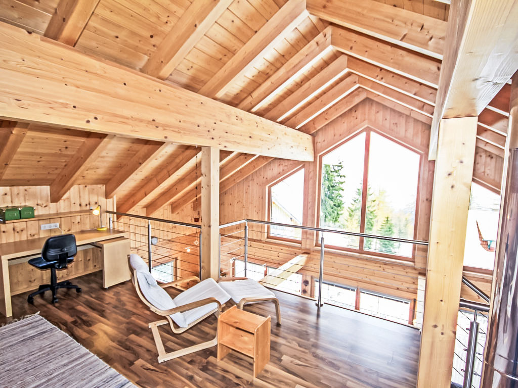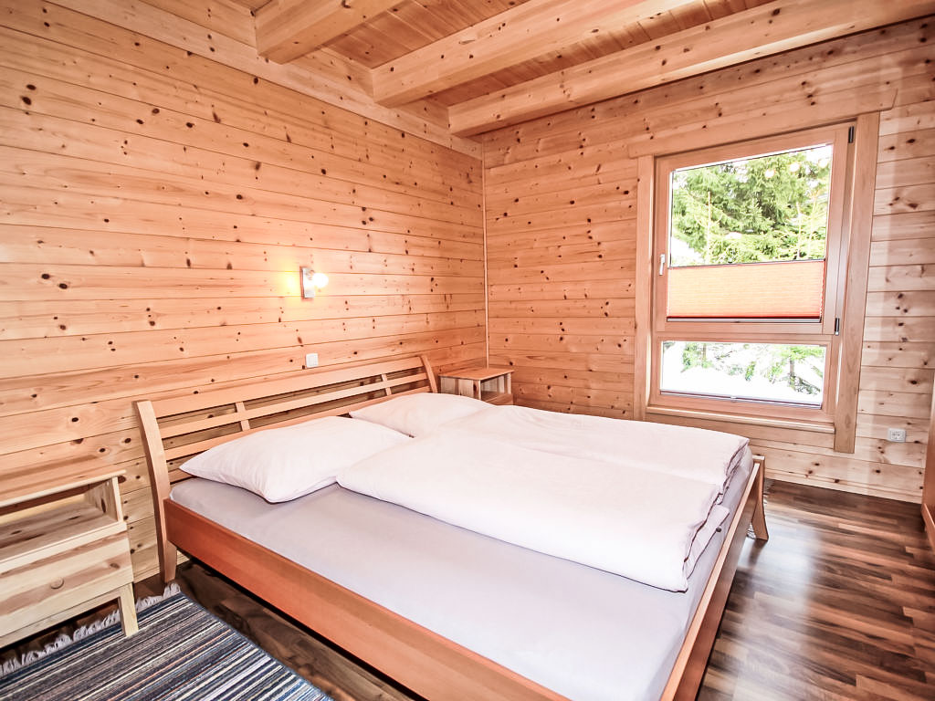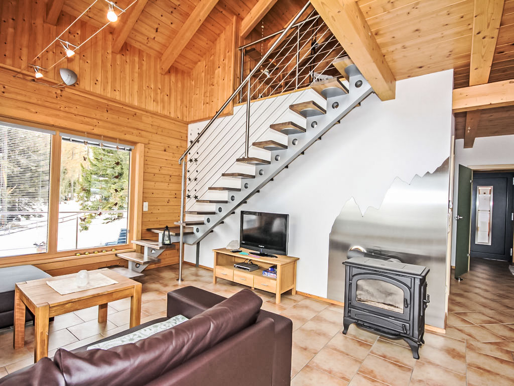 4-Zimmer-Chalet 145 m2 auf 2 Stockwerken. Hell, gemütlich und mit viel Holz eingerichtet: Eingang. 1 Doppelzimmer. 1 Doppelzimmer mit Waschbecken und Sat-TV (Flachbildschirm). Ausgang zum Balkon. Offenes Wohn-/Esszimmer mit Schwedenofen und Esstisch. Ausgang zum Balkon. Offene Küche (Backofen, Geschirrspüler, 4 Glaskeramikherd Platten, Tiefkühler, elektrische Kaffeemaschine). Dusche/WC. Obergeschoss: abgeschrägte, offene Galerie. Grosser Balkon 15 m2, grosse Terrasse 30 m2. Terrassenmöbel. Sehr schöne Panoramasicht auf die Berge und das Tal. Bitte beachten: geeignet für Familien. Nichtraucher-Haus.