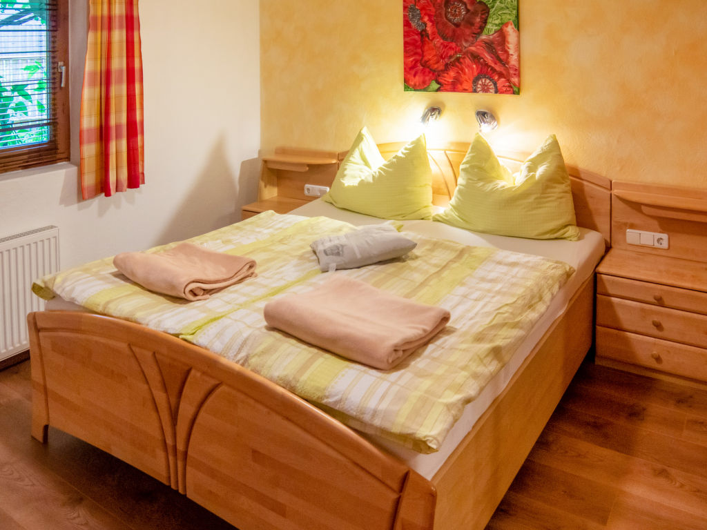4-Zimmer-Wohnung 63 m2, im ebenerdigen Untergeschoss. Objekt geeignet für 4 Erwachsene. Geräumig, gemütlich eingerichtet: Eingang. 1 Doppelzimmer mit Kabel-TV (Flachbildschirm). 1 kleines Zimmer mit 1 Bett. Offenes Esszimmer. Wohn-/Schlafzimmer mit 1 Doppeldiwanbett (1 x 160 cm, Länge 200 cm), Kabel-TV (Flachbildschirm). Offene Küche (Backofen, Geschirrspüler, 4 Glaskeramikherd Platten, Mikrowelle). Bad/Dusche, sep. WC. Kleine Terrasse. Terrassenmöbel, Gartengrill. Schöne Sicht auf die Berge. Zur Verfügung: Waschmaschine. Internet (Wireless LAN, gratis). Bitte beachten: Nichtraucher-Unterkunft. 1 Haustier/Hund erlaubt. Der Schlafbereich im Wohnzimmer kann mit einem Vorhang abgetrennt werden. 50613-018222-2020