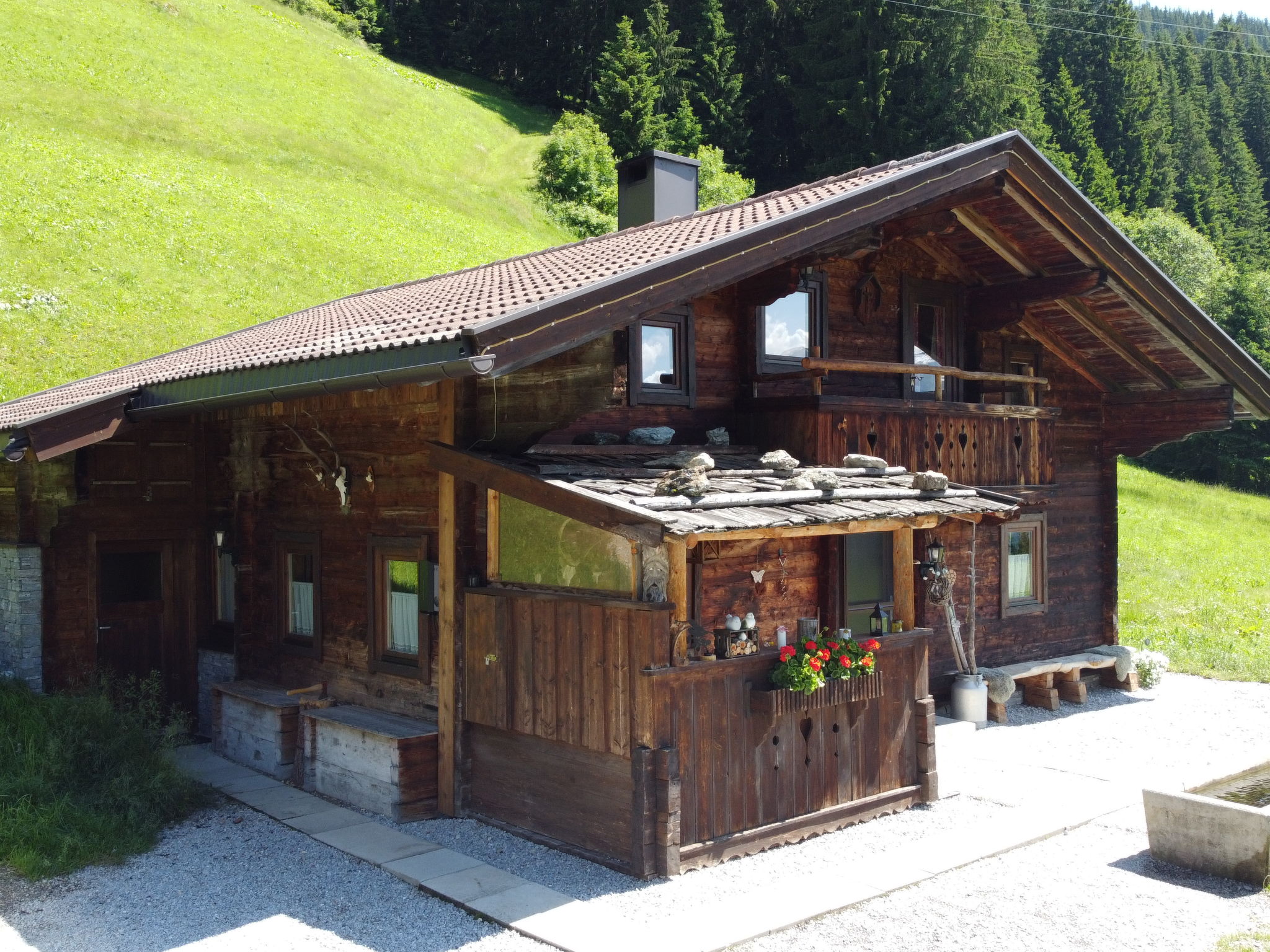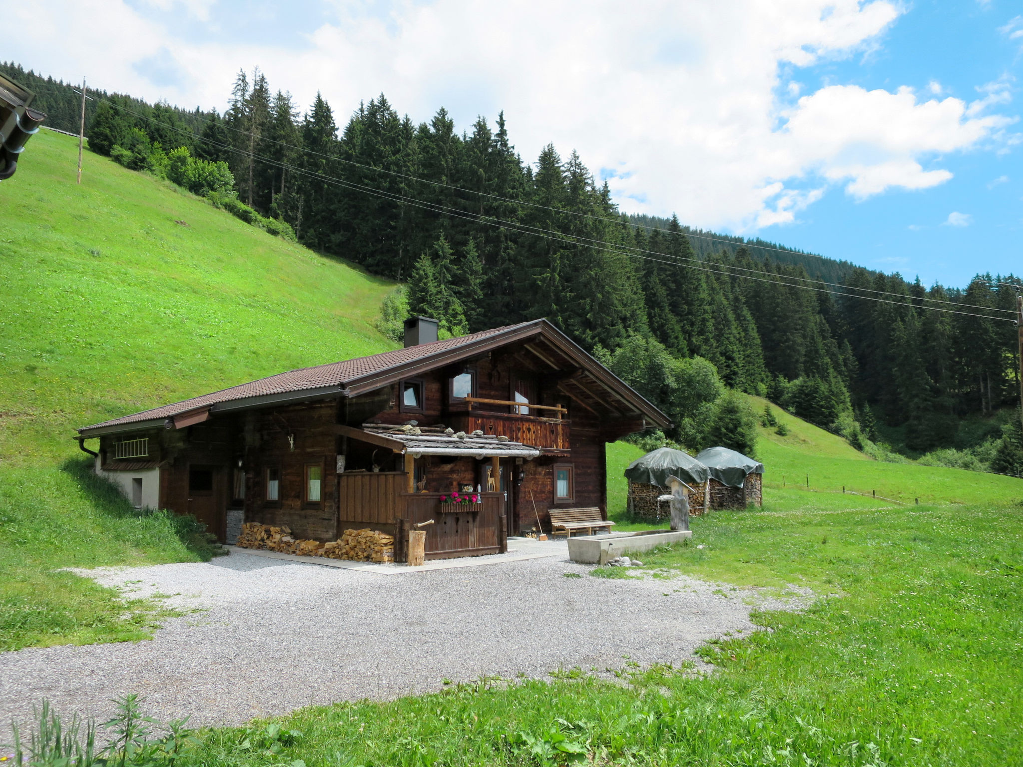Die SIMONHÜTTE steht in Hanglage auf ca. 1500 m Höhe im Ortsteil Hochschwendberg. Herrlicher Blick auf Ahornspitz und Penken. Ortsmitte Hippach mit Einkaufsmöglichkeit 11 km, Mayrhofen 16 km. Gasthof 1,7 km. Zufahrt zum Haus 11 km über teils steile Bergstraße (Schneeketten können erforderlich sein). Gute Wander- und Mountainbikemöglichkeiten direkt vom Haus. Balkon. Überdachte Terrasse im Eingangsbereich mit Bänken. Parkmöglichkeit auf dem Grundstück. Die urige Almhütte wurde liebevoll mit handgefertigten Möbeln eingerichtet und ist gemütlich durch Holzdecken, Holzböden und -wände. Sat-TV. Stereoanlage. CD. Internetzugang (WLAN, € 10/Aufenthalt). Infrarotheizung in den Schlafzimmern, Kaminofen im Wohnraum, Holzherd in der Küche. Geprüftes Trinkwasser vorhanden. Winter-Infos: Möslbahn (Zubringer ins Skigebiet Horberg/Penken) 1,4 km. Skiraum mit Skischuhtrockner. Elektroauto Ladestation (extra).