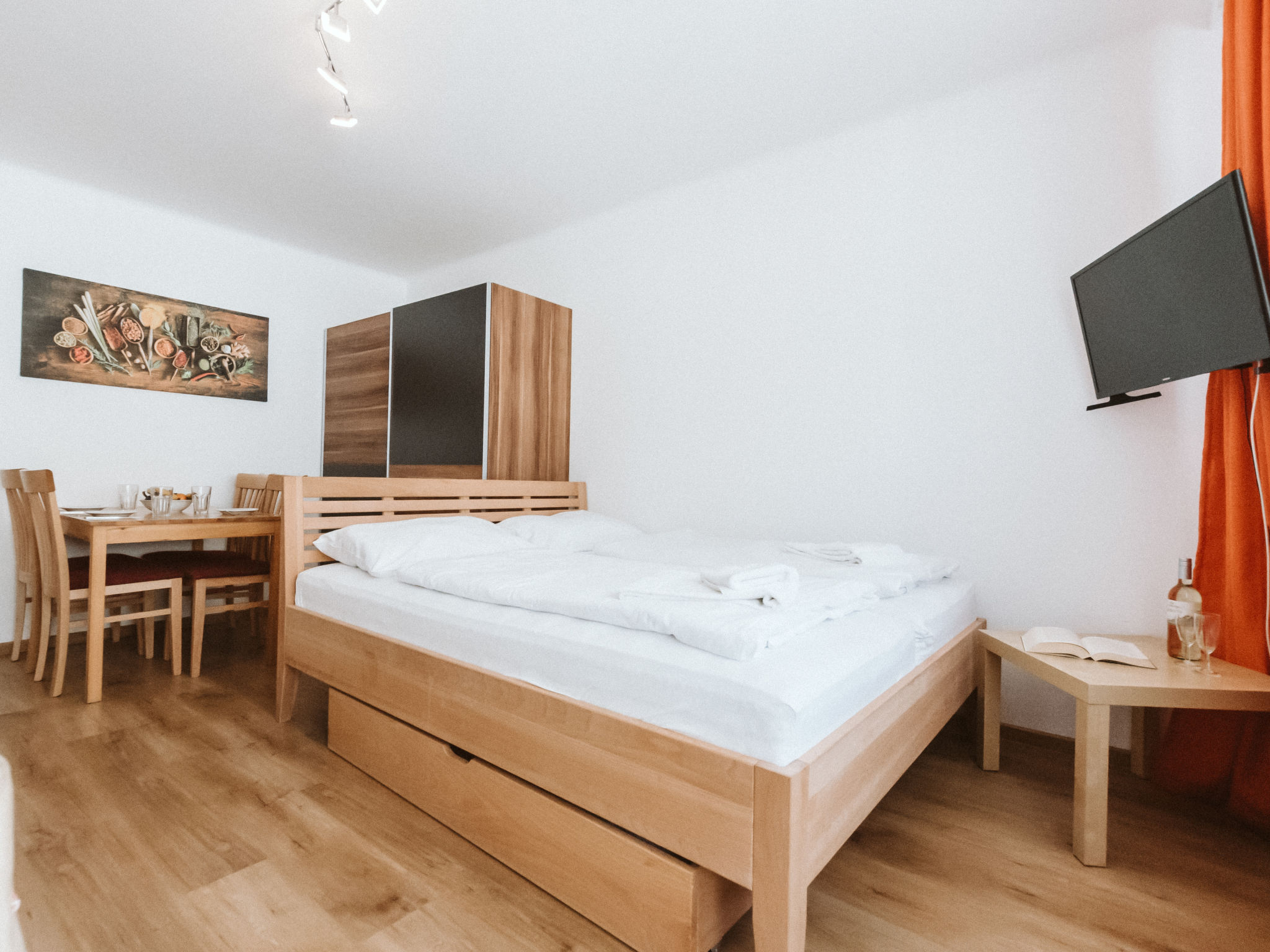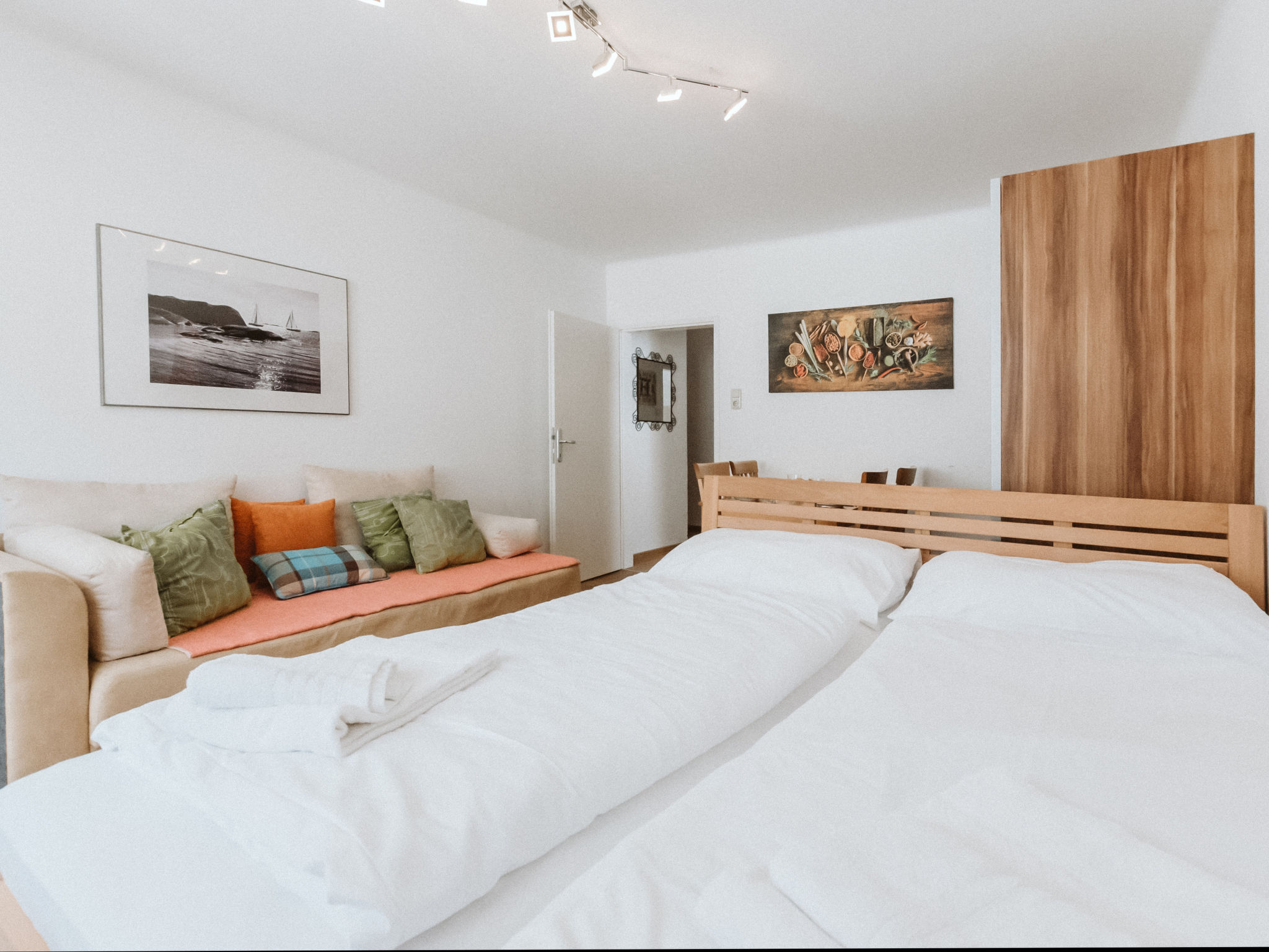 "Top 18", 1-Zimmer-Wohnung 35 m2 im 2. Stock. Hell, gemütlich eingerichtet: Eingang. Wohn-/Schlafzimmer mit 1 Diwanbett, 1 Doppeldiwanbett, Esstisch und Sat-TV. Ausgang zum Balkon. Kleine, offene Küche (2 Kochplatten, Backofen, Toaster, Wasserkocher, Mikrowelle). Bad/WC. Boiler (100 Liter). Balkon 4 m2. Sicht auf die Berge und die Ortschaft. Zur Verfügung: Internet (Wireless LAN, gratis). Bitte beachten: Nichtraucher-Unterkunft. 50403-000313-2020