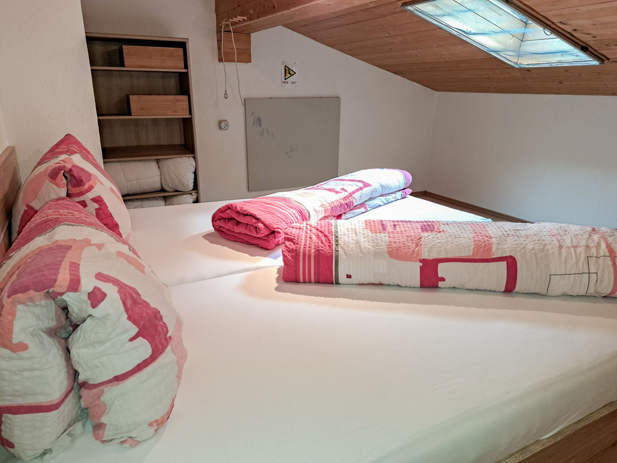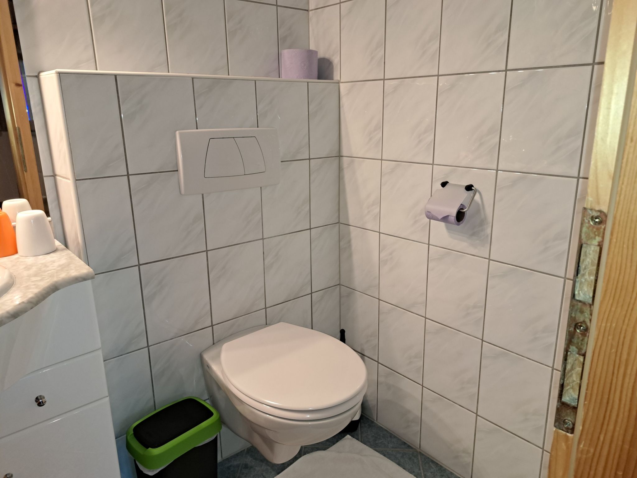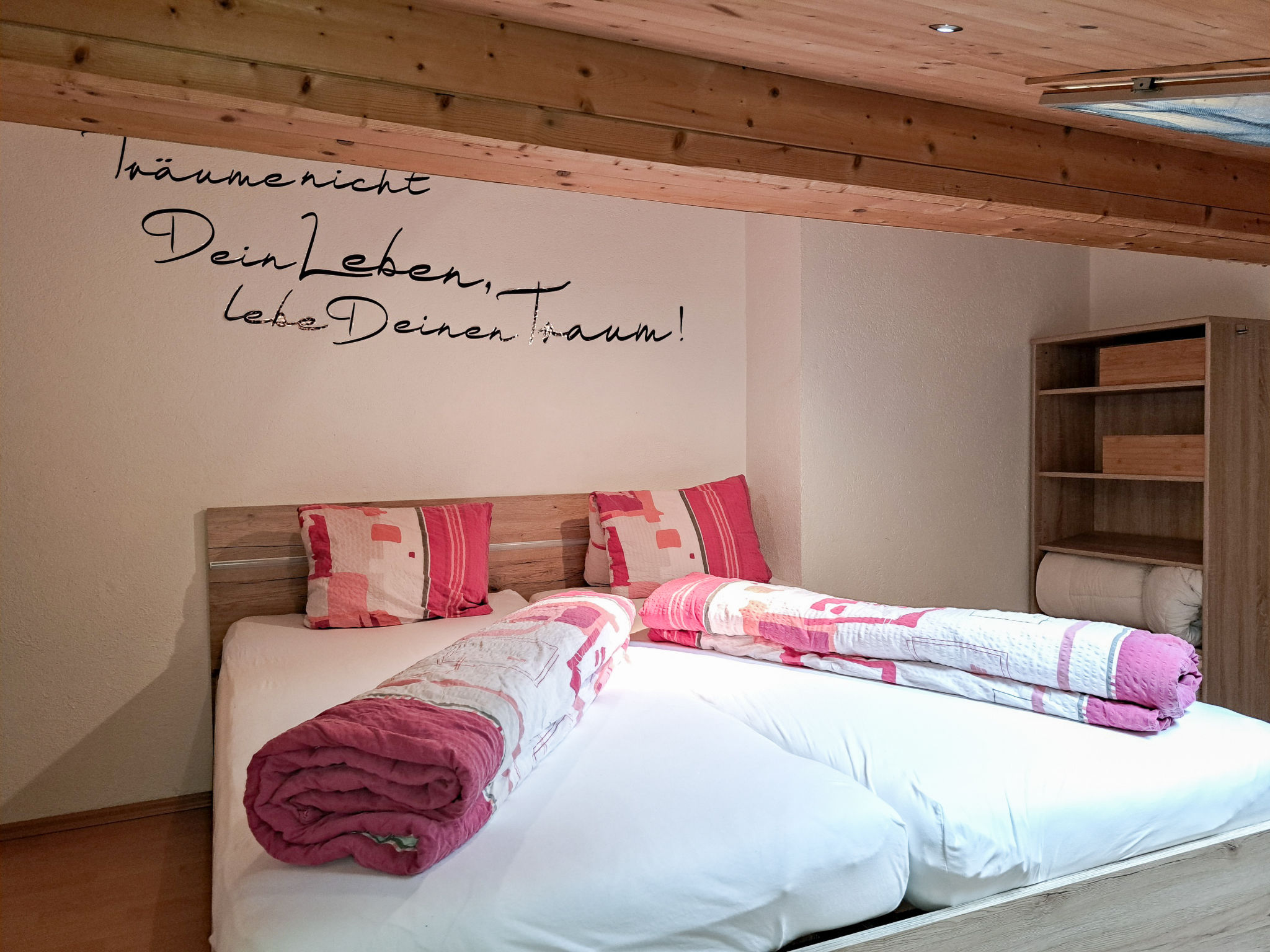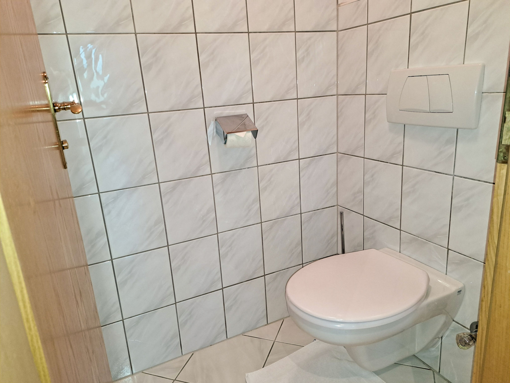 7-Zimmer-Wohnung, 1. Etage, 2 Ebenen, ca. 140 m². Zugang über Innentreppe in die 1. Etage. Wohnraum mit Sitzgruppe/Bettcouch (als Zusatzbett, siehe Nebenkosten), Essplatz (Eckbank) und Balkonausgang. Esszimmer mit Balkonausgang. Küche (4 Ceranfelder, Backofen, Mikrowelle, Geschirrspüler, Kühl-/Gefrierkombination, Kaffeemaschine, Wasserkocher, Toaster) mit Bartheke und 3 Hockern. Doppelzimmer mit Bad und Balkonausgang. Doppelzimmer mit Balkonausgang. Dusche. 2x Sep.WC. Vom Wohnraum Treppe in die 2. Etage (Dachschräge): Doppelzimmer mit sep.WC. Vom Esszimmer Wendeltreppe in die 2. Etage (Dachschrägen, teils eingeschränkte Stehhöhe): 2x Doppelzimmer jeweils mit Zugang zu gemeinsamem sep.WC. Hinweis: Bei Buchung zum Preis für 6 Personen bleiben 2 Schlafzimmer verschlossen. Bei Buchung zum Preis für 8 Personen bleibt 1 Schlafzimmer verschlossen. Bei Belegung mit weniger Personen als der maximalen Personenzahl stehen nicht alle Wohneinheiten zur Verfügung.