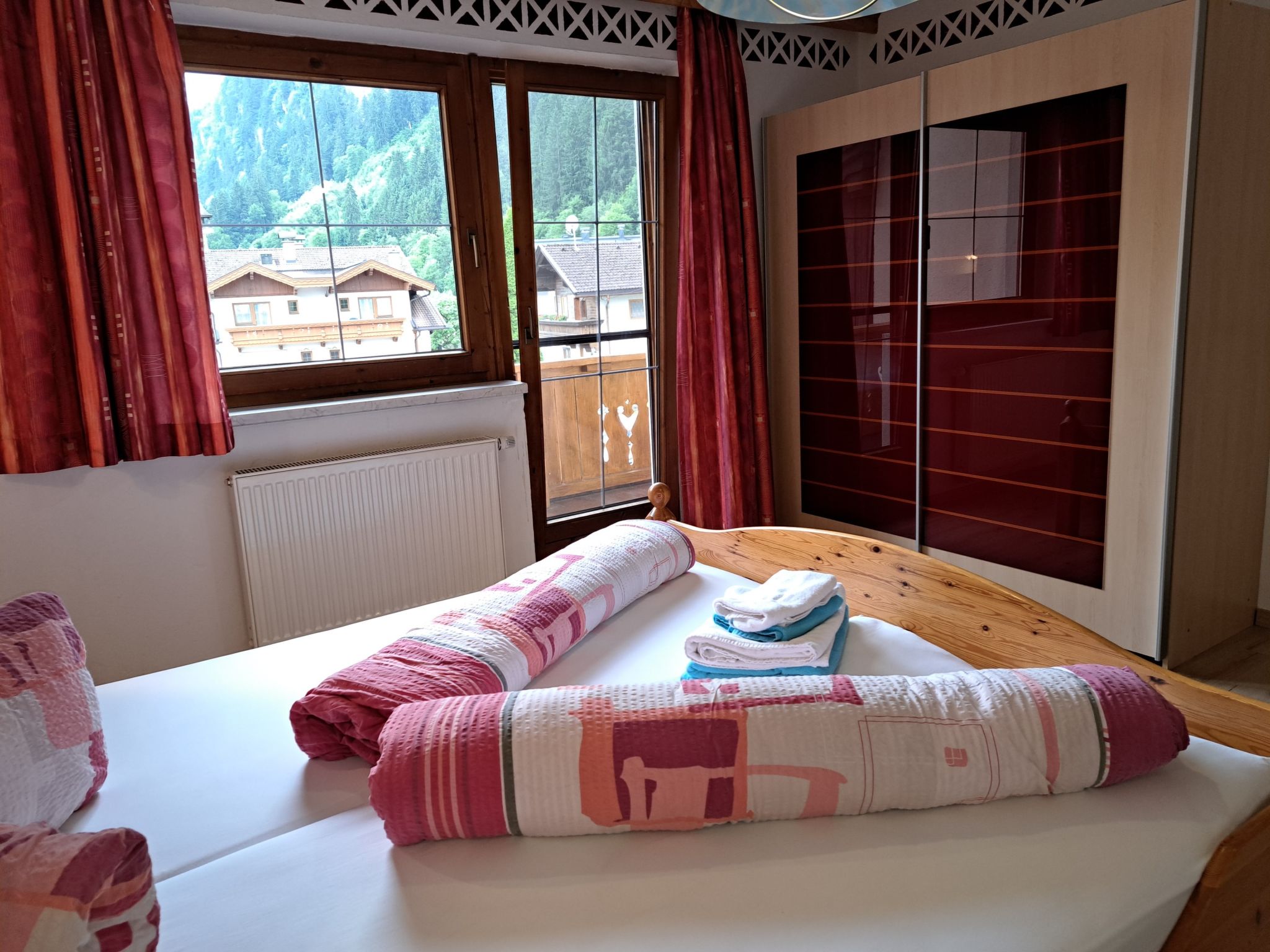 Haus YASMIN, ein Zweifamilienhaus mit unserer Wohnung und der Wohnung der Vermieter, steht im Ortsteil Burgstall, 2 km von der Ortsmitte Mayrhofen entfernt. Gasthof ca. 500 m, Klettersteig ca. 700 m, Freibad 2,5 km. Golfplatz Uderns 18 km, Hintertuxer Gletscher 22 km. Die Wohnung hat einen überdachten, über 2 Seiten umlaufenden Balkon mit Mobiliar und transportablem Grill. Brötchenservice. 4 Parkplätze auf dem Grundstück. Freundliche Einrichtung, teils mit neuen Möbeln. Fliesen- und Laminatboden. 2x Sat-TV, Radio. Internetzugang (WLAN, inklusive). Holz-Zentralheizung. Hinweis: Rauchen ist in der Wohnung nicht gestattet. Winter-Infos: Skibushaltestelle ca. 10 m. Loipe ca. 100 m. Horbergbahn 1,1 km. Penkenbahn 2,5 km, Ahornbahn 2,8 km. Im Haus Ski- und Skischuhabstellmöglichkeit mit Skischuhtrocker.