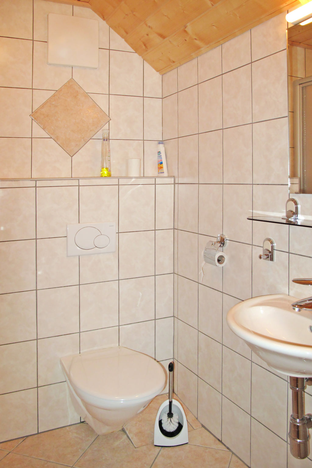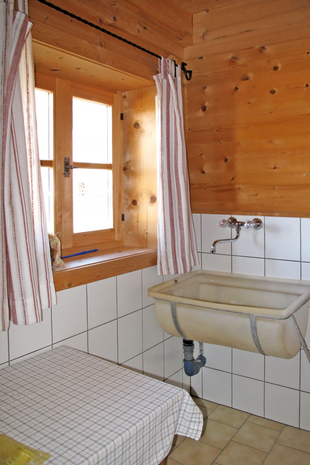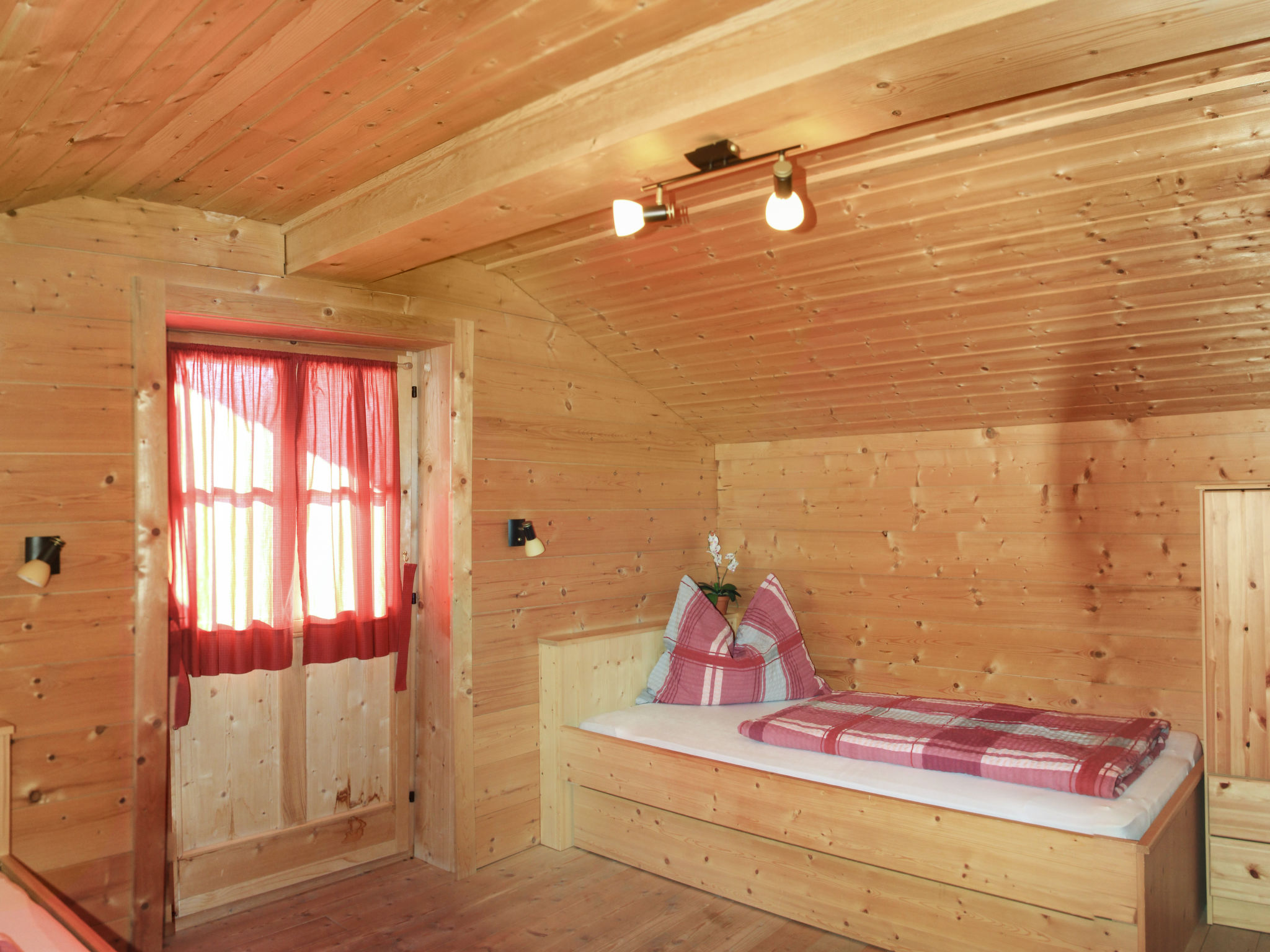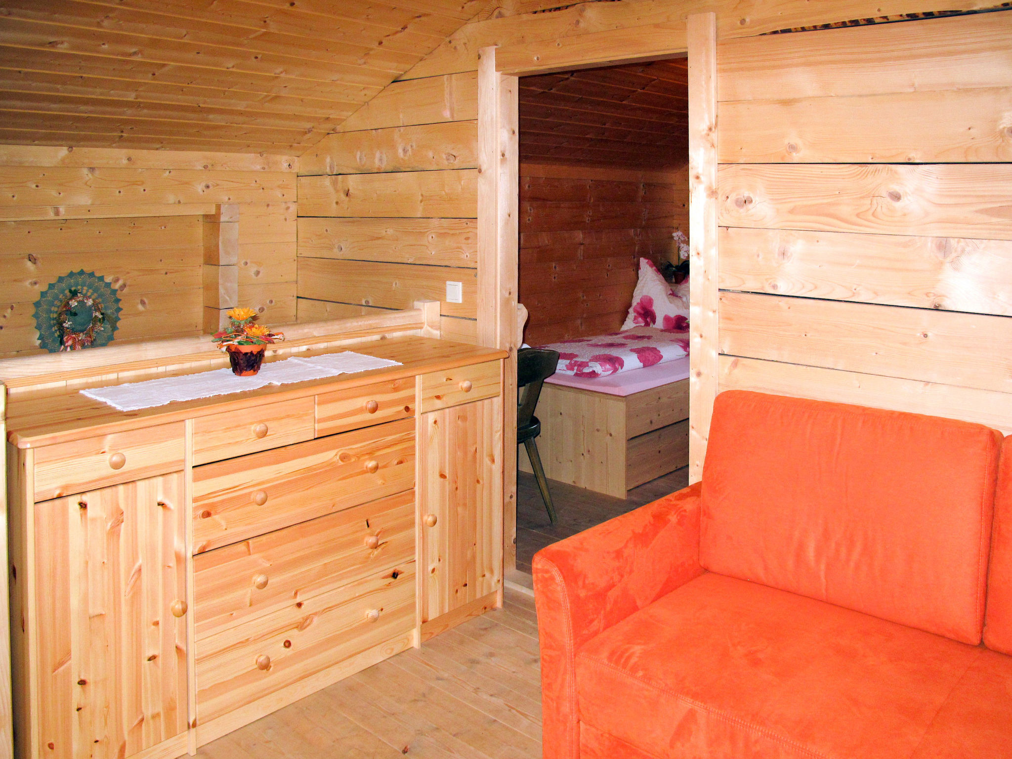 3½-Zimmer-Haus, 2 Etagen, ca. 73 m². Erdgeschoss: Wohnraum mit Kaminofen und Essplatz. Küche (2 Platten, Holzofen mit Backrohr, Mikrowelle, Kühlschrank, Kaffeemaschine, Wasserkocher, Toaster, Raclette) mit Essplatz für 4 Personen. Doppelzimmer. Dusche/WC. Abstellraum. 1. Etage: Flur mit Doppelbettcouch (nicht durch Tür abgeschlossen). Schlafzimmer mit 2 Einzelbetten, jeweils mit Ausziehbett (unterschiedliche Liegehöhe), Balkonausgang. Flexibilität bei der Bettenaufteilung: Es stehen mehr Schlafmöglichkeiten zur Verfügung als die maximal zugelassene Personenzahl, diese darf dennoch nicht überschritten werden. 50624-000306-2020