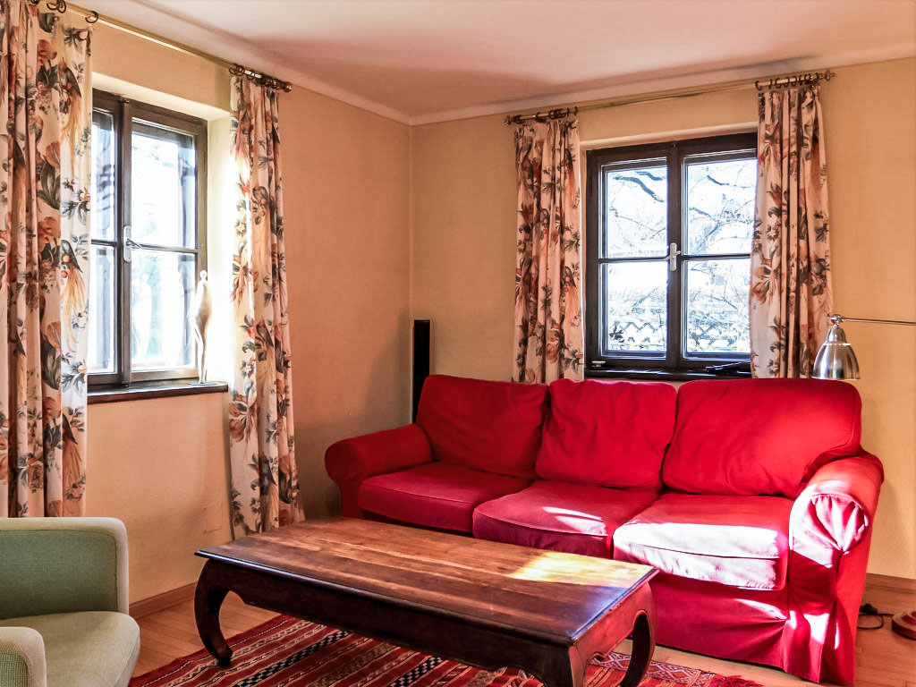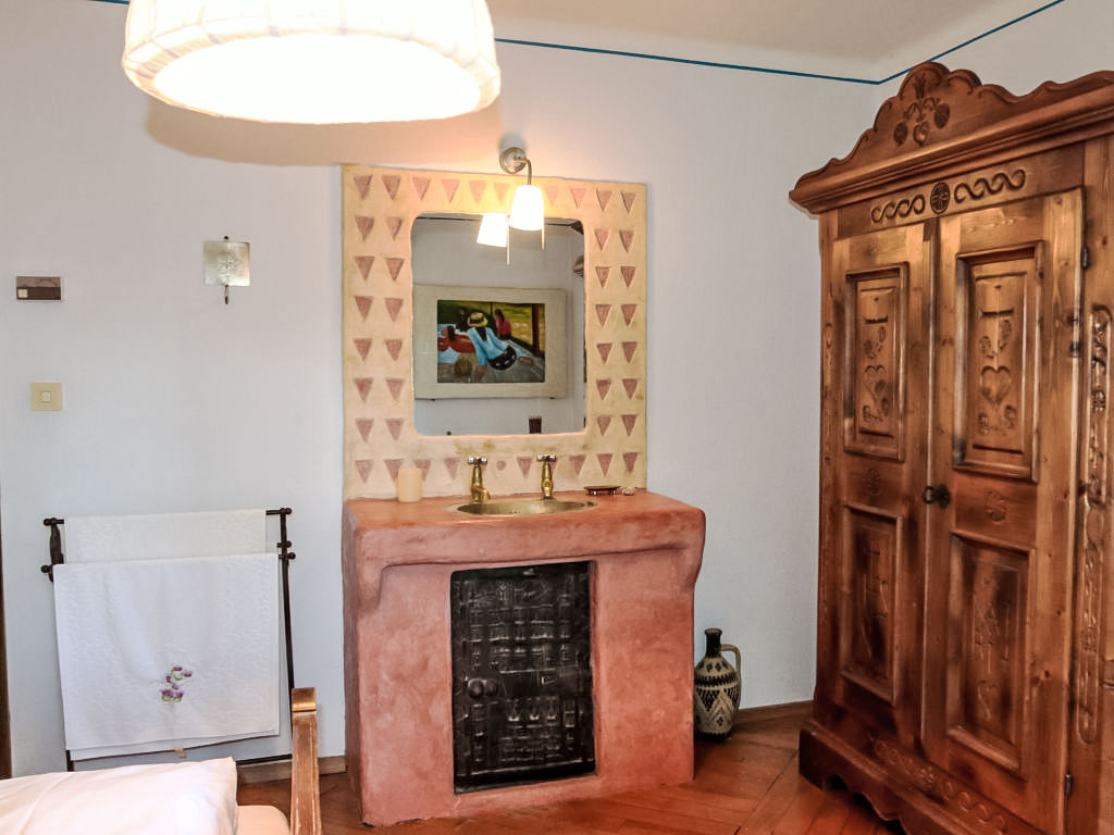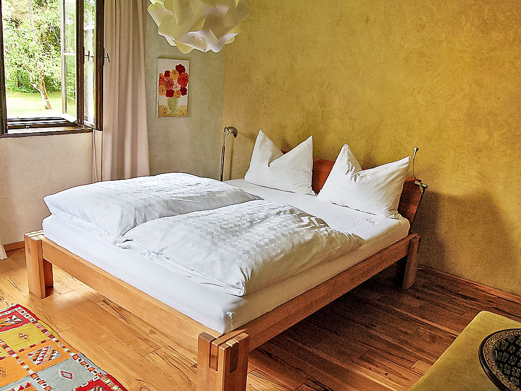 5-Zimmer-Haus 120 m2 auf 2 Stockwerken. Geschmackvoll und gemütlich eingerichtet: 1 Doppelzimmer mit Waschbecken. Grosses Wohnzimmer mit Kabel-TV (Flachbildschirm), Kachelofen. Ausgang zum Garten, zur Terrasse. Dusche, sep. WC. Obergeschoss: Esszimmer mit Schwedenofen, Essecke und Radio. 1 Doppelzimmer. 1 Zimmer mit 2 Betten und Waschbecken. Küche (Backofen, Geschirrspüler, 4 Glaskeramikherd Platten, Mikrowelle). Sep. WC. E-Heizung. Holzböden. Balkon, Terrasse. Terrassenmöbel, Liegestühle. Sehr schöne Sicht auf die Berge und die Landschaft. Zur Verfügung: Internet (Wireless LAN, gratis). Bitte beachten: Nichtraucher-Haus. 1 Haustier/Hund erlaubt. 50336-000849-2020