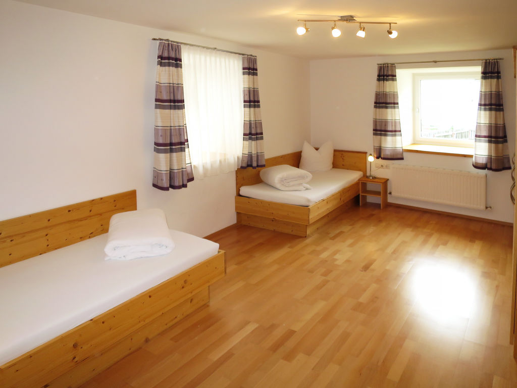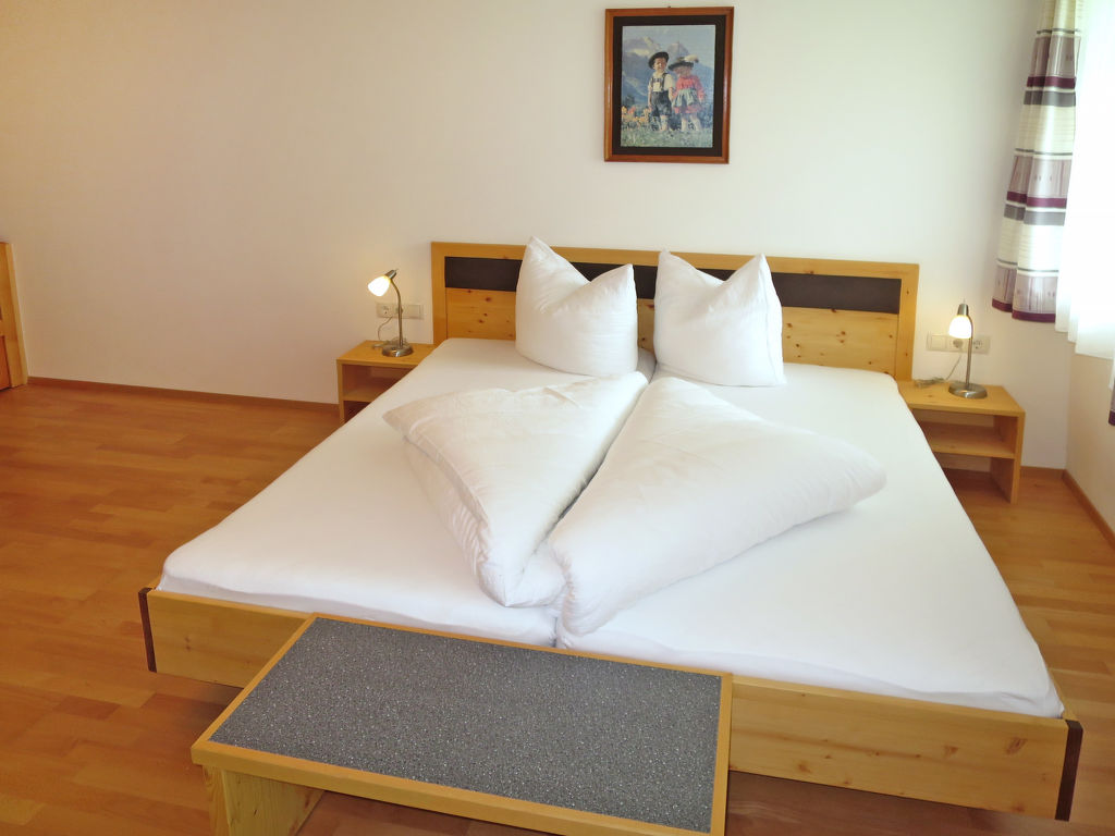 "Moriggl (NDR160)", 3-Zimmer-Wohnung 100 m2, im Erdgeschoss. Hell, schön und gemütlich eingerichtet: Wohn-/Schlafzimmer mit 1 Doppeldiwanbett und Sat-TV. 1 Zimmer mit 1 Diwanbett und 1 Doppelbett. 1 Zimmer mit 2 Betten. Küche (Backofen, 4 Glaskeramikherd Platten, Toaster, Wasserkocher, Mikrowelle, elektrische Kaffeemaschine) mit Esstisch. Ausgang zur Terrasse. Bad/Dusche, sep. WC. Ölheizung. Terrasse. Terrassenmöbel, Liegestühle (3), Abstellkammer. Zur Verfügung: Kinderhochstuhl, Babybett. Internet (Wireless LAN, gratis). Bitte beachten: eigener Eingang. Flexibilität bei der Bettenaufteilung: Es stehen mehr Schlafmöglichkeiten zur Verfügung als die maximal zugelassene Personenzahl, diese darf dennoch nicht überschritten werden.