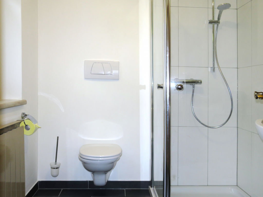 2-Zimmer-Wohnung, 1. Etage (zum Hang Erdgeschoss), ca. 40 m². Separater Zugang über Außentreppe. Flur mit Garderobe und Terrassenausgang. Wohn-/Schlafraum mit Doppelbettcouch, Essplatz und Küchenzeile (4 Ceranfelder, Backofen, Mikrowelle, Geschirrspüler, Kühlschrank, Kaffeemaschine, Wasserkocher, Toaster). Doppelzimmer. Dusche/WC. Bei Belegung mit weniger Personen als der maximalen Personenzahl stehen nicht alle Wohneinheiten zur Verfügung. 50417-000437-2020