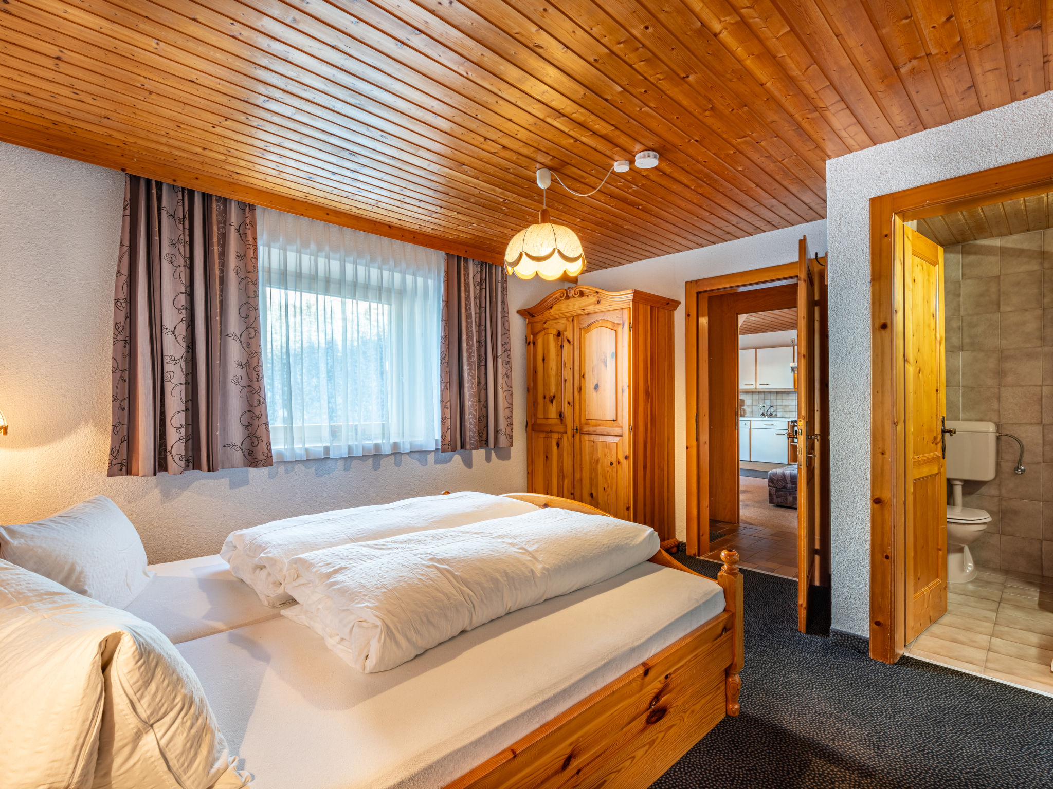 2-Zimmer-Wohnung, Erdgeschoss (Hanglage), ca. 50 m². Sep. Eingang in Flur. Wohn-/Schlafraum mit Doppelbett, Bettcouch, Essplatz, Küchenzeile (4 Ceranfelder, Mikrowelle, Geschirrspüler, Kühlschrank, Kaffeemaschine, Wasserkocher) und Dusche/WC. Doppelzimmer mit Dusche/WC. Bei Belegung mit weniger Personen als der maximalen Personenzahl stehen nicht alle Wohneinheiten zur Verfügung.