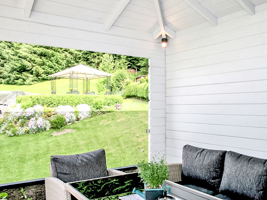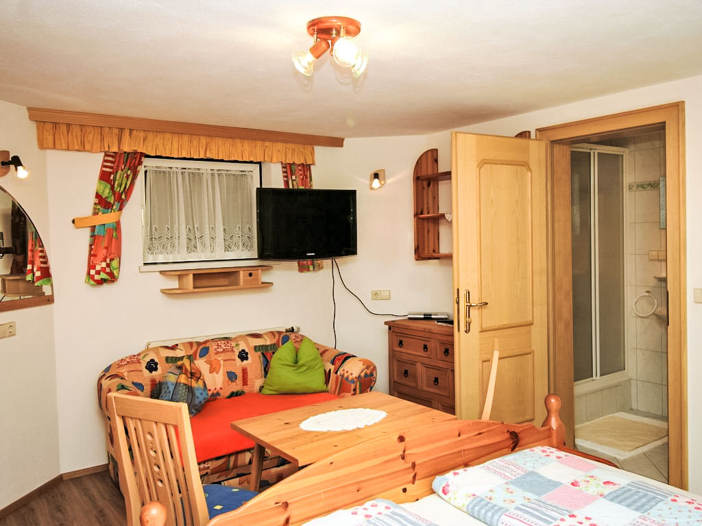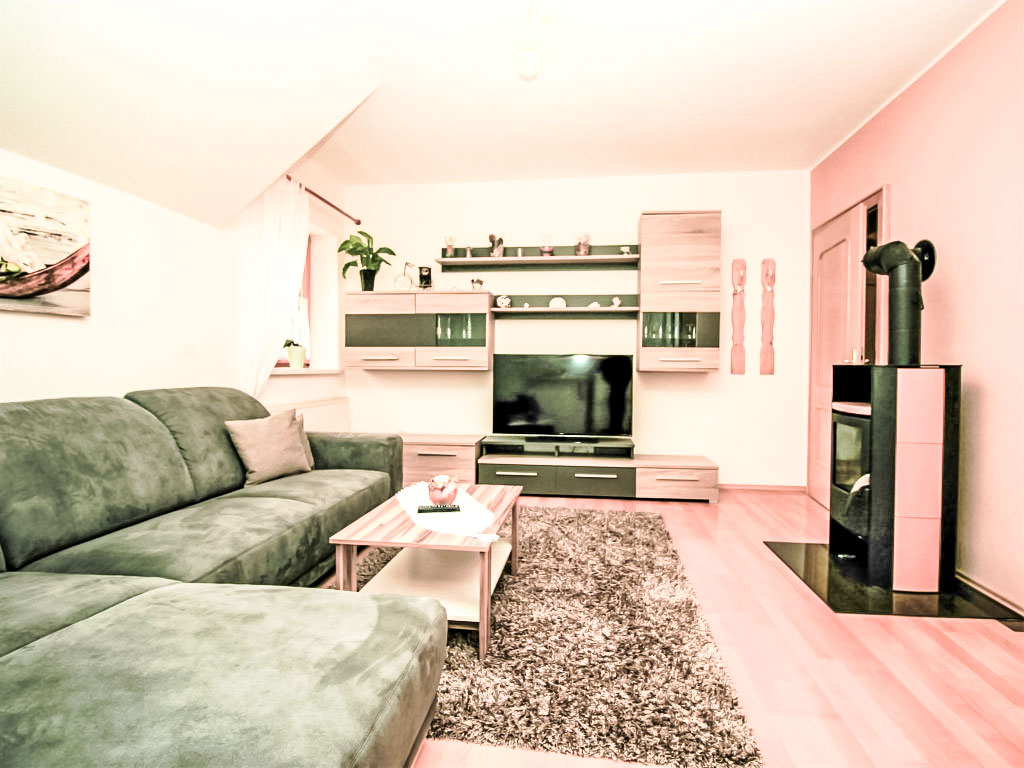 3-Zimmer-Wohnung 60 m2 im 1. Stock. Komfortabel und geschmackvoll eingerichtet: Eingang. Grosses Wohnzimmer mit 1 Doppeldiwanbett, Schwedenofen und Sat-TV. 1 Doppelzimmer mit Dusche/WC. Wohnküche (Backofen, Geschirrspüler, 4 Glaskeramikherd Platten, Tiefkühler, elektrische Kaffeemaschine, Kombinationsmikrowelle) mit Esstisch, Radio. Unteres Geschoss: 25 m2, Studio mit 1 Doppelbett, Dusche/WC und Sat-TV. 2 Balkone, Gartensitzplatz, Laube. Balkonmöbel, Gartengrill, Liegestühle. Sicht auf die Berge und die Ortschaft. Zur Verfügung: Haartrockner. Internet (Wireless LAN, gratis). Bitte beachten: ein Doppelzimmer liegt außerhalb der Wohnung. Nichtraucher-Haus. Die sehr gepflegte Gartenanlage ist mit überdachtem Pavillon, dem gemütlichen Gartenhaus mit Heizung und überdachter Terrasse sowie einem Gartengrill ausgestattet. Seele baumeln inklusive! SOMMERCARD inklusive!