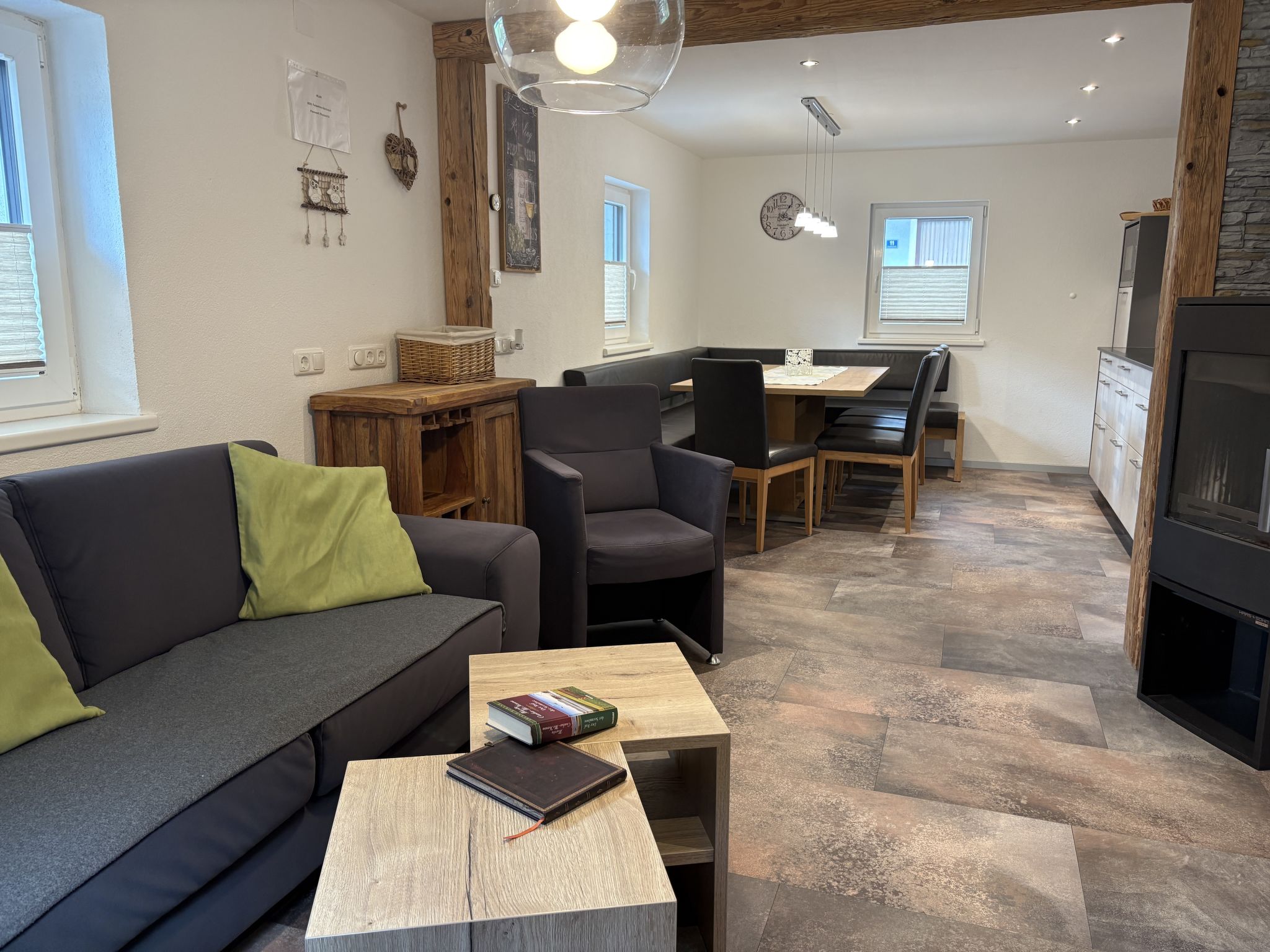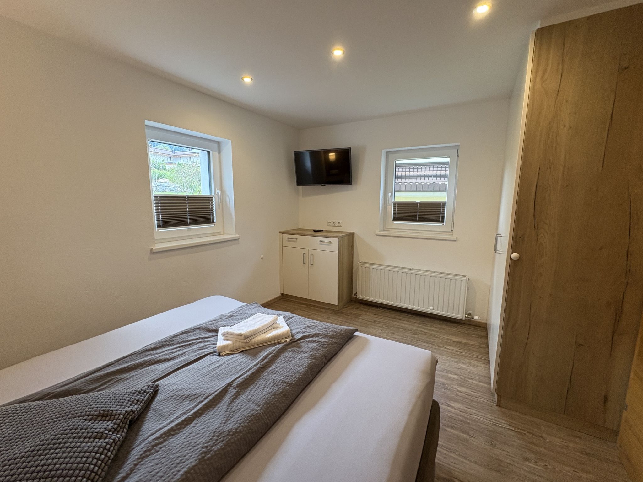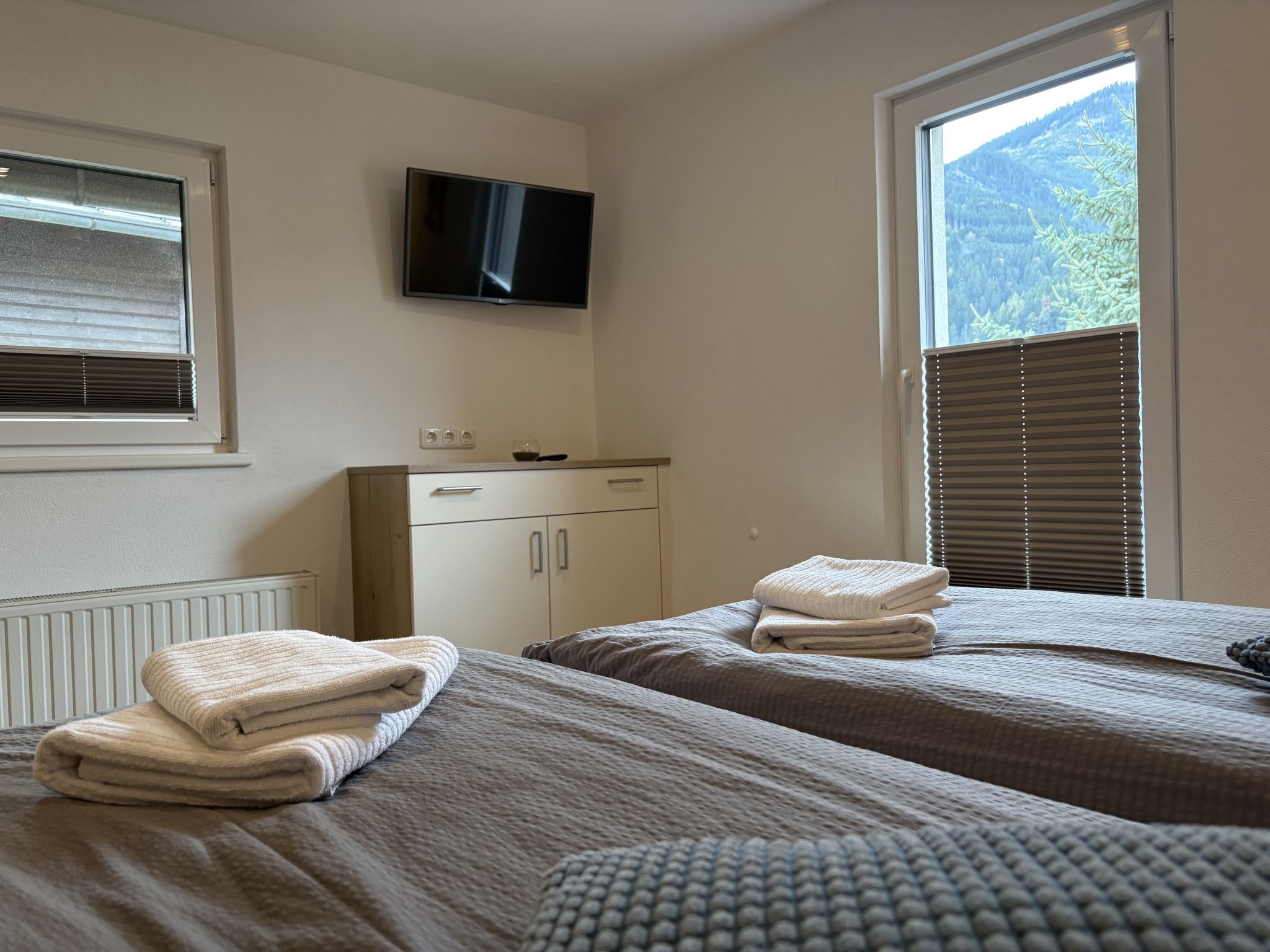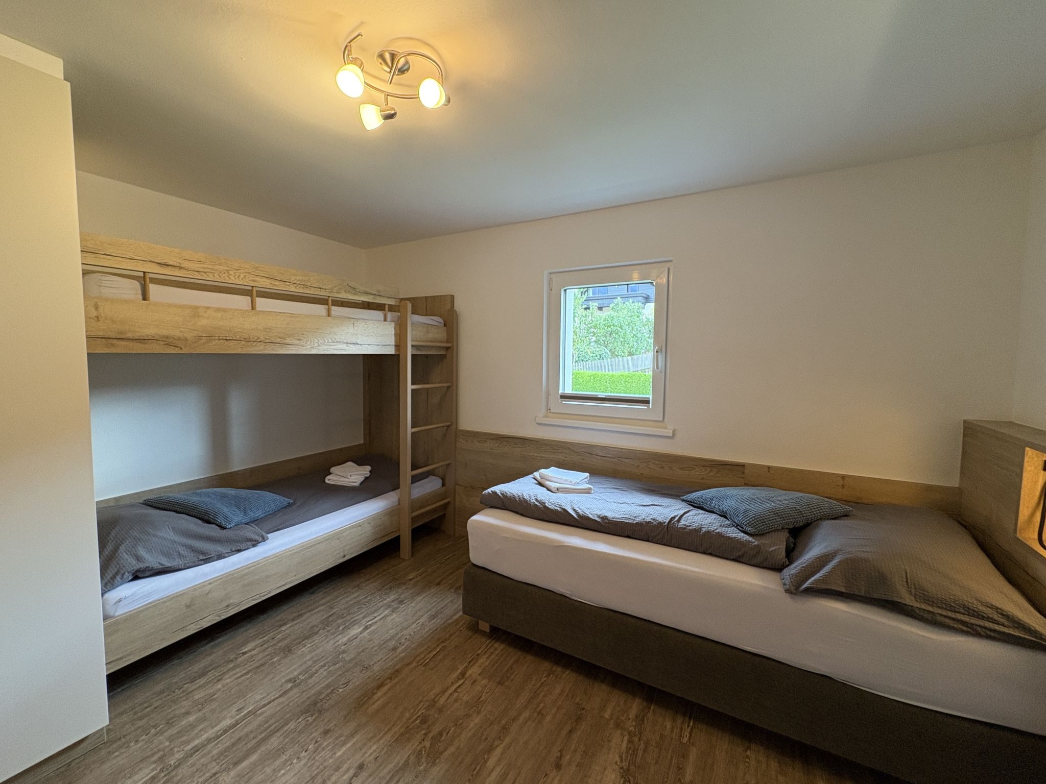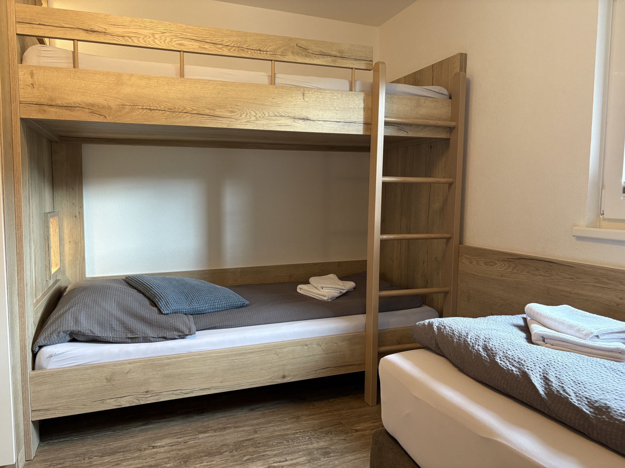 "Machreich", 5-Zimmer-Haus 140 m2 auf 2 Stockwerken, im Erdgeschoss. Objekt geeignet für 7 Erwachsene + 2 Kinder. Vollständig renoviert im Jahre 2017, geschmackvoll und gemütlich eingerichtet: Eingang. Offenes Wohnzimmer mit Schwedenofen und Kabel-TV (Flachbildschirm). 1 Doppelzimmer mit 1 Doppelbett (2 x 80 cm, Länge 200 cm), Sat-TV (Flachbildschirm). Offene Küche (Backofen, Geschirrspüler, 4 Glaskeramikherd Platten, Mikrowelle, Tiefkühler) mit Esstisch. Dusche, sep. WC. Obergeschoss: 1 Zimmer mit 1 Bett (90 cm, Länge 200 cm), 1 x 2 Etagenbetten (90 cm, Länge 200 cm), Sat-TV (Flachbildschirm). 1 Doppelzimmer mit Sat-TV (Flachbildschirm). Ausgang zum Balkon. 1 Doppelzimmer mit Sat-TV (Flachbildschirm). Dusche, sep. WC. Schöne, auf die Berge und die Landschaft. Zur Verfügung: Internet (Wireless LAN, gratis). Bitte beachten: Nichtraucher-Haus. Im Haus ist noch ein Zustellbett mietbar. 50602-000312-2020