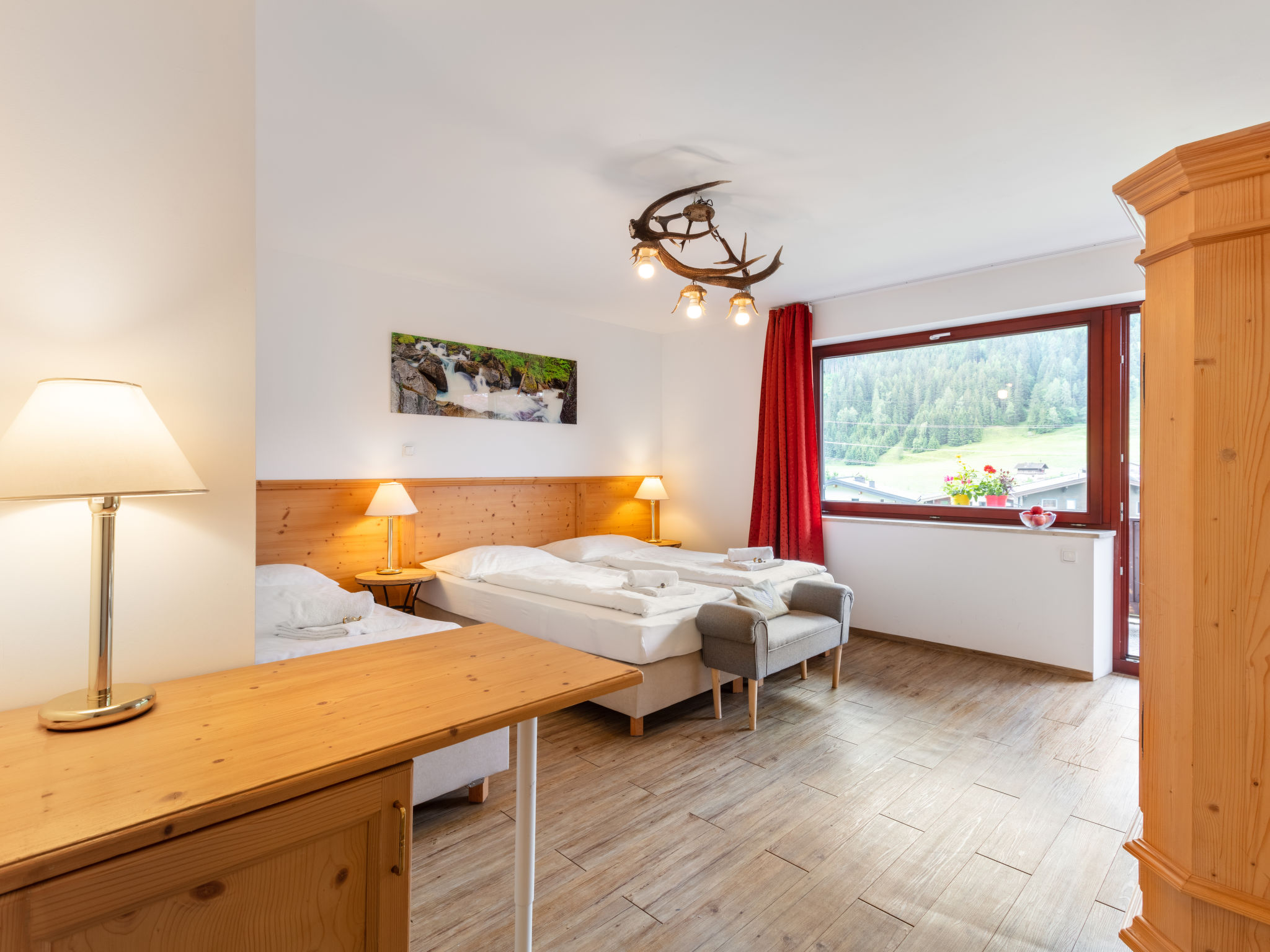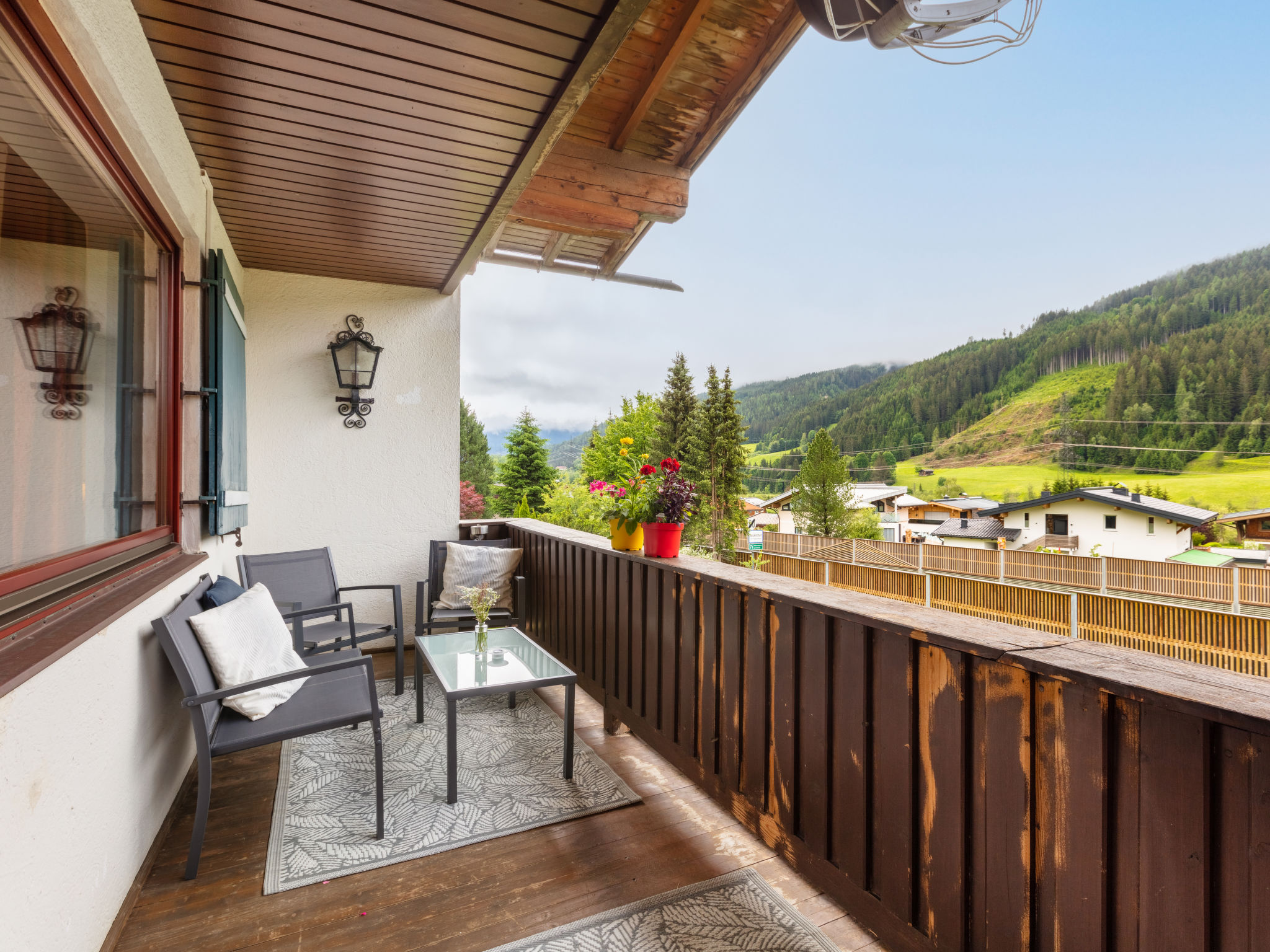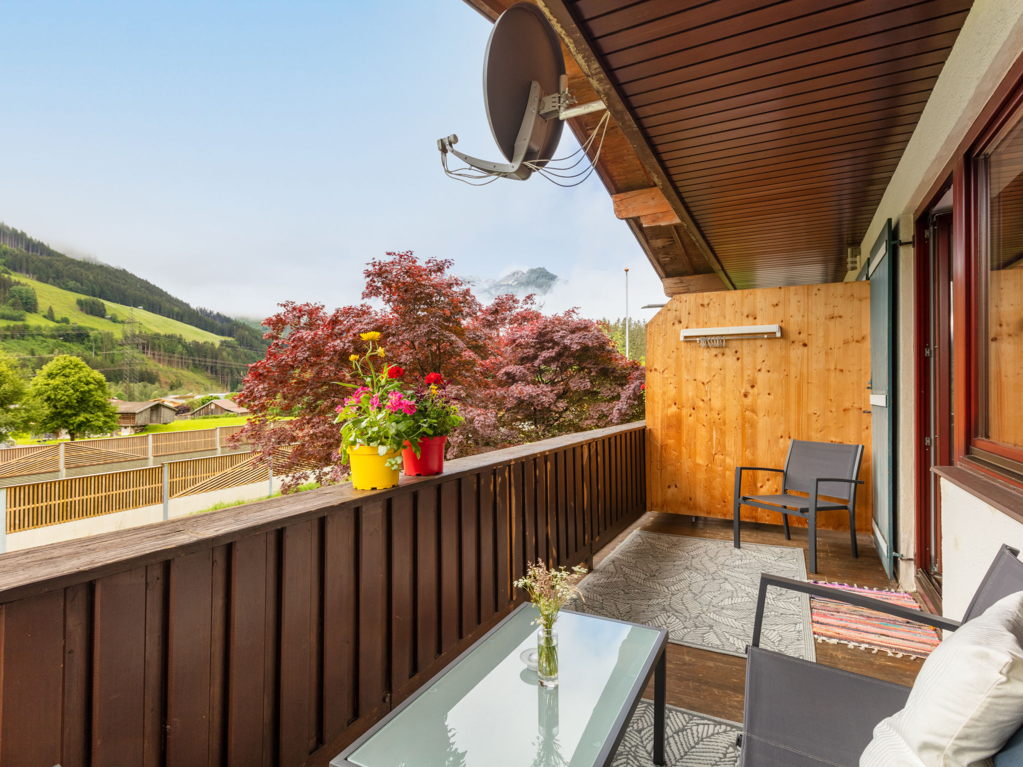 "Apartment Morgensonne", 3-Zimmer-Wohnung 55 m2 im 1. Stock. Hell, komfortabel eingerichtet: 1 Zimmer mit 2 Betten. 1 Zimmer mit 1 Bett und 1 Doppelbett. Ausgang zum Balkon. Wohnküche (Geschirrspüler, 4 Glaskeramikherd Platten, Wasserkocher, elektrische Kaffeemaschine, Kombinationsmikrowelle) mit Essecke und Sat-TV (Flachbildschirm). Dusche/WC. Balkon 9 m2, Südlage. Balkonmöbel. Schöne Panoramasicht auf die Hohen Tauern. Zur Verfügung: Kinderhochstuhl, Babybett bis 2 Jahre, Haartrockner. Internet (Wireless LAN, gratis). Bitte beachten: Nichtraucher-Unterkunft. 50614-006260-2021