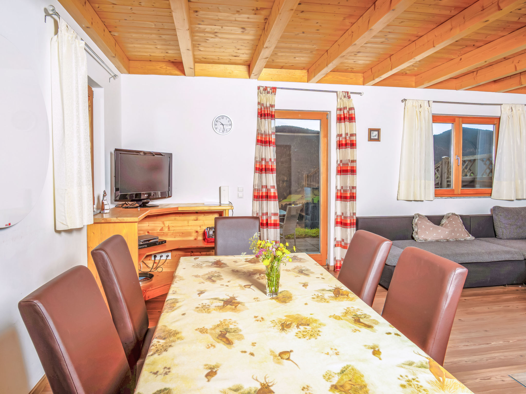 "Auer (EBE116)", 4-Zimmer-Doppelhaushälfte 100 m2 auf 2 Stockwerken. Gemütlich und mit viel Holz eingerichtet: Wohnzimmer mit Schwedenofen, Esstisch und Sat-TV. Ausgang zur Terrasse. Offene Küche (Backofen, Geschirrspüler, 4 Glaskeramikherd Platten, Wasserkocher, elektrische Kaffeemaschine). Sep. WC. Obergeschoss: 3 Doppelzimmer. Dusche, sep. WC, Doppelwaschbecken. Heizung. Holzböden. Terrasse. Terrassenmöbel. Schöne Sicht auf die Berge. Zur Verfügung: Waschmaschine, Kinderhochstuhl, Babybett. Internet (Wireless LAN, gratis). 4-Zimmer-Haushälfte, 2 Etagen, ca. 100 m². Flur mit Garderobe. Wohnraum mit Sitzgruppe, Pelletkaminofen, Essplatz und Küchenzeile (4 Ceranfelder, Backofen, Geschirrspüler, Kühlschrank, Kaffeemaschine, Wasserkocher), Terrassenausgang. Sep.WC. 1. Etage: 3 Doppelzimmer. Dusche/Doppelwaschbecken. Sep.WC. 50406-001396-2020