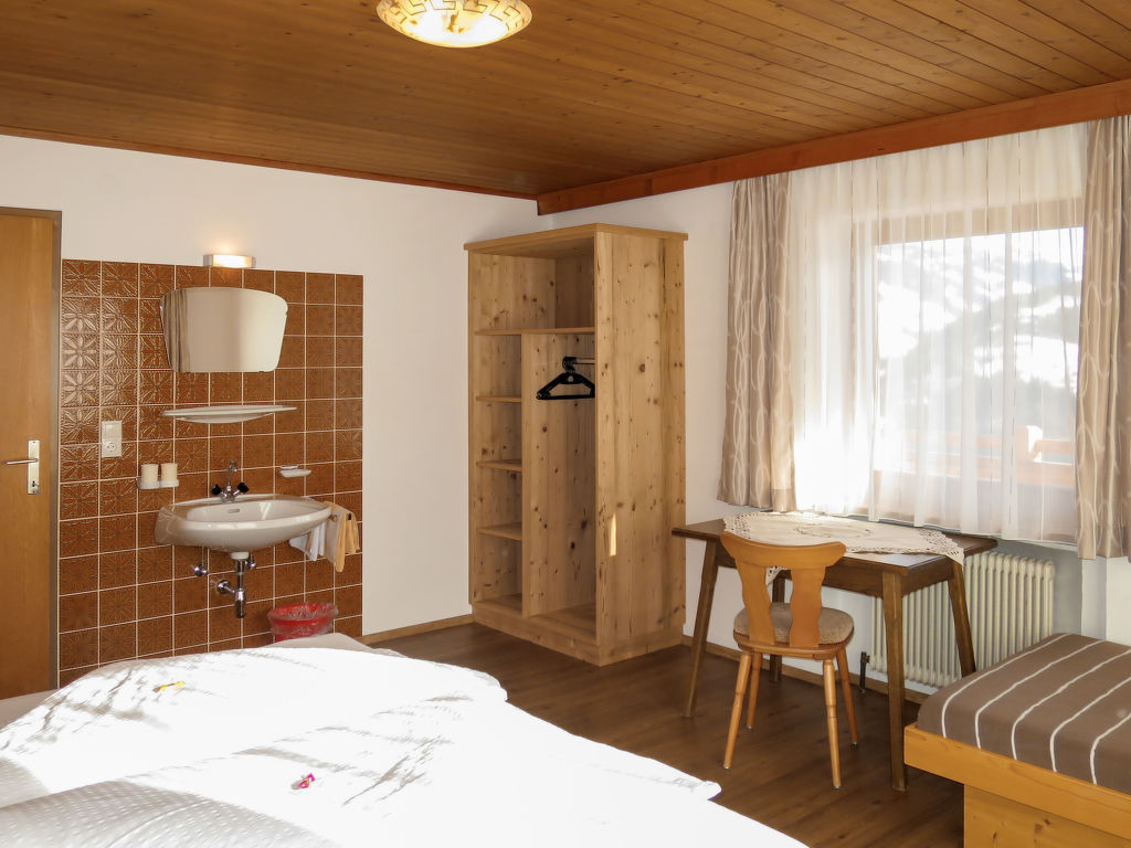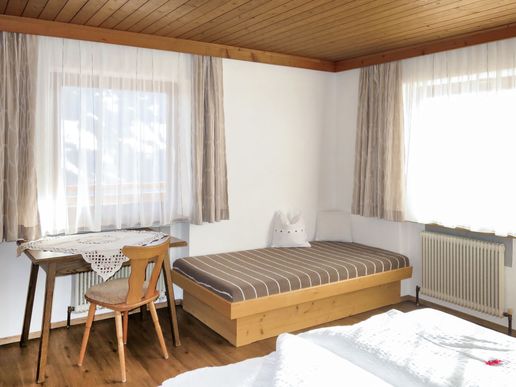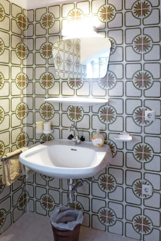 4-Zimmer-Wohnung, 1. Etage, ca. 120 m². Wohnküche (4 Platten, Backofen, Geschirrspüler, Kühlschrank, Kaffeemaschine, Wasserkocher) mit Essplatz (Eckbank), Balkonausgang. Doppelzimmer mit Waschbecken, Balkonausgang. Schlafzimmer mit Doppelbett, Einzelbett, Waschbecken und Balkonausgang. Schlafzimmer mit Doppelbett und Klappliege, Waschbecken, Balkonausgang. Bad. Sep.WC. Bei Belegung mit weniger Personen als der maximalen Personenzahl stehen nicht alle Wohneinheiten zur Verfügung.