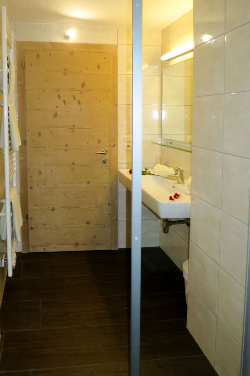 5-Zimmer-Wohnung, 2. Etage, ca. 100 m². Wohnküche (4 Ceranfelder, Backofen, Mikrowelle, Geschirrspüler, Kühlschrank, Kaffeemaschine, Wasserkocher, Toaster) mit Essplatz und Balkonausgang. Schlafzimmer mit Doppelbett, Einzelbett, Dusche/WC, Balkonausgang. Schlafzimmer mit Etagenbett, Balkonausgang. Dusche/WC. Außerhalb der abgeschlossenen Wohnung auf derselben Etage: 2 Schlafzimmer jeweils mit Doppelbett, Dusche/WC und Balkonausgang. Alle Zimmer mit Sat-TV.