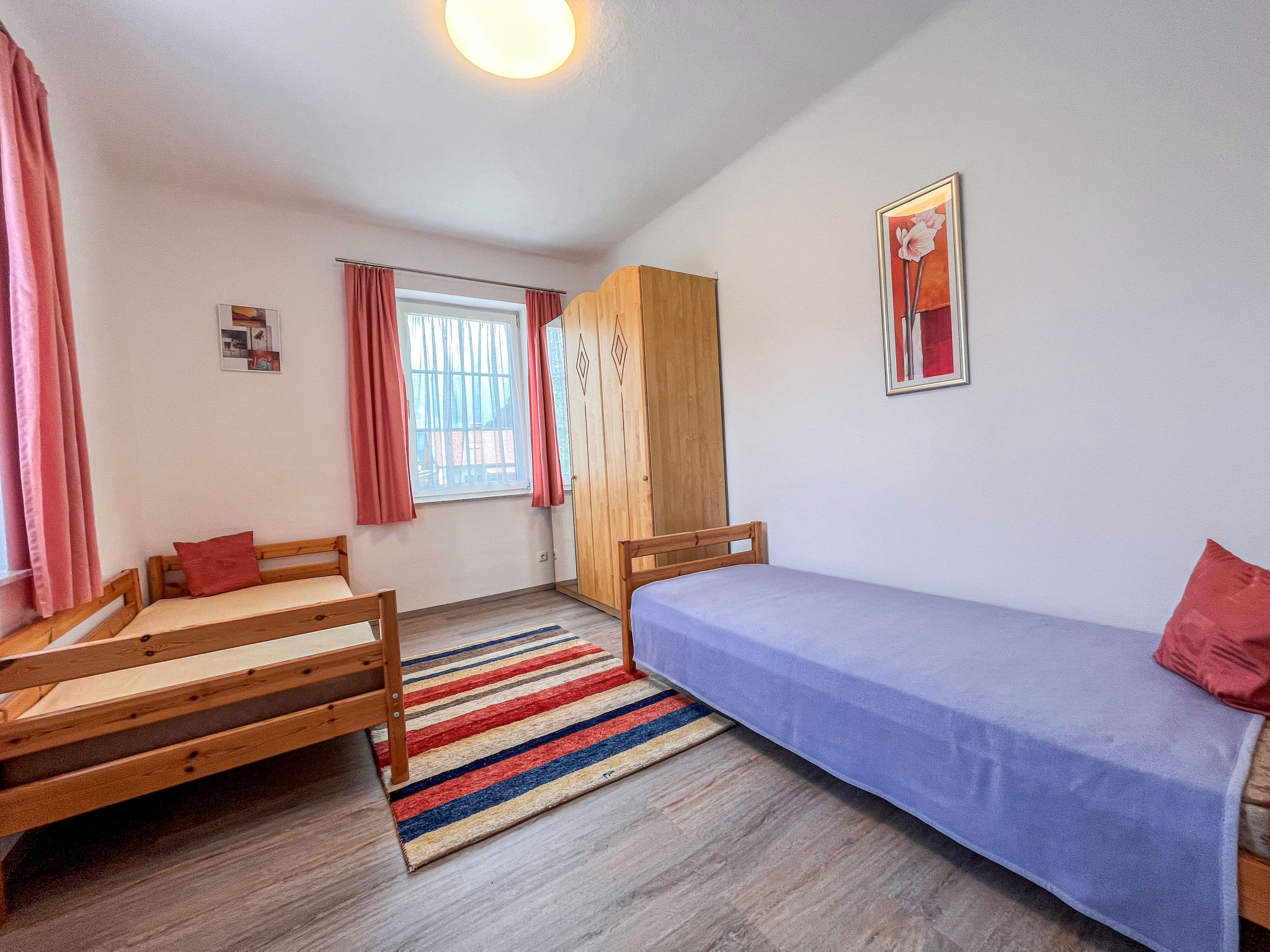 4-Zimmer-Haus, 2 Etagen, ca. 140 m². Erdgeschoss: Wohnraum mit Sitzcouch. Küche (4 Ceranfelder, Backofen, Geschirrspüler, Kühlschrank, Kaffeemaschine, Wasserkocher) mit Essplatz (Eckbank). Doppelzimmer. Dusche. Sep.WC. 1. Etage: 2 Doppelzimmer. Dusche. Sep.WC. Bei Bedarf weiteres Zimmer mit 2 Bodenmatratzen als Zusatzbetten (siehe Nebenkosten).