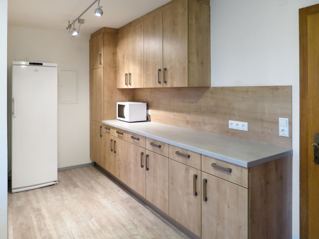 10-Zimmer-Haus, 3 Etagen, ca. 320 m². Erdgeschoss: Großer Wohn-/Aufenthaltsraum mit Essplätzen (Eckbänke), Terrassenausgang. Küche (4 Ceranfelder, Backofen, Mikrowelle, Geschirrspüler, Kühl-/Gefrierkombination, 2 Kaffeemaschinen). Sep.WC. 2. Etage: Schlafzimmer mit Doppelbett, Einzelbett, Dusche/WC. 6 Doppelzimmer, jeweils mit Dusche/WC. 3. Etage: Schlafzimmer mit Doppelbett, Einzelbett, Dusche/WC. Doppelzimmer mit Dusche/WC. Alle Schlafzimmer in der 2. und 3. Etage mit Balkonausgang.