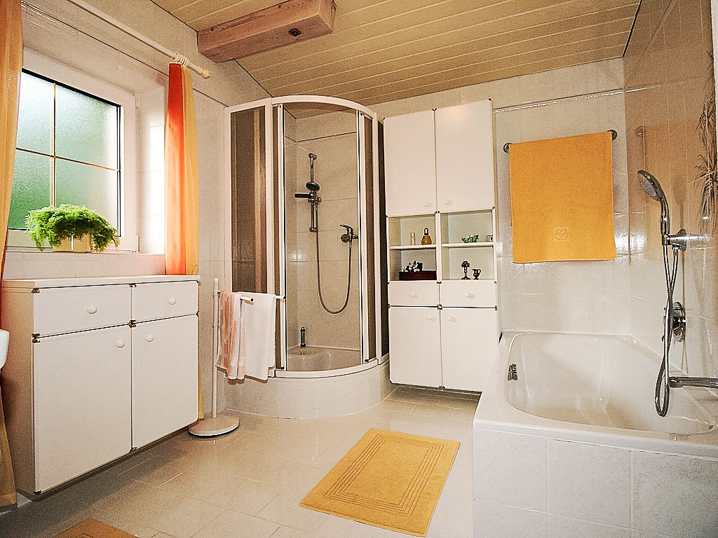 3-Zimmer-Wohnung 100 m2, im Obergeschoss. Geräumig und hell, komfortabel und gemütlich eingerichtet: Eingang. Grosses Wohn-/Schlafzimmer mit 1 Doppeldiwanbett (140 cm, Länge 200 cm), Schwedenofen und Sat-TV. 2 Doppelzimmer. Küche (Backofen, Geschirrspüler, 4 Glaskeramikherd Platten, elektrische Kaffeemaschine) mit Essecke. Bad/Dusche, sep. WC. Balkon 10 m2. Balkonmöbel. Herrliche Panoramasicht auf die Landschaft. Zur Verfügung: Babybett bis 2 Jahre. Internet (Wireless LAN, gratis). Bitte beachten: geeignet für Familien. Nichtraucher-Haus.