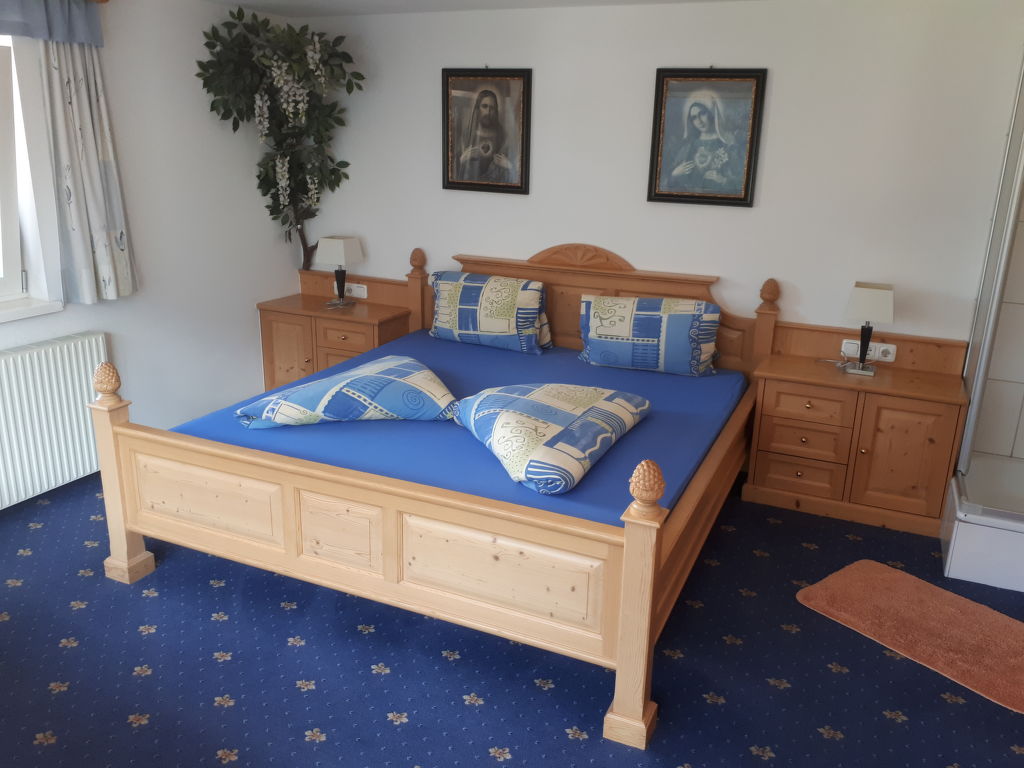 4-Zimmer-Wohnung, 1. Etage, ca. 90 m². Separater Eingang über Außentreppe und Terrasse in Flur. Wohnküche (4 Ceranfelder, Backofen, Mikrowelle, Geschirrspüler, Kühlschrank, Kaffeemaschine, Wasserkocher) mit Essplatz (Eckbank). Doppelzimmer mit Dusche und Waschbecken. Von hier Zugang zu Schlafzimmer mit Doppelbett, Einzelbett, Dusche und Waschbecken. Schlafzimmer mit Doppelbett, Einzelbett, Dusche, Waschbecken und Terrassenausgang. Bad/WC.Empfohlene Belegung: 6 Personen. Bei Belegung mit weniger Personen als der maximalen Personenzahl stehen nicht alle Wohneinheiten zur Verfügung.