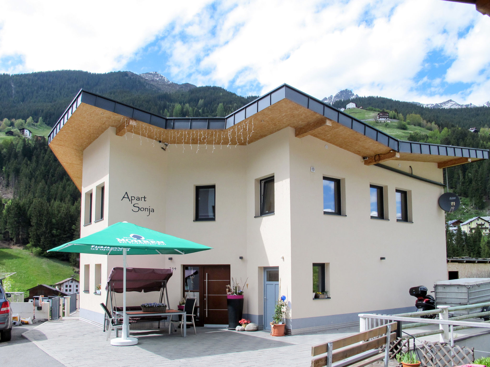 Haus APART SONJA mit insgesamt 2 Wohnungen steht im Ortsteil Labebene, am Ende einer Stichstraße, mit schöner Aussicht auf das Bergpanorama. Geschäft und Gasthof 2 km, Ortsmitte Kappl und Talstation der Diasbahn 2,5 km. Im Eingangsbereich Rezeption mit Sitzgruppe und WC zur allgemeinen Nutzung. Brötchenservice. 4 Parkplätze beim Haus. Terrasse mit Mobiliar, Grill. Der Besitzer wohnt in der 1. Etage. Die Wohnung ist neu und gut eingerichtet. Fliesen- und Laminatboden. Sat-TV in allen Schlafzimmern und in der Wohnküche. DVD, Radio/CD. Internetzugang (WLAN, inklusive). Fußbodenheizung. Hinweis: Rauchen ist in der Wohnung nicht gestattet. Winter-Infos: Skibus nach Kappl und Ischgl ca. 500 m. Talstation der Diasbahn 2,5 km. Beheizter Ski- und Schuhraum. Skischuhtrockner. Haus "Apart Sonja". Im Ortsteil Labebene, 2.5 km vom Zentrum von Kappl, 8 km vom Zentrum von Ischgl, 20 km vom Zentrum von Landeck, am Hang, in einer Sackgasse. Zur Alleinbenutzung: Terrasse, Gartenmöbel, Grill. Im Hause: Skiraum, Skischuhtrockner. Brötchenservice. Parkplatz auf dem Grundstück. Einkaufsgeschäft 2 km, Lebensmittelgeschäft 2 km. Bergbahn 8 km, Skilift 8 km, Gondelbahn 2.5 km, Skibushaltestelle 500 m, Skischule 2.5 km. Bitte beachten: Der Besitzer wohnt im selben Haus.