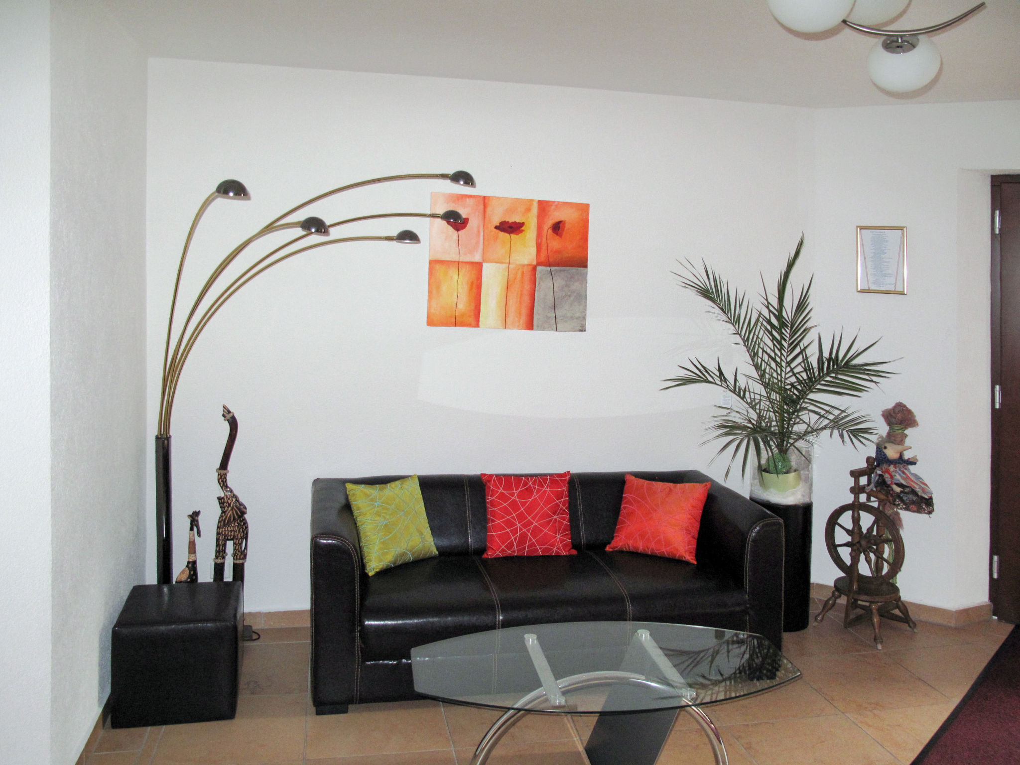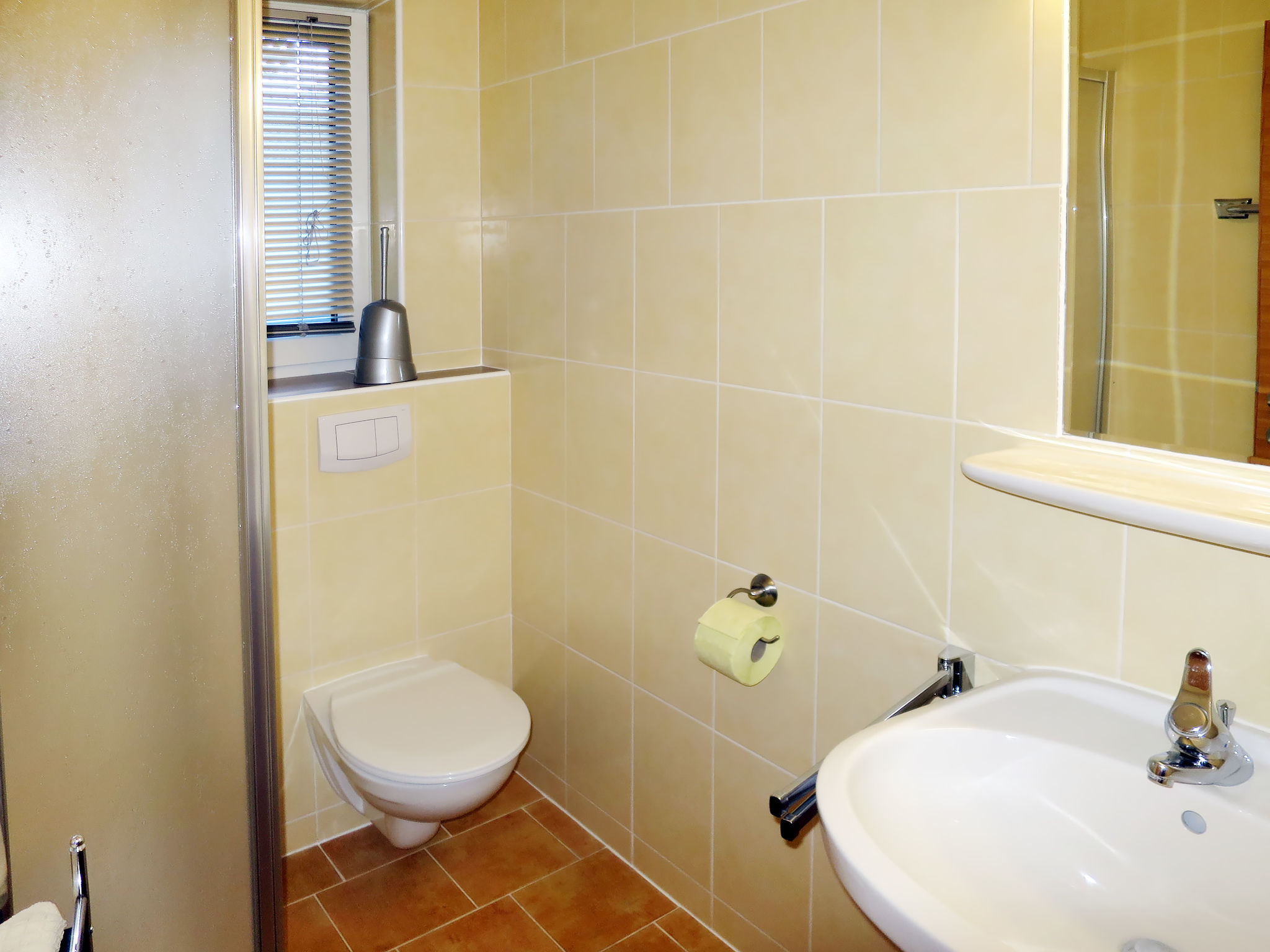 6-Zimmer-Wohnung, Erdgeschoss/Hanglage, ca. 150 m². Flur. Wohnküche (4 Ceranfelder, Backofen, Mikrowelle, Geschirrspüler, Kühlschrank, Kaffeemaschine, Wasserkocher, Toaster) mit Essplatz und Terrassenausgang. Schlafzimmer mit Doppelbett, Einzelbett und Dusche/WC. 2 Doppelzimmer, jeweils mit Dusche/WC. Unmittelbar neben der abgeschlossenen Wohnung: Doppelzimmer mit Dusche/WC. Großes Schlafzimmer mit Doppelbett, Einzelbett, Dusche/WC und Balkonausgang.Hinweis: Bei Buchung zum Preis für 6 Personen bleiben 2 Schlafzimmer und 2 Bäder verschlossen. Bei Buchung zum Preis für 7-9 Personen bleiben 1 Schlafzimmer und 1 Bad verschlossen. Bei Buchung zum Preis für 6 Personen nicht verfügbar: 2 Schlafzimmer und 2 Bäder. Bei Buchung zum Preis für 9 Personen nicht verfügbar: 1 Schlafzimmer und 1 Bad. Hinweis: Ein Doppelzimmer und ein Schlafzimmer mit Doppelbett und Einzelbett liegen außerhalb der abgeschlossenen Wohnung. Bei Belegung mit weniger Personen als der maximalen Personenzahl stehen nicht alle Wohneinheiten zur Verfügung.