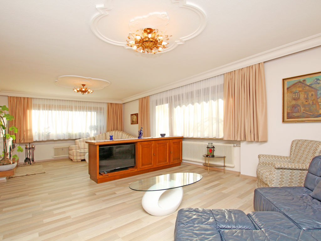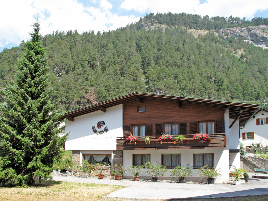 Das alleinstehende Ferienhaus CHALET ALEXANDER steht nahe der Ortsmitte von Pfunds. Geschäfte, Supermarkt und Freibad sind bequem zu Fuß im Umkreis von ca. 100-1000 m erreichbar. Umzäuntes Gartengrundstück. Die Durchgangsstraße verläuft leicht erhöht oberhalb des Grundstücks. Der Keller bleibt verschlossen. Garage für 3 große Pkw (hintereinander) oder 12 Motorräder, weitere Parkmöglichkeit auf dem Grundstück. Das renovierte Ferienhaus ist gut und gemütlich eingerichtet. Teppich-, Laminat- und Fliesenboden. Schallschutzfenster. 5x Sat-TV, davon 4x in Schlafzimmern. Internetzugang (WLAN, inklusive). 2 Balkone in der 1. Etage. Teilüberdachte Westterrasse mit Mobiliar. Öl-Zentralheizung. Extra: Die Gäste können im gegenüberliegenden 'Hotel Tyrol' (je nach Öffnungszeiten und Verfügbarkeit) gegen eine Gebühr von € 15 Euro pro Person/Tag das Hallenbad und den Wellnessbereich mit Sauna und Dampfbad des Hotels nutzen. Winter-Infos: Bergbahn/Skilift Nauders 14,5 km (Skiarena Reschenpass), Samnaun 15 km (Silvretta Skiarena). Skibushaltestelle ca. 40 m (kostenloser Pendelbus Pfunds-Samnaun-Nauders). Skischule ca. 500 m. Skiabstellmöglichkeit und Skischuhheizung in der Garage.