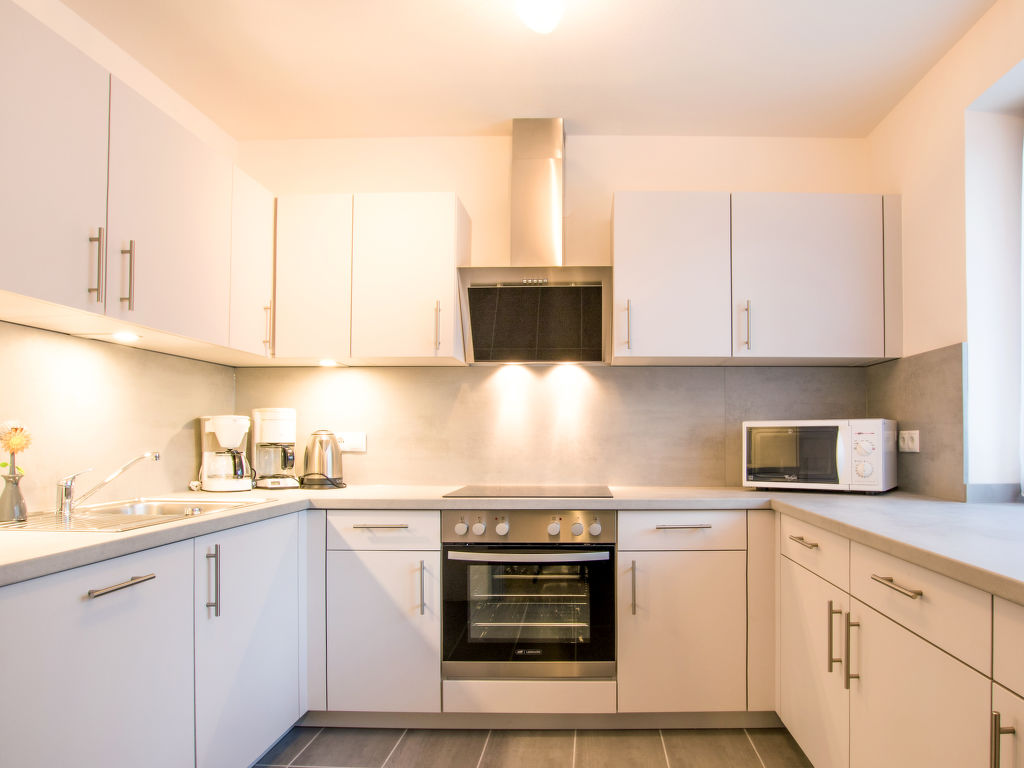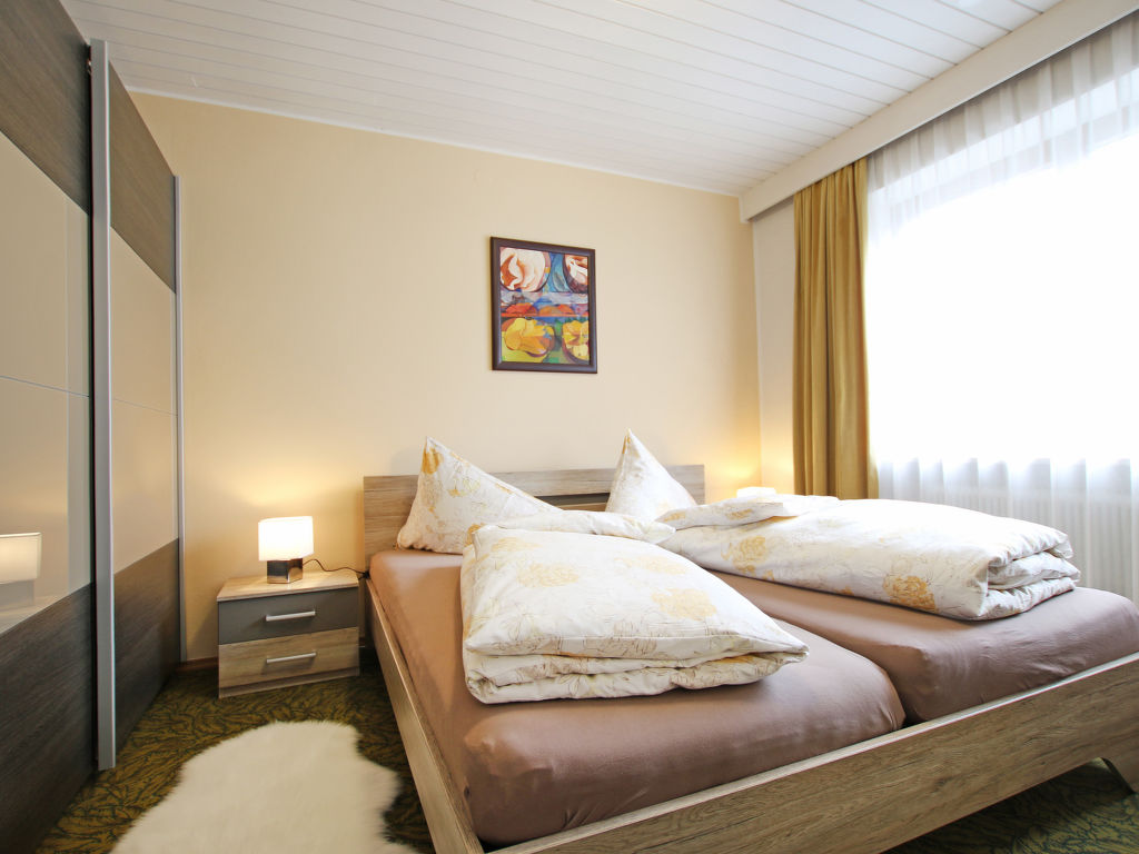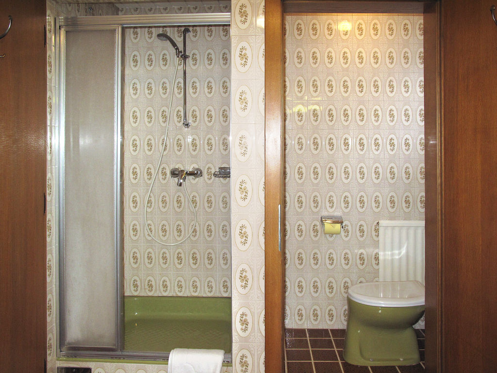 8-Zimmer-Haus, 2 Etagen, ca. 180 m². Erdgeschoss: Flur. Küche (4 Ceranfelder, Backofen, Mikrowelle, Geschirrspüler, Kühlschrank, Kaffeemaschine, Wasserkocher, Toaster). Große Wohndiele mit Essplatz (Eckbank) für 10 Personen, weiterer Essplatz (Eckbank) für 8 Personen. Wohnraum mit 2x Sitzgruppe, Kaminofen und Terrassenausgang. Doppelzimmer. Sep.WC. Vom Flur breite Treppe in die 1. Etage: Doppelzimmer mit Bad/WC und Balkonausgang. 2 Doppelzimmer, jeweils mit Dusche/WC und Balkonausgang. Doppelzimmer. Doppelzimmer mit Balkon. Interne Verbindungstür zwischen diesen beiden Doppelzimmern. Bad/Dusche/Doppelwaschbecken/WC.