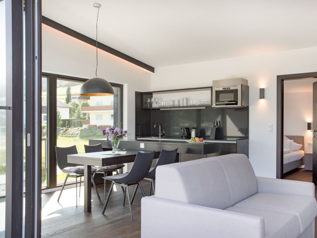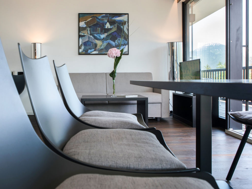 " 3 Raum Appartement", 3-Zimmer-Wohnung 80 m2. Objekt geeignet für 6 Erwachsene. Geräumig, modern und stilvoll eingerichtet: Eingang. 2 Doppelzimmer, jedes Zimmer mit Sat-TV (Flachbildschirm). Wohn-/Schlafzimmer mit 1 Doppeldiwanbett und Sat-TV (Flachbildschirm). Ausgang zur Terrasse. Offene Küche (Backofen, Geschirrspüler, 2 Glaskeramikherd Platten, elektrische Kaffeemaschine). Sep. WC, Bad/Dusche/WC, Doppelwaschbecken, Sauna. Grosse Terrasse. Terrassenmöbel. Sehr schöne Panoramasicht auf die Berge und die Landschaft. Zur Verfügung: Internet (Wireless LAN, gratis). Bitte beachten: geeignet für Familien. Nichtraucher-Unterkunft. 1 Haustier/Hund erlaubt. Rauchmelder, Feuerlöscher. Die Sauna in der Wohnung ist eine Infrarot Kabine. Tägliches Housekeeping inkludiert. Als Kinder gelten Personen bis zum vollendeten 11 Lebesjahr bei Anreise. Bei Belegung mit weniger Personen als der maximalen Personenzahl stehen nicht alle Wohneinheiten zur Verfügung.