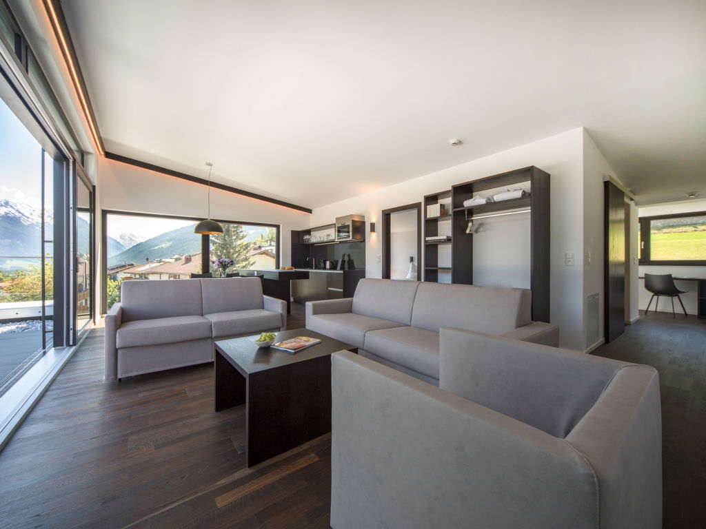 Telfes 20 km von Innsbruck: Grosses, modernes Apart-Hotel "Oberhofer", auf 3 Stockwerken, Baujahr 2018. Im Ortsteil Kapfers, 650 m vom Zentrum von Telfes, ruhige, sonnige Lage, 3 km vom Skigebiet. Zur Mitbenutzung: wunderschöner Garten zum Entspannen, Biotop, Hallenbad eckig beheizt. Im Hause: Empfang, Restaurant, Sauna (extra). Infrarotwärmekabine, Skiraum, Zentralheizung. Zufahrt bis zum Haus. Gemeinschaftsgarage beim Haus. Lebensmittelgeschäft 850 m, Einkaufszentrum 20 km, Bushaltestelle 10 m, Freibad 1.1 km, Hallenbad 1.1 km. Golfplatz (18 Loch) 20 km, Wanderwege ab Haus 100 m, Skisportanlagen 2 km, Skipisten 2 km, Skiverleih 2 km, Skibushaltestelle 10 m, Skischule 2 km. Bekannte Skigebiete sind gut erreichbar: Schlick 2000, Serleslift, Stubaier Gletscher. Wandergebiete: Stubaital Kalkalpen. Es kann auf Anfrage ein Transfer ab Flughafen zum Ferienobjekt organisiert werden. Bitte beachten: In diesem Haus sind weitere Ferienwohnungen mietbar.