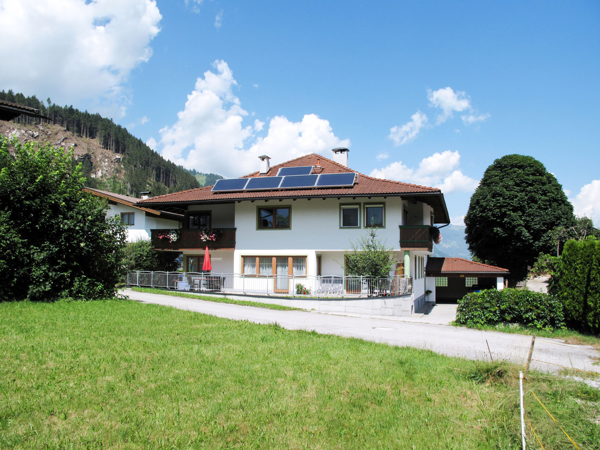 Haus SONNE mit 4 Wohnungen steht ruhig und sonnig im Ortsteil Dörfl, ca. 700 m von der Ortsmitte Aschau entfernt. Hallenbad 2 km. Freibad in Zell 3,5 km. Teils von Zaun und Hecke abgeschlossenes Grundstück. Parkplätze am Haus. Eine Wohnung wird vom Vermieter genutzt. Tischtennis, Tischfußball, Hometrainer und transportabler Grill zur gemeinsamen Nutzung. ZAZ 680/681 jeweils mit teilüberdachter Terrasse, kleiner Rasenfläche, Gartenmöbeln, 2 Sonnenliegen und Sonnenschirm. ZAZ 682 mit kleinem überdachten Balkon mit Mobiliar. ZAZ 683 mit überdachtem, möblierten Balkon und 2 Sonnenliegen. Helle, freundliche Einrichtung. Fliesen-, Laminat- und Teppichböden. Jeweils Sat-TV, Internetzugang (WLAN, inklusive). Heizung. Jedes Badezimmer mit Fußbodenheizung. Hinweis: Rauchen ist in den Wohnungen nicht gestattet. Winter-Infos: Skibushaltestelle ca. 350 m. Langlaufloipe ca. 400 m. Im Haus Ski-/Schuhraum mit Skischuhtrockner.