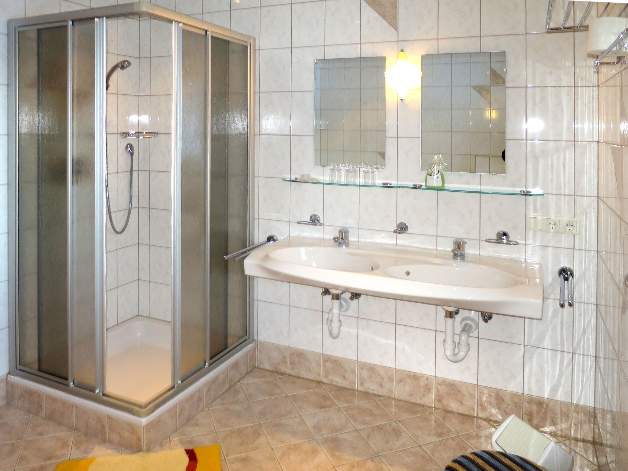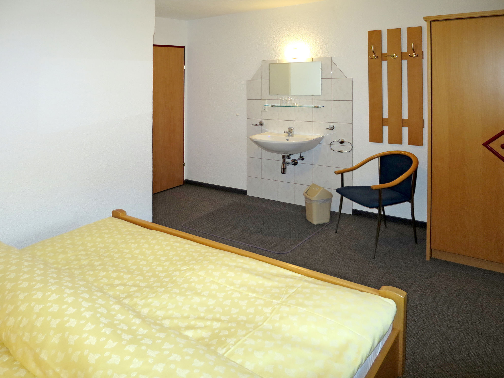 4-Zimmer-Wohnung, 1. Etage, ca. 84 m². Wohnküche (4 Platten, Backofen, Geschirrspüler, Kühlschrank, Kaffeemaschine, Wasserkocher, Toaster) mit Essplatz (Eckbank). Doppelzimmer mit Waschbecken. Doppelzimmer. Zweibettzimmer. Dusche/Doppelwaschbecken/WC. Sep.WC.