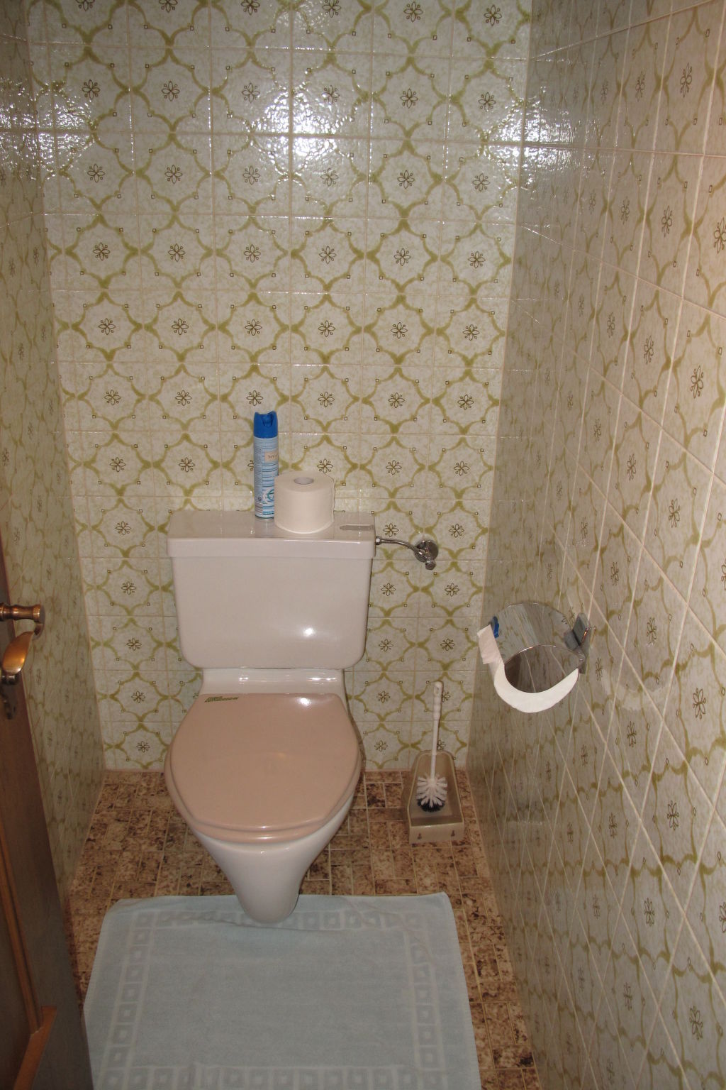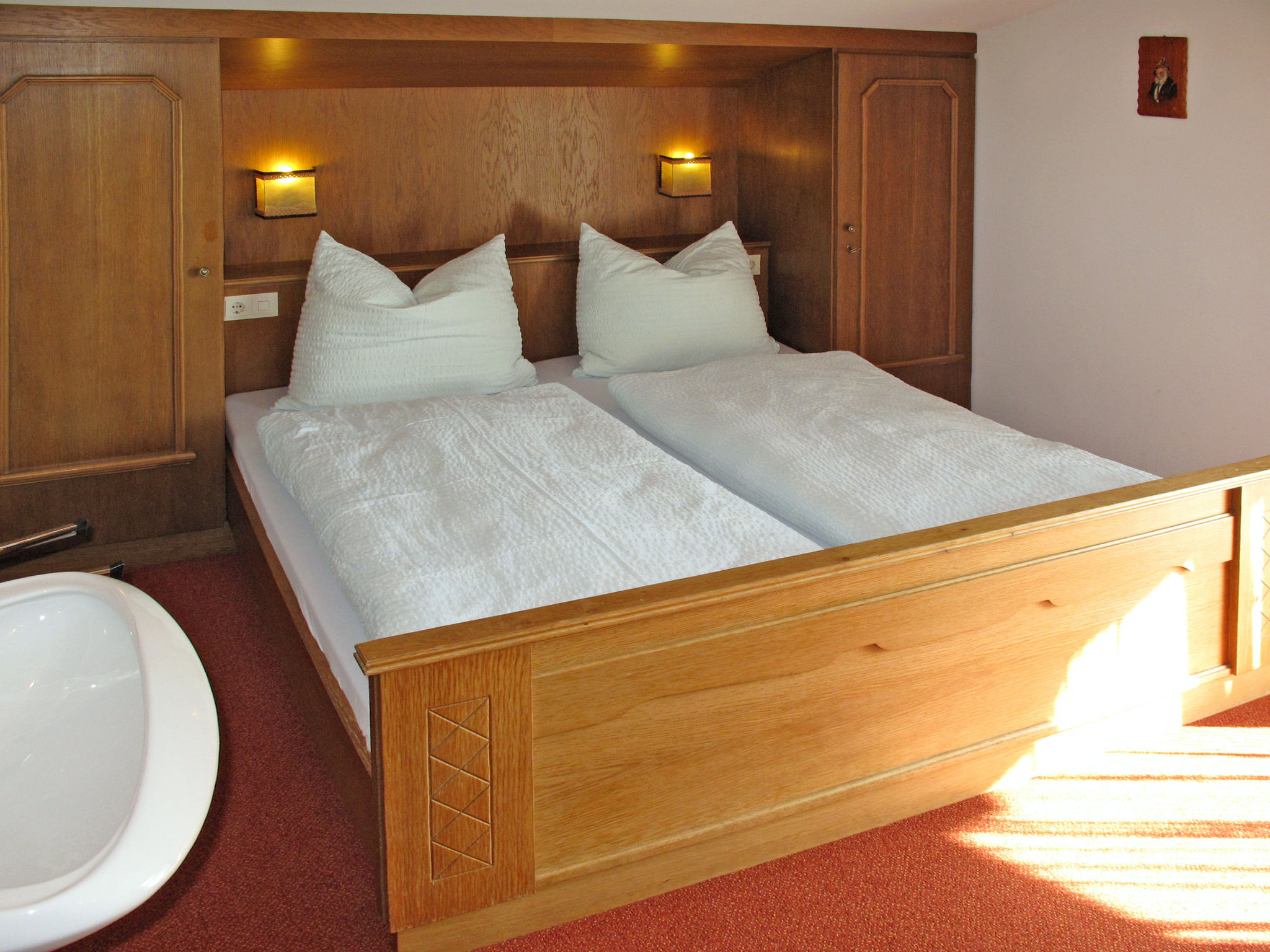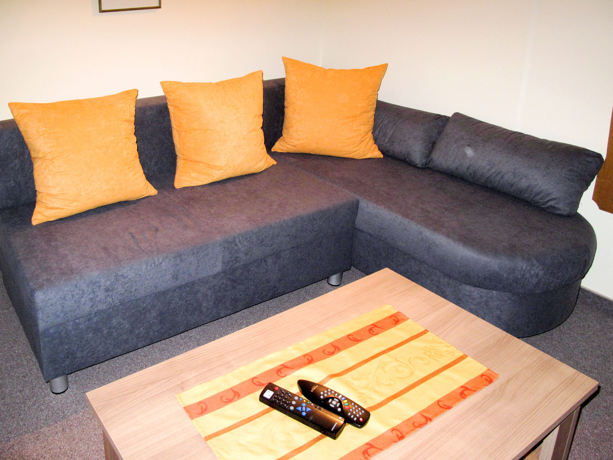 4-Zimmer-Wohnung, 2. Etage (Dachschräge, nicht störend), ca. 90 m². Flur. Kleiner Wohnraum mit Sitzgruppe. Küche (4 Ceranfelder, Backofen, Mikrowelle, Kühlschrank, Kaffeemaschine, Wasserkocher, Toaster) mit Essplatz. Abstellraum mit Geschirrspüler. 2 Schlafzimmer, jeweils mit Doppelbett, Einzelbett, Waschbecken und Balkonausgang. Doppelzimmer mit Waschbecken, Balkonausgang. Dusche/WC. Sep.WC. Hinweise: Die Wohnung ist zum Treppenhaus hin offen. Den Gästen steht die gesamte 2. Etage zur Verfügung. Maximale Belegung: 6 Erwachsene und 2 Kinder bis maximal 15 Jahre.