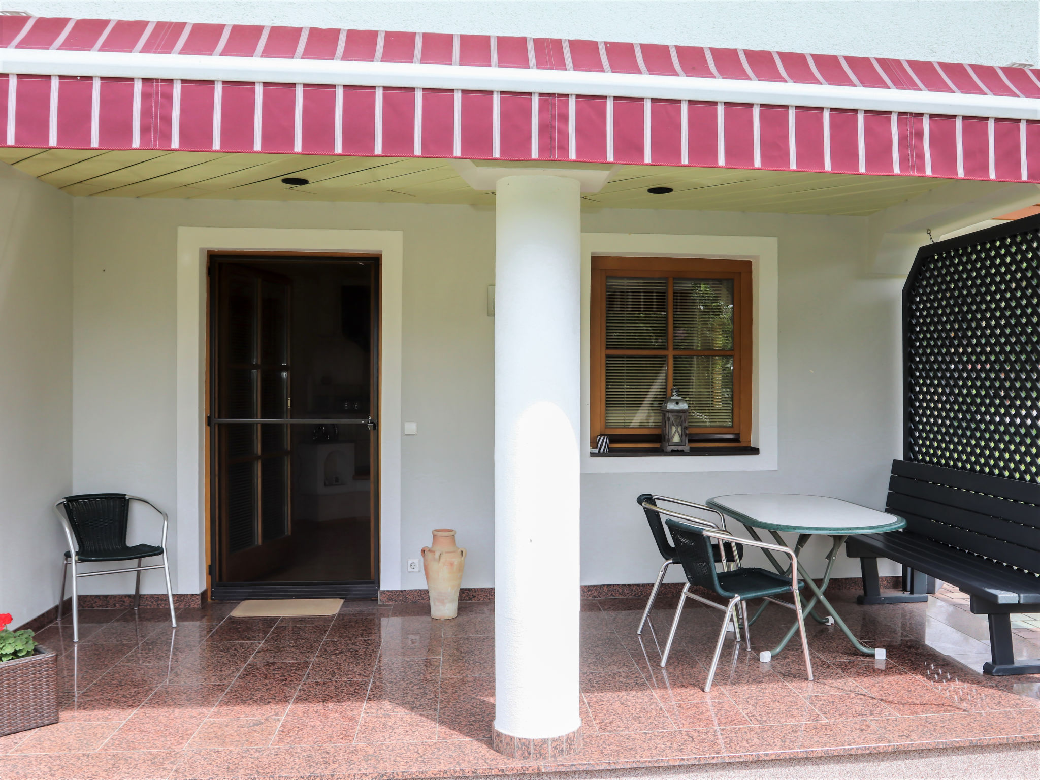 "Ennstal", 4-Zimmer-Wohnung 104 m2, im Erdgeschoss. Objekt geeignet für 6 Erwachsene + 2 Kinder. Geräumig, komfortabel und geschmackvoll eingerichtet: Eingang. 1 Zimmer mit 1 franz. Bett (140 cm). 1 Doppelzimmer mit Kabel-TV (Flachbildschirm). Grosses Wohn-/Schlafzimmer mit 2 Diwanbetten, Kabel-TV, Flachbildschirm und Kachelofen. Ausgang zur Terrasse. Grosse Wohnküche (Backofen, Geschirrspüler, 4 Glaskeramikherd Platten, Mikrowelle, Tiefkühler, elektrische Kaffeemaschine, Dampfgarer) mit Esstisch, Kabel-TV (Flachbildschirm). Bad/Dusche, sep. WC mit Eckbadewanne. Natursteinböden. Terrasse überdacht, Südlage und Westlage. Terrassenmöbel, Liegestühle, Abstellkammer. Sehr schöne Sicht auf die Berge und die Landschaft. Zur Verfügung: Haartrockner. Internet (Wireless LAN, gratis). Bitte beachten: geeignet für Familien. Nichtraucher-Unterkunft. Feuerlöscher. Der Kachelofen wird auf Wunsch vom Vermieter beheizt. 50417-000-308-2020
