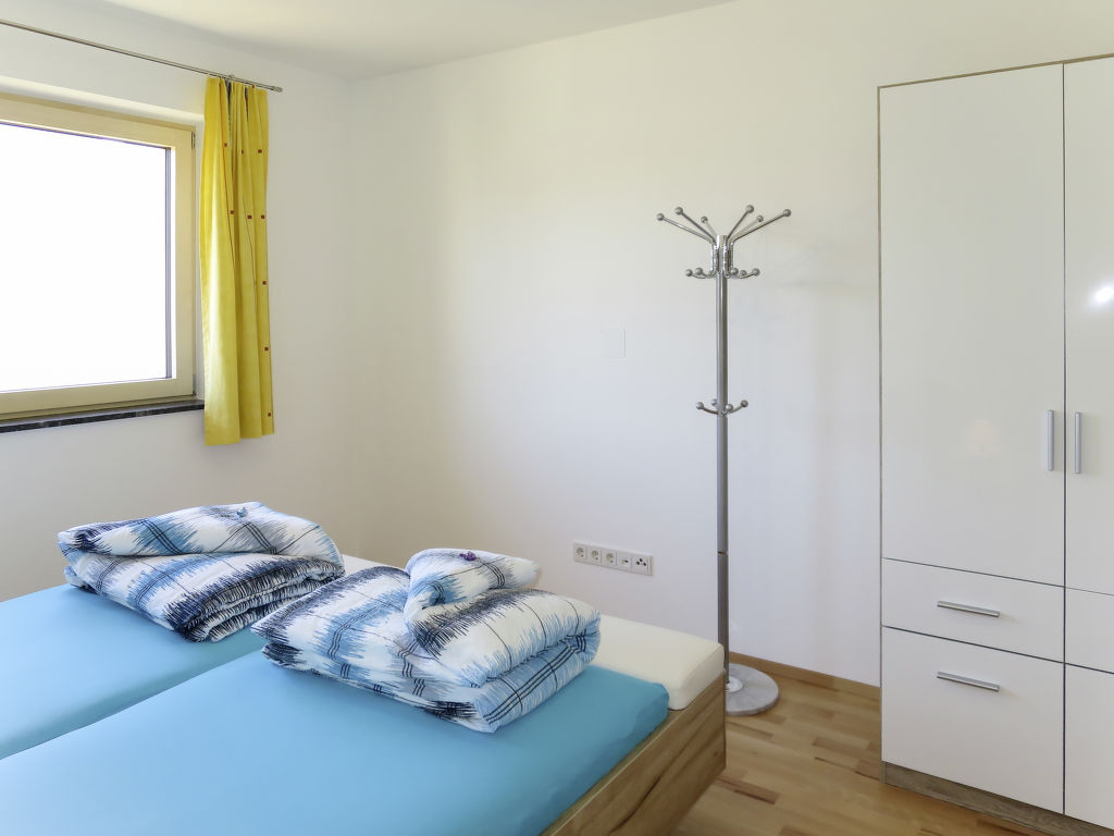 3-Zimmer-Wohnung, Obergeschoss, ca. 70 m². Wohnraum mit Sitzcouch, Essplatz, Küchenzeile (4 Ceranfelder, Backofen, Mikrowelle, Geschirrspüler, Kühl-/Gefrierkombination, Kaffeemaschine, Wasserkocher, Toaster) und Balkonausgang. 2 Doppelzimmer, eines davon mit Balkonausgang. Bad/Dusche/WC. Sep.WC.