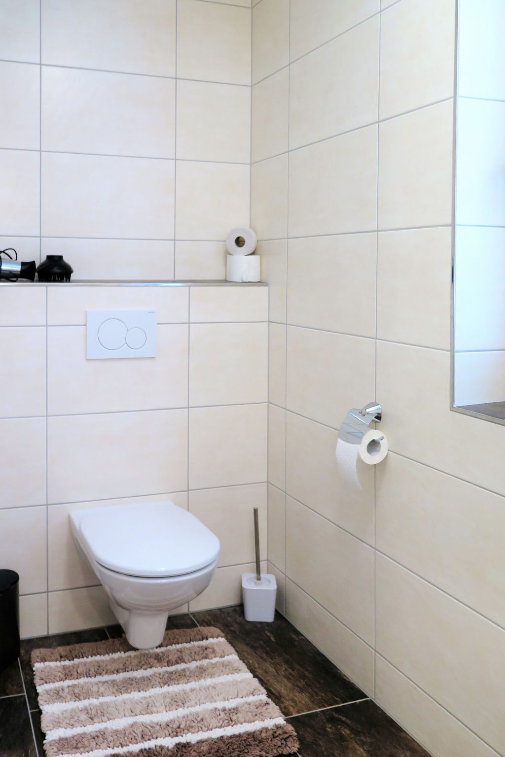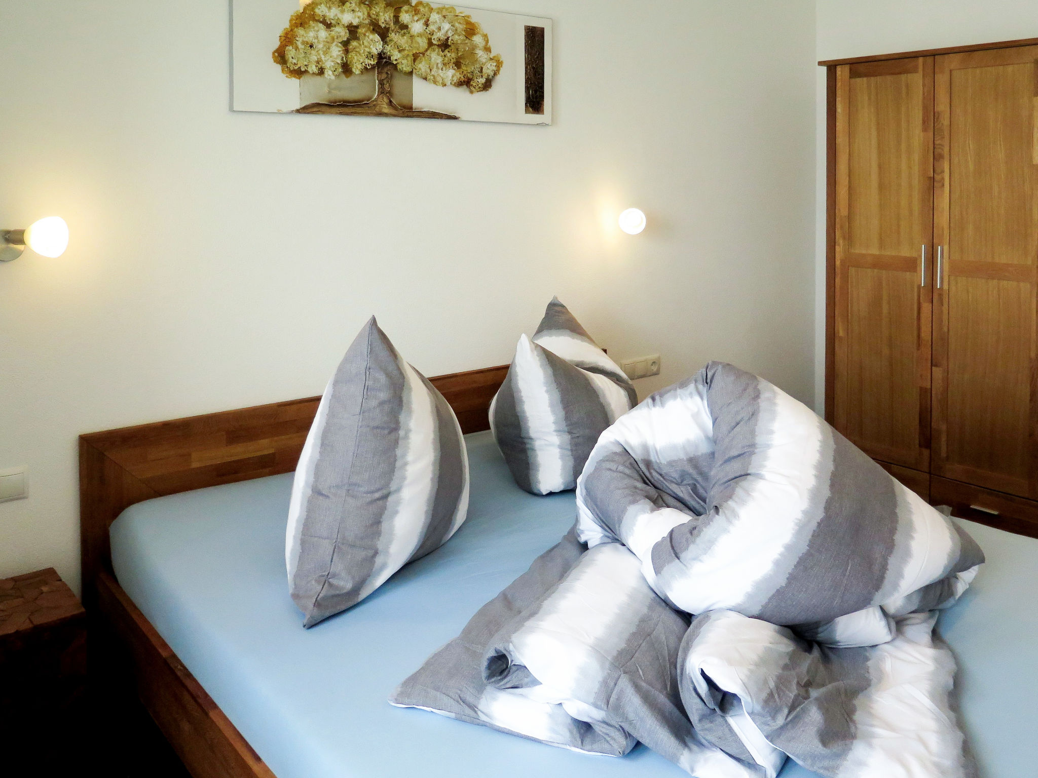 6-Zimmer-Wohnung, 1. Etage, ca. 150 m². Wohnküche (4 Ceranfelder, Backofen, Geschirrspüler, Kühl-/Gefrierkombination, Kaffeemaschine, Toaster) mit Essplatz und Ausgang ins Freie. 4 Doppelzimmer, jeweils mit Balkonausgang oder Ausgang ins Freie. Schlafzimmer mit Doppelbett und Einzelbett, Balkonausgang. Dusche/WC. Dusche/Doppelwaschbecken/WC. Bei Belegung mit weniger Personen als der maximalen Personenzahl stehen nicht alle Wohneinheiten zur Verfügung.