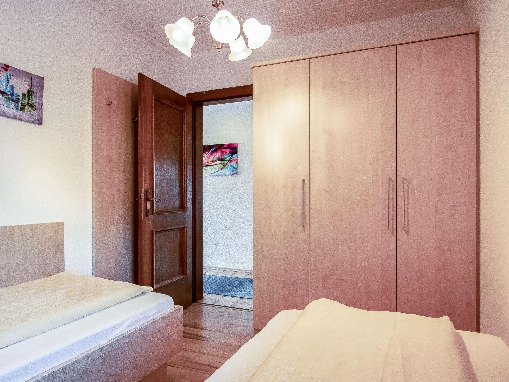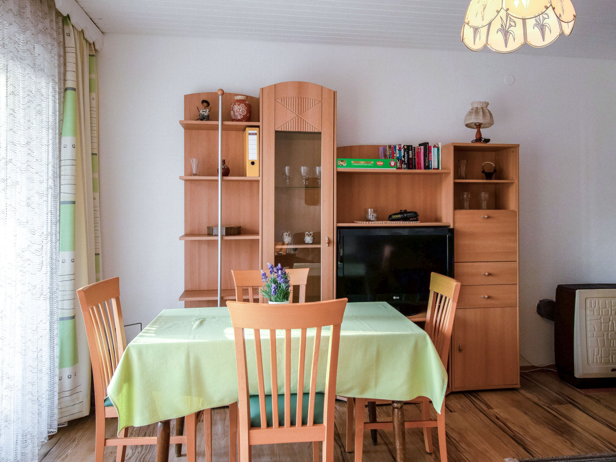 "Hecht", 3-Zimmer-Wohnung im Dachgeschoss. Objekt geeignet für 4 Erwachsene + 2 Kinder. Teilweise abgeschrägt, schön und gemütlich eingerichtet: Eingang. Wohn-/Esszimmer mit 1 Doppeldiwanbett, Esstisch und Sat-TV. Ausgang zum Balkon. 1 Doppelzimmer. 1 Zimmer mit 2 Betten. Kochnische (4 Kochplatten, Backofen, Geschirrspüler, Mikrowelle, elektrische Kaffeemaschine). Dusche/WC. Balkon. Balkonmöbel. Sicht auf die Landschaft. Zur Verfügung: Internet (Wireless LAN, gratis). Bitte beachten: Nichtraucher-Unterkunft. Eigener Eingang, Rauchmelder. Bei Belegung mit weniger Personen als der maximalen Personenzahl stehen nicht alle Wohneinheiten zur Verfügung.