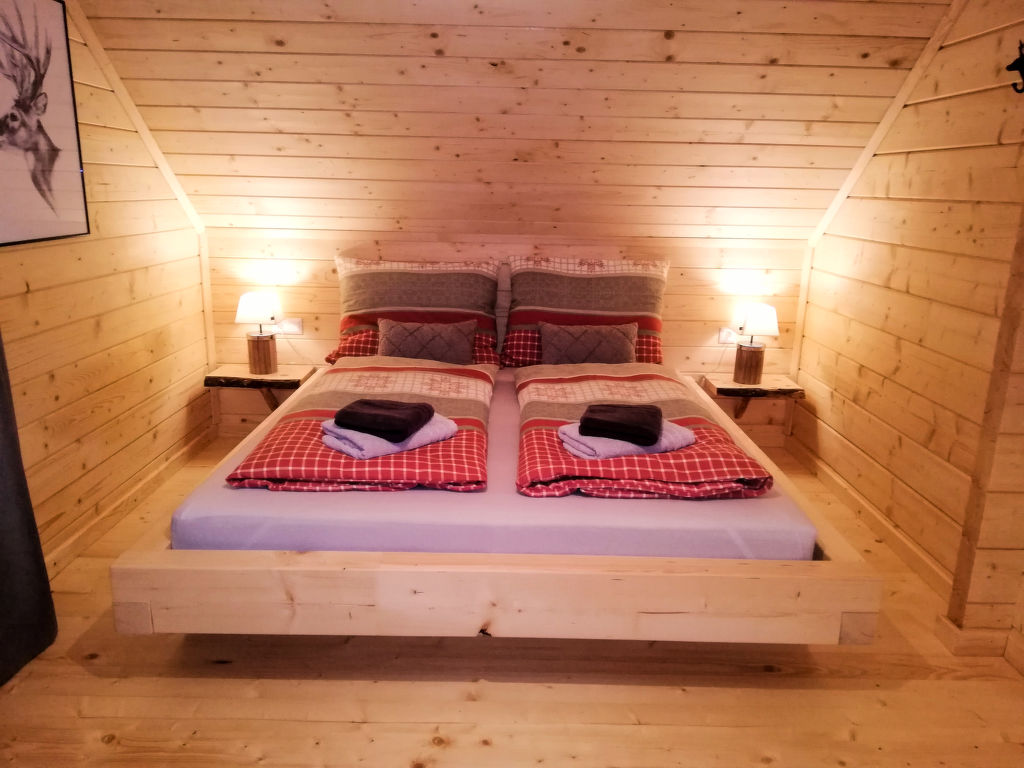 "Hütte Gimpel", 3-Zimmer-Haus 85 m2 auf 2 Stockwerken, im Erdgeschoss. Objekt geeignet für 6 Erwachsene. Hell, teilweise abgeschrägt, gemütlich und mit viel Holz eingerichtet: Eingang. Wohnzimmer 23 m2 mit Sat-TV. Ausgang zur Terrasse. Küche 13 m2 (Backofen, Geschirrspüler, 4 Glaskeramikherd Platten) mit Essecke. Bad/WC. Obergeschoss: 1 Zimmer 15 m2 mit 1 Bett und 1 Doppelbett. 1 Zimmer 18 m2 mit 1 Bett und 1 Doppelbett. Ausgang zum Balkon. Sep. WC. Grosser Balkon 15 m2, Westlage, grosse Terrasse 20 m2, Westlage. Terrassenmöbel, Balkonmöbel. Schöne Sicht auf die Berge. Zur Verfügung: Kinderhochstuhl, Babybett bis 2 Jahre. Internet (Wireless LAN, gratis). Bitte beachten: geeignet für Familien. Nichtraucher-Unterkunft. Rauchmelder, Feuerlöscher.