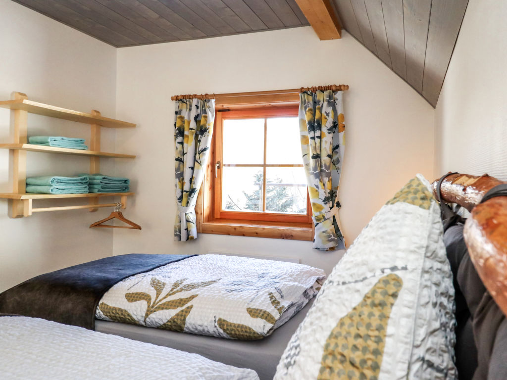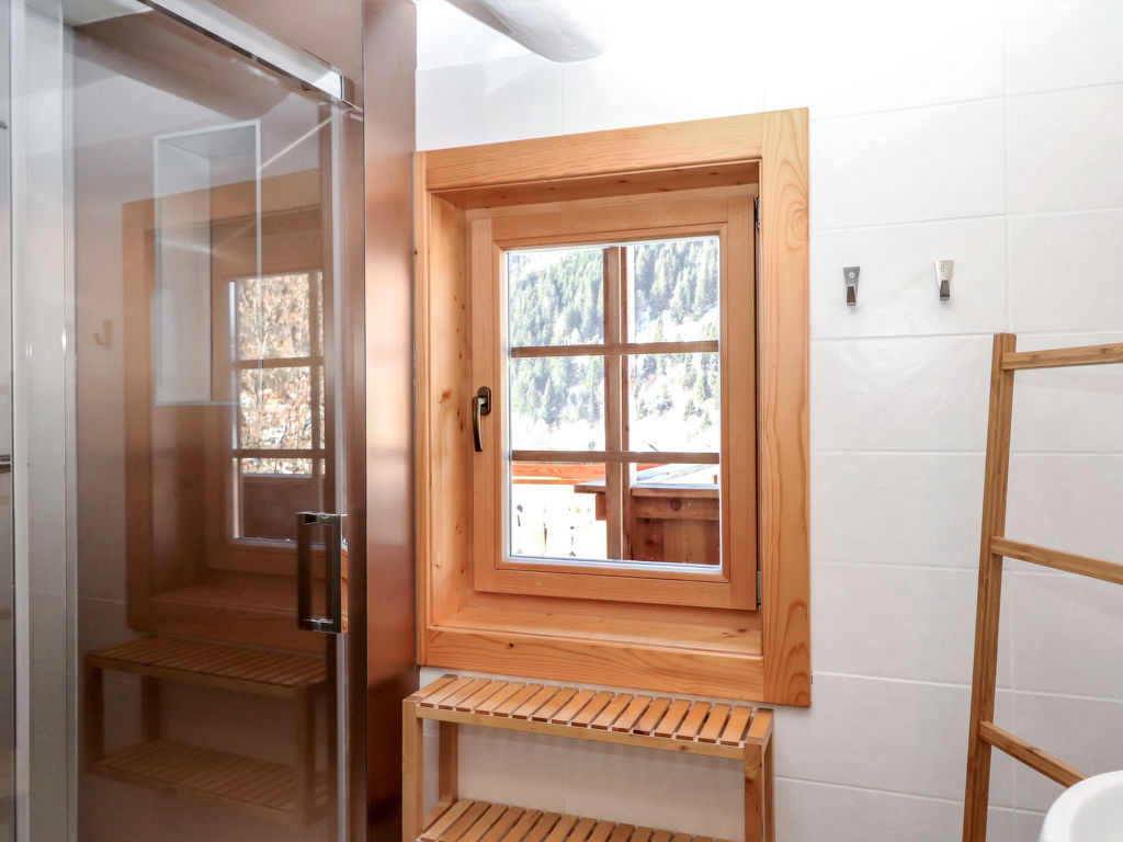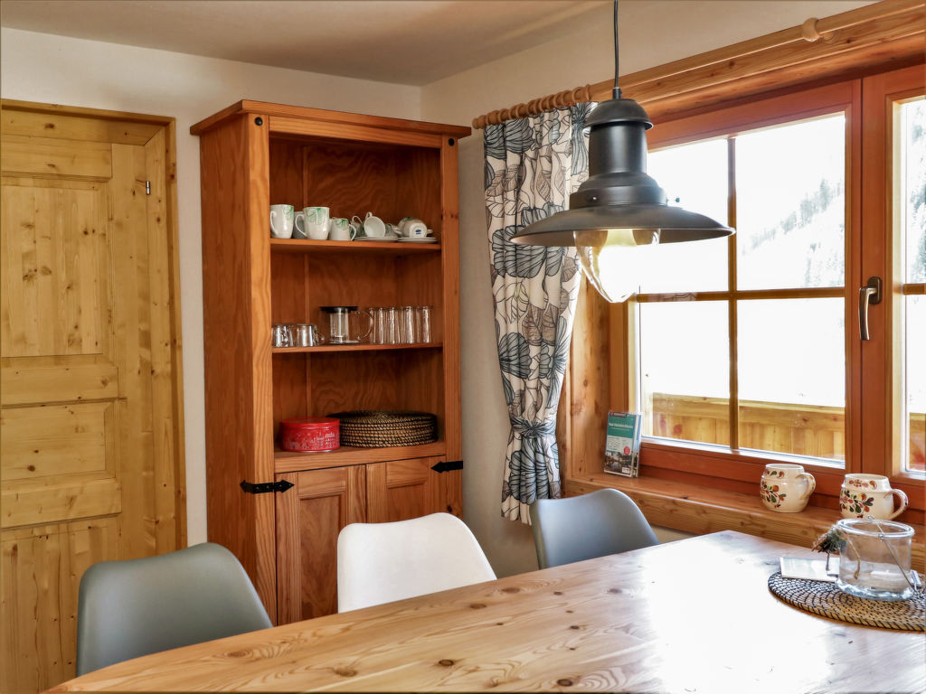5-Zimmer-Chalet 110 m2 auf 2 Stockwerken. Geräumig, teilweise abgeschrägt, sehr geschmackvoll und gemütlich eingerichtet: Eingang. Wohnzimmer mit Sat-TV (Flachbildschirm). Ausgang zur Terrasse. Grosse Wohnküche (Backofen, Geschirrspüler, 4 Glaskeramikherd Platten, Mikrowelle, Tiefkühler, elektrische Kaffeemaschine) mit Esstisch. Dusche, sep. WC. Obergeschoss: 2 Doppelzimmer. 1 Zimmer mit 3 Betten. Dusche/WC. E-Heizung, Specksteinofen. Holzböden. 2 Terrassen. Terrassenmöbel, Gartengrill. Sehr schöne Sicht auf die Berge und die Ortschaft. Zur Verfügung: Kinderhochstuhl, Babybett bis 3 Jahre, Haartrockner. Bitte beachten: Nichtraucher-Haus. Rauchmelder, Feuerlöscher.
