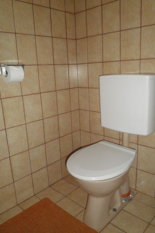 3-Zimmer-Wohnung, 3. Etage, ca. 45 m². Wohnküche (4 Platten, Backofen, Mikrowelle, Geschirrspüler, Kühlschrank, Kaffeemaschine, Wasserkocher, Toaster) mit Essplatz (Eckbank) und Bettcouch. 2 Doppelzimmer mit Waschbecken. Dusche. Sep.WC. Nebenkosten am Ort € 18 pro Person und Aufenthalt (je nach Belegung) plus Kurtaxe. Wäsche vorhanden. Kaution € 150 (in bar). Haustier nicht erlaubt.