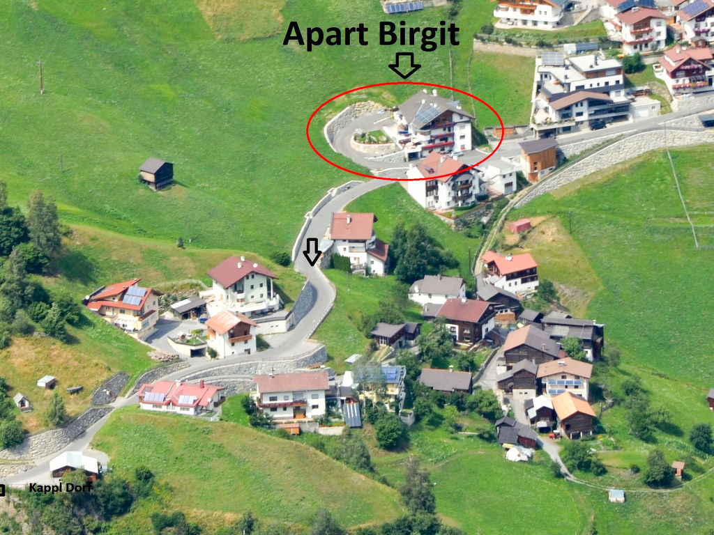 Das Haus Apart Birgit, bestehend aus 2 Hausteilen, steht in schöner, sonniger Aussichtslage im Ortsteil Obermühl. Ortsmitte Kappl-Dorf 1,3 km. Diasbahn 3 km. KPL 170 mit Freisitz mit Mobiliar. In KPL 175 Terrasse sowie Süd- und Westbalkon mit Mobiliar. Jeweils Holzkohlegrill. Brötchenservice. Parkplatz. Der Vermieter wohnt im Haus. Die Wohnung KPL 170 ist gut und freundlich eingerichtet. Teilweise Holzdecken und Holzverkleidung. Teppichboden. Sat-TV. Radio. Internetzugang (WLAN, inklusive). Zentralheizung. Die neuere Wohnung KPL 175 ist hell, freundlich und komfortabel eingerichtet. Teilweise Holzdecken und Holzverkleidung. Alle Schlafzimmer mit Safe. 4x Sat-TV. Radio. Internetzugang (WLAN, inklusive). Zentralheizung. Hinweis: Rauchen ist im Haus nicht gestattet. Winter-Infos: Diasbahn 3 km. Skibushaltestelle beim Haus. Bei entsprechender Schneelage Skiabfahrt auf der Skiroute 15 bis zum Haus möglich. In jedem Hausteil beheizter Ski- und Schuhraum, jeweils mit Skischuhtrockner.