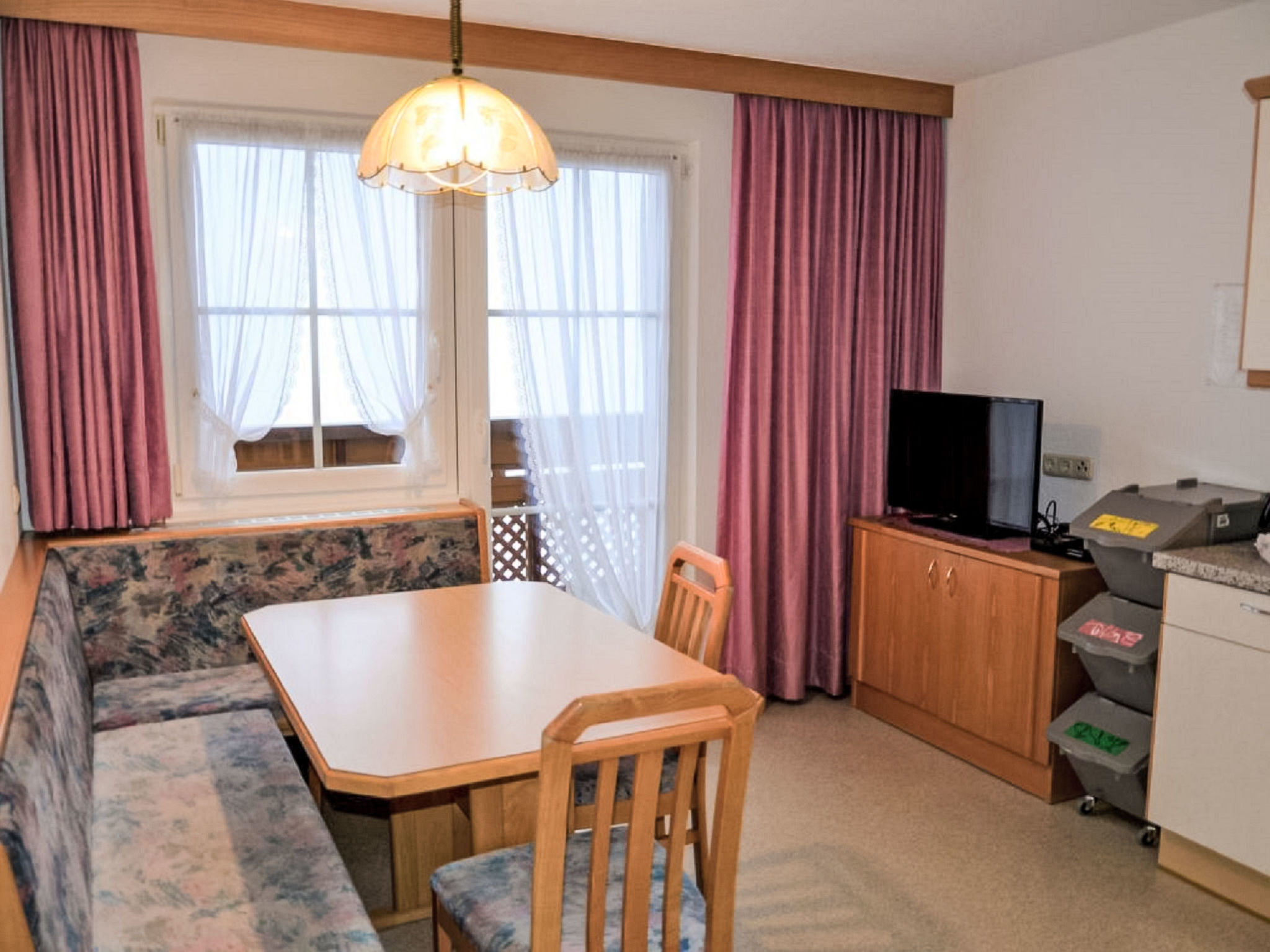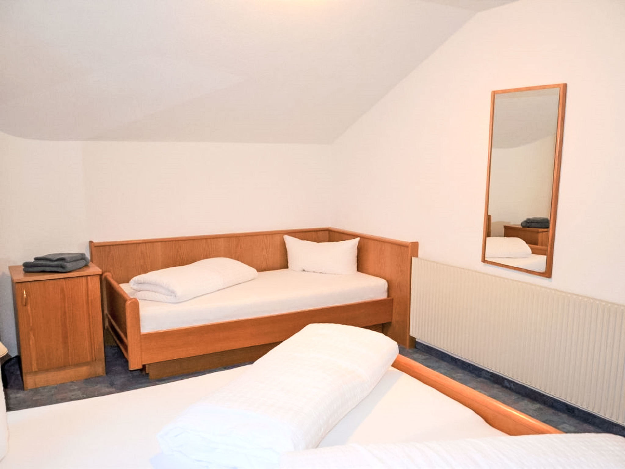 Dieses Angebot setzt sich aus den Wohnungen KPL 090-093 zusammen und umfasst das gesamte Haus außer der Wohnung des Vermieters.2-Zimmer-Wohnung, Untergeschoss (zum Tal freie Lage), ca. 40 m². Wohn-/Schlafraum mit Doppelbettcouch, Essplatz und Küchenzeile (4 Ceranfelder, Backofen, Geschirrspüler, Kühlschrank, Kaffeemaschine, Wasserkocher). Doppelzimmer. Dusche/WC. Terrasse.2-Zimmer-Wohnung, Untergeschoss (zum Tal freie Lage), ca. 40 m². Wohn-/Schlafraum mit Doppelbettcouch, Essplatz und Kochnische (4 Ceranfelder, Backofen, Geschirrspüler, Kühlschrank, Kaffeemaschine, Wasserkocher). Schlafzimmer mit Doppelbett und Einzelbett. Dusche/WC. Terrasse.3-Zimmer-Wohnung, 1. Etage, ca. 50 m². Kleiner Vorraum. Wohnküche mit Sitzcouch, Essecke und Küchenzeile (4 Ceranfelder, Backofen, Geschirrspüler, Kühlschrank, Kaffeemaschine, Wasserkocher). Doppelzimmer. Schlafzimmer mit Doppelbett und Einzelbett. Dusche/Doppelwaschbecken. Sep.WC. Südbalkon.3-Zimmer-Wohnung, 1. Etage, ca. 60 m². Kleiner Vorraum. Wohnküche mit Doppelbettcouch, Essecke und Küchenzeile (4 Ceranfelder, Backofen, Geschirrspüler, Kühlschrank, Kaffeemaschine, Wasserkocher). 2 Schlafzimmer, jeweils mit Doppelbett und Einzelbett. Dusche/Doppelwaschbecken. Sep.WC. Südbalkon.